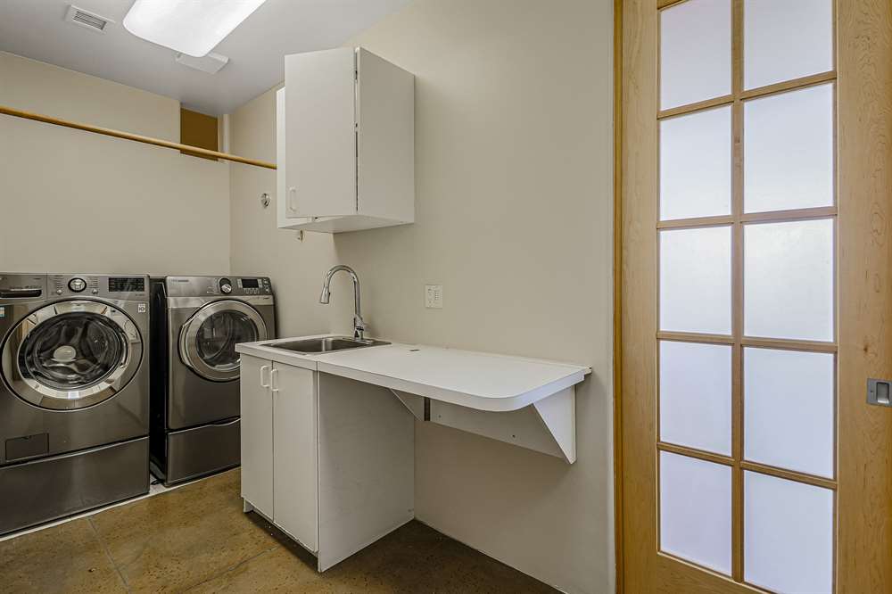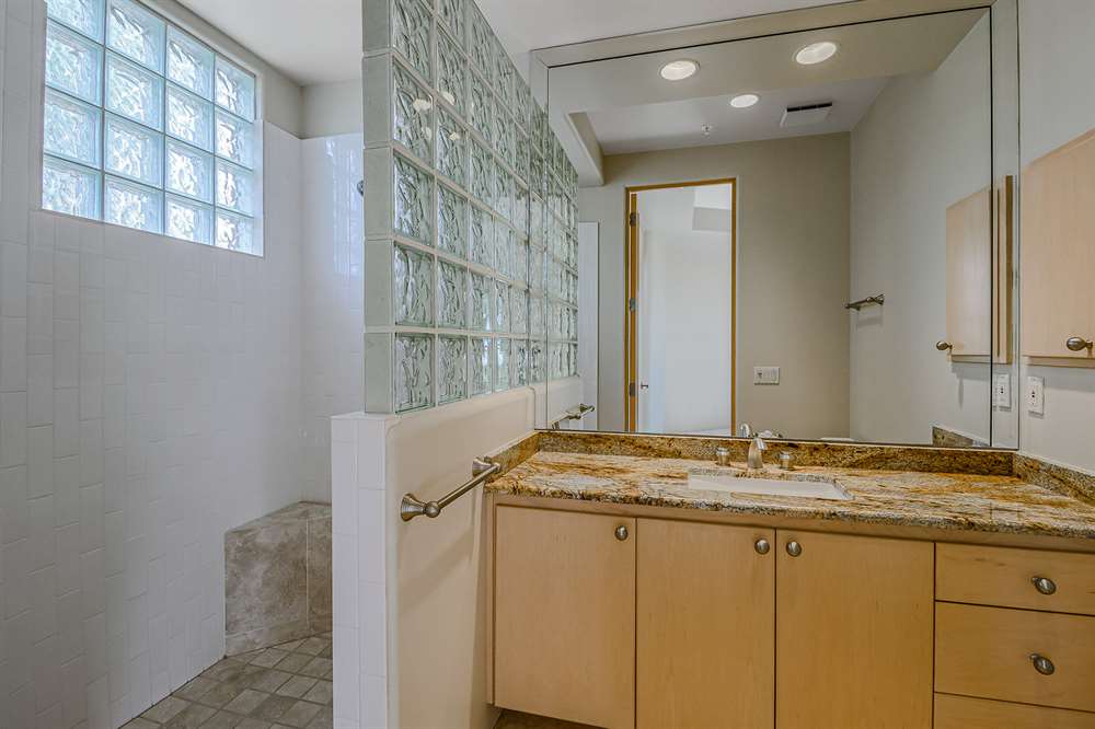 The spacious floor plan showcases three bedrooms (master suite upstairs, and two ensuite downstairs), three and a half baths with ten foot vaulted ceilings, numerous view windows for natural light, custom stained concrete and new hardwood floors, new carpets in the bedroom, newly painted exterior and interior, newly recoated roof, rounded architecture, maple cabinetry and solid core doors, and many custom details throughout.