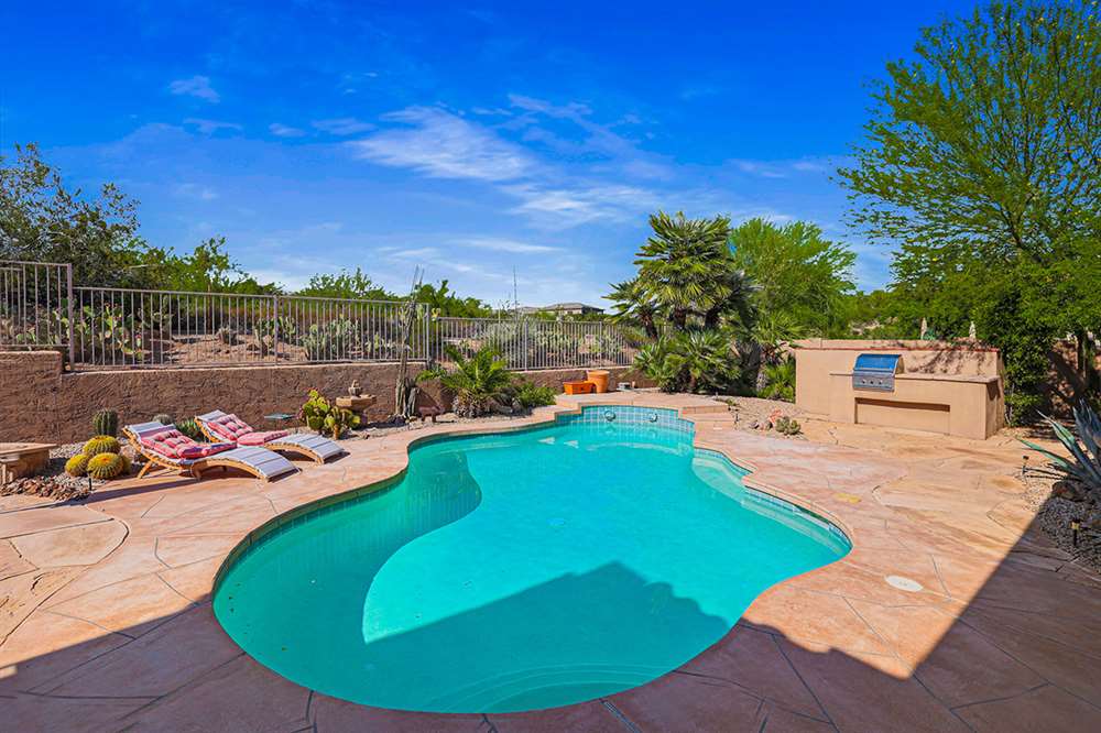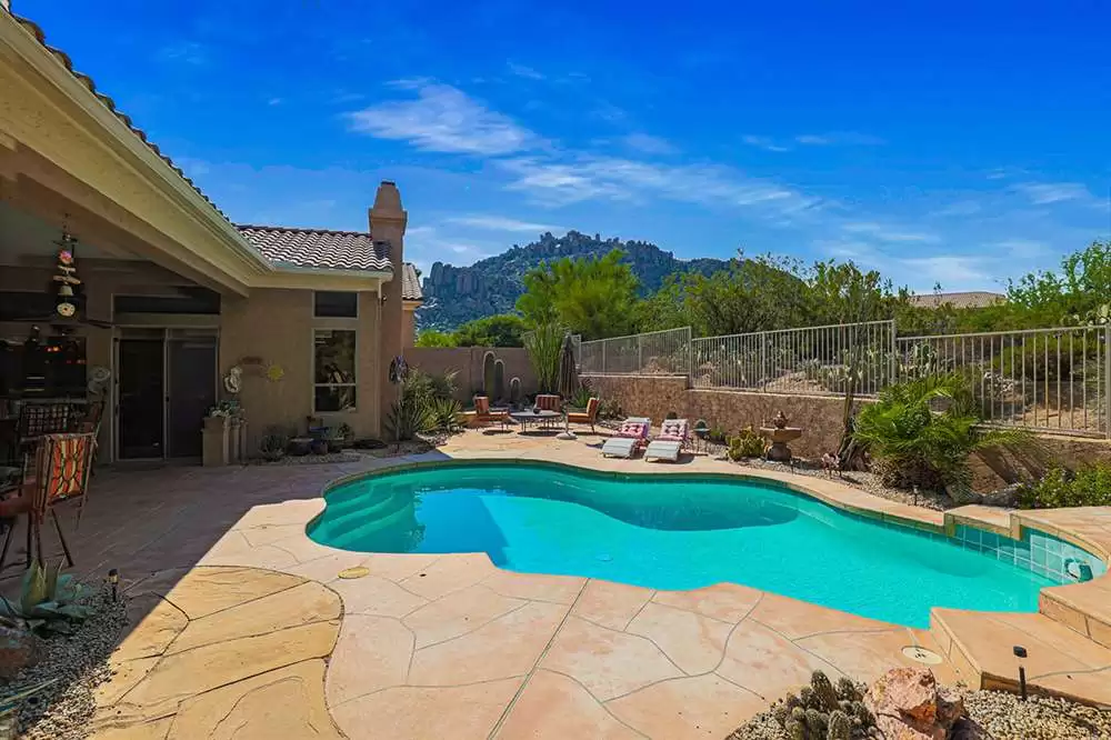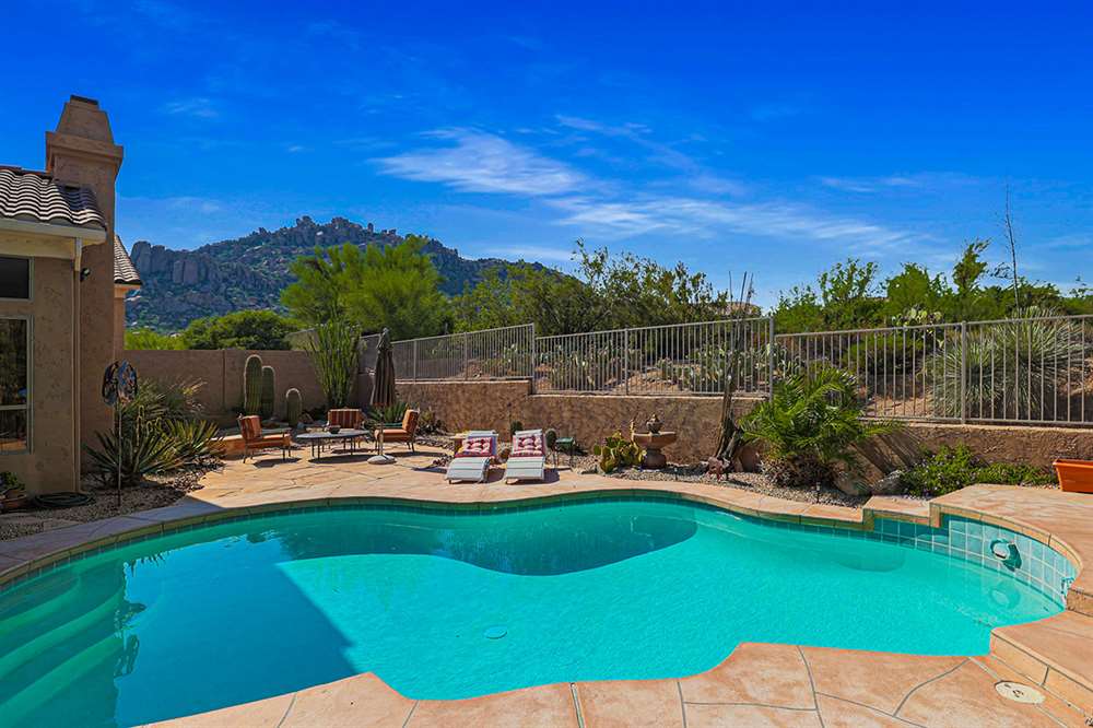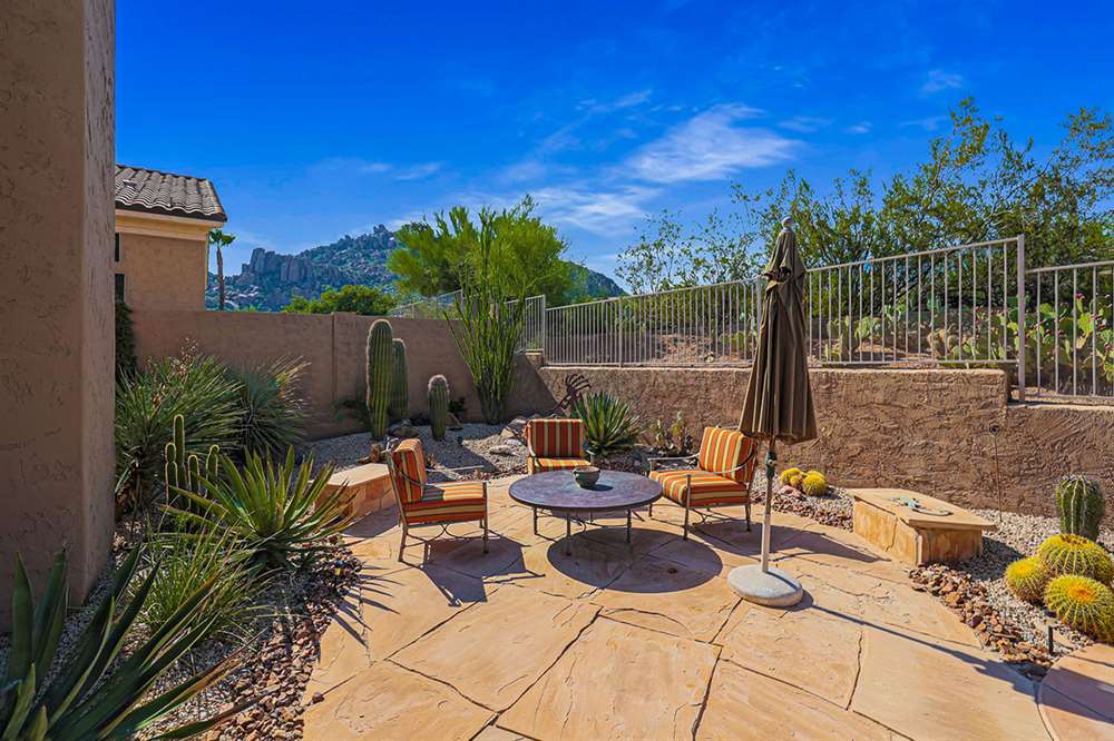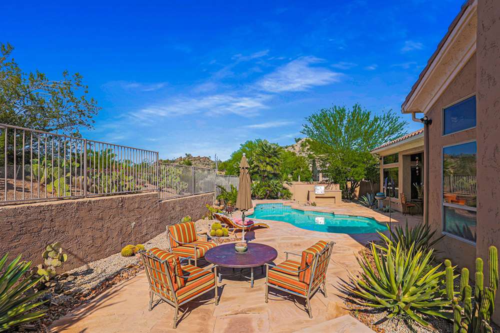 A serene setting marks the tone for this beautiful home located in Dorado at Troon Village. Tucked away inside the community, enjoy the private setting of this desirable lot on a cul-de-sac and backing to Natural Area Open Space (NAOS). A sparkling pool with up close Troon Mountain views highlight the backyard which also includes a sparkling pool, built-in barbecue, large covered patio, separate patio area for lounging or dining, mature landscaping and view fencing to enjoy the high Sonoran Desert.