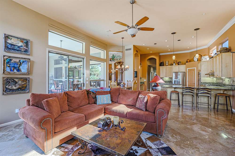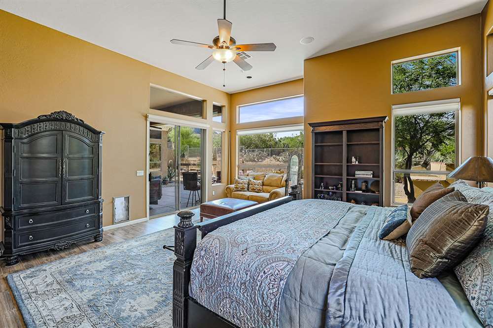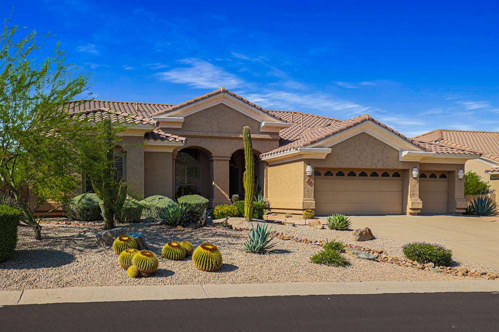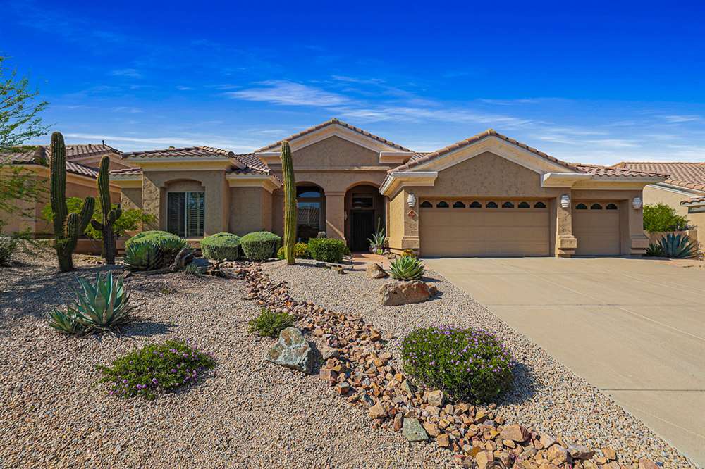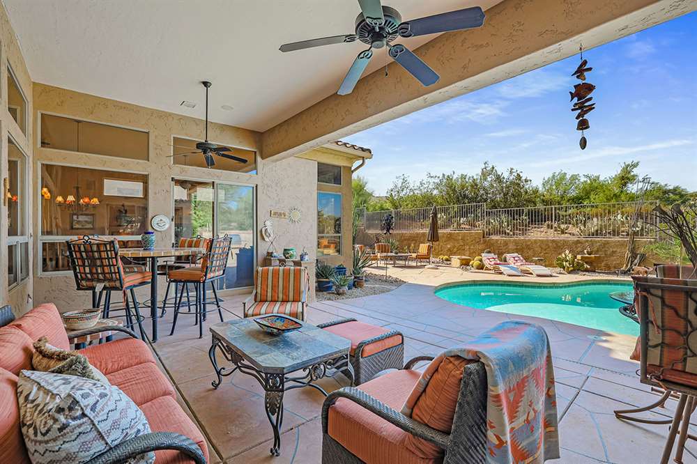 A serene setting marks the tone for this beautiful home located in Dorado at Troon Village. Tucked away inside the community, enjoy the private setting of this desirable lot on a cul-de-sac and backing to Natural Area Open Space (NAOS). A sparkling pool with up close Troon Mountain views highlight the backyard which also includes a sparkling pool, built-in barbecue, large covered patio, separate patio area for lounging or dining, mature landscaping and view fencing to enjoy the high Sonoran Desert.