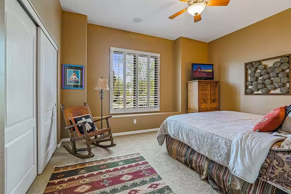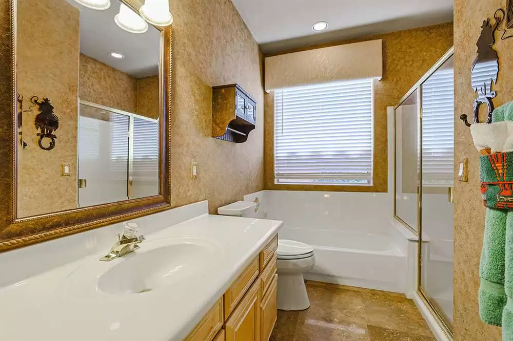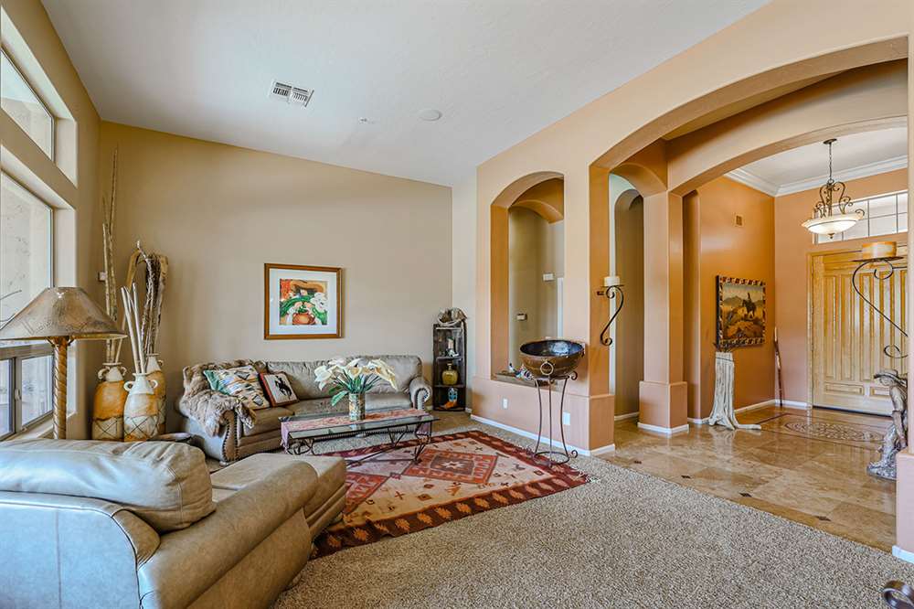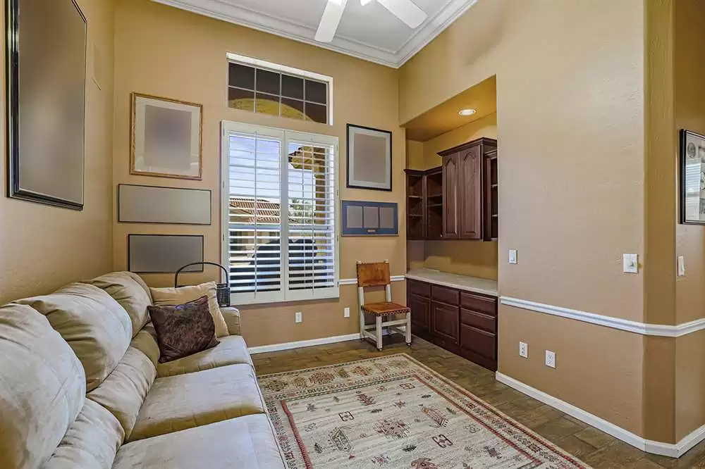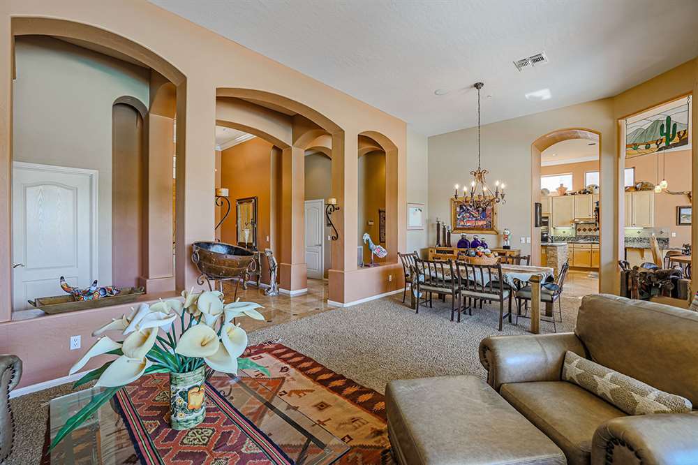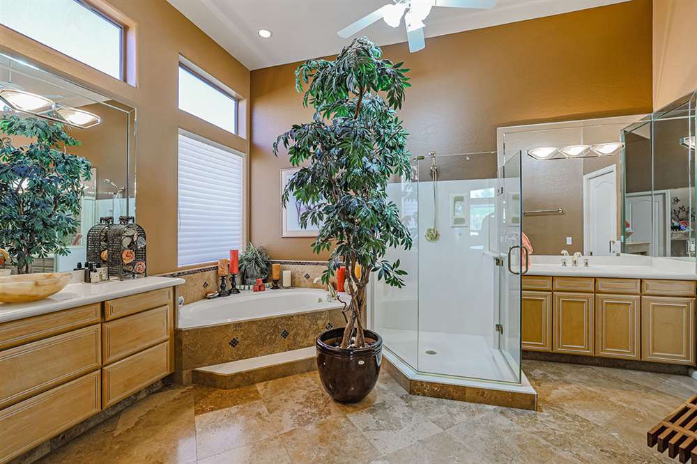 The three-car garage has epoxy floors and direct access into the home through the laundry room. Other features include: 2017 stainless steel appliances including fridge, cooktop, built-in oven, and microwave; one 2021 new HVAC unit; gas fireplace with stacked stone surround; travertine flooring; so much more!