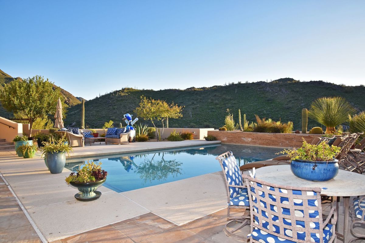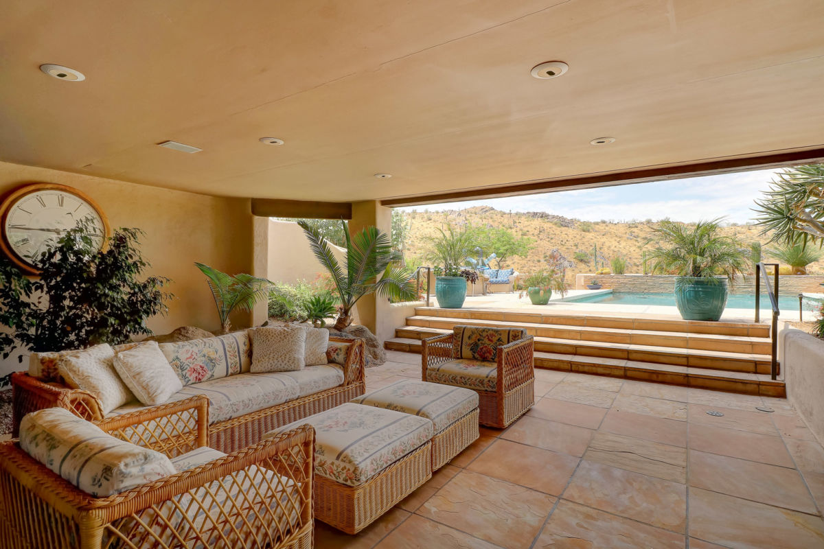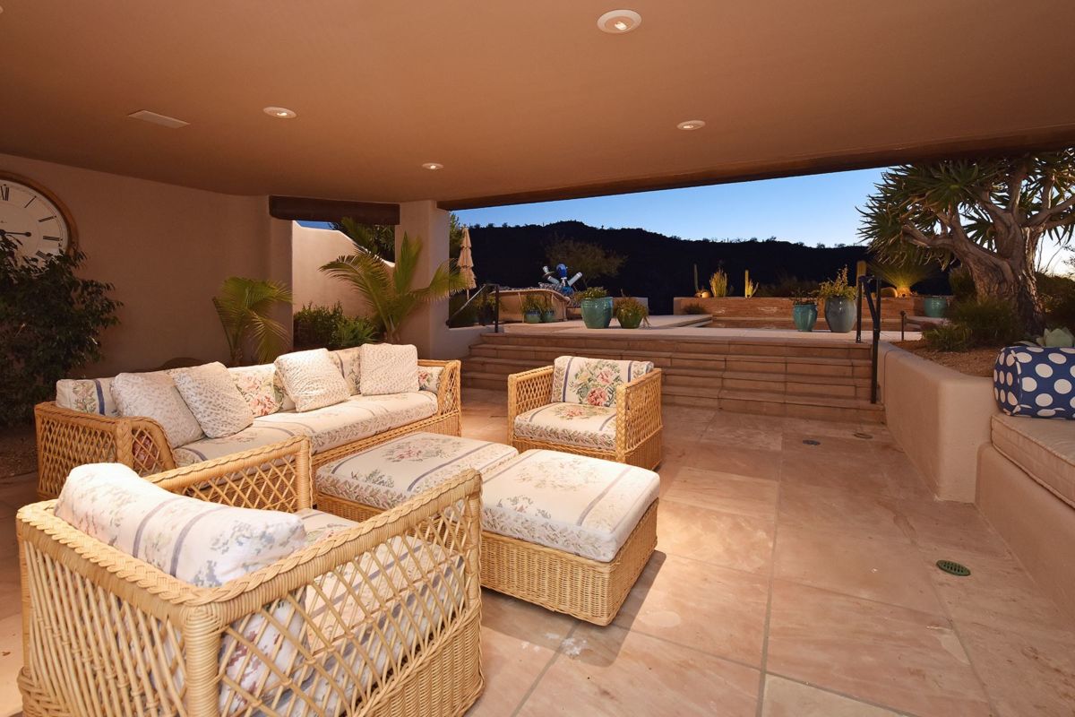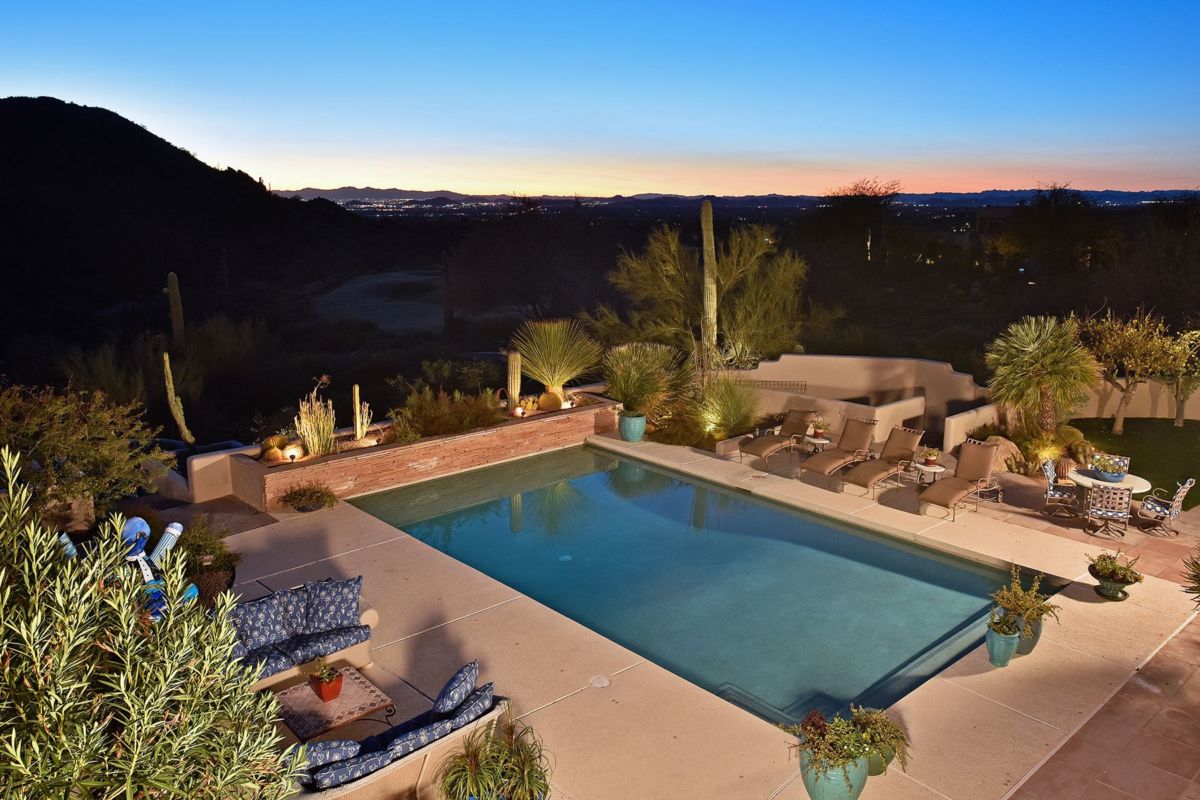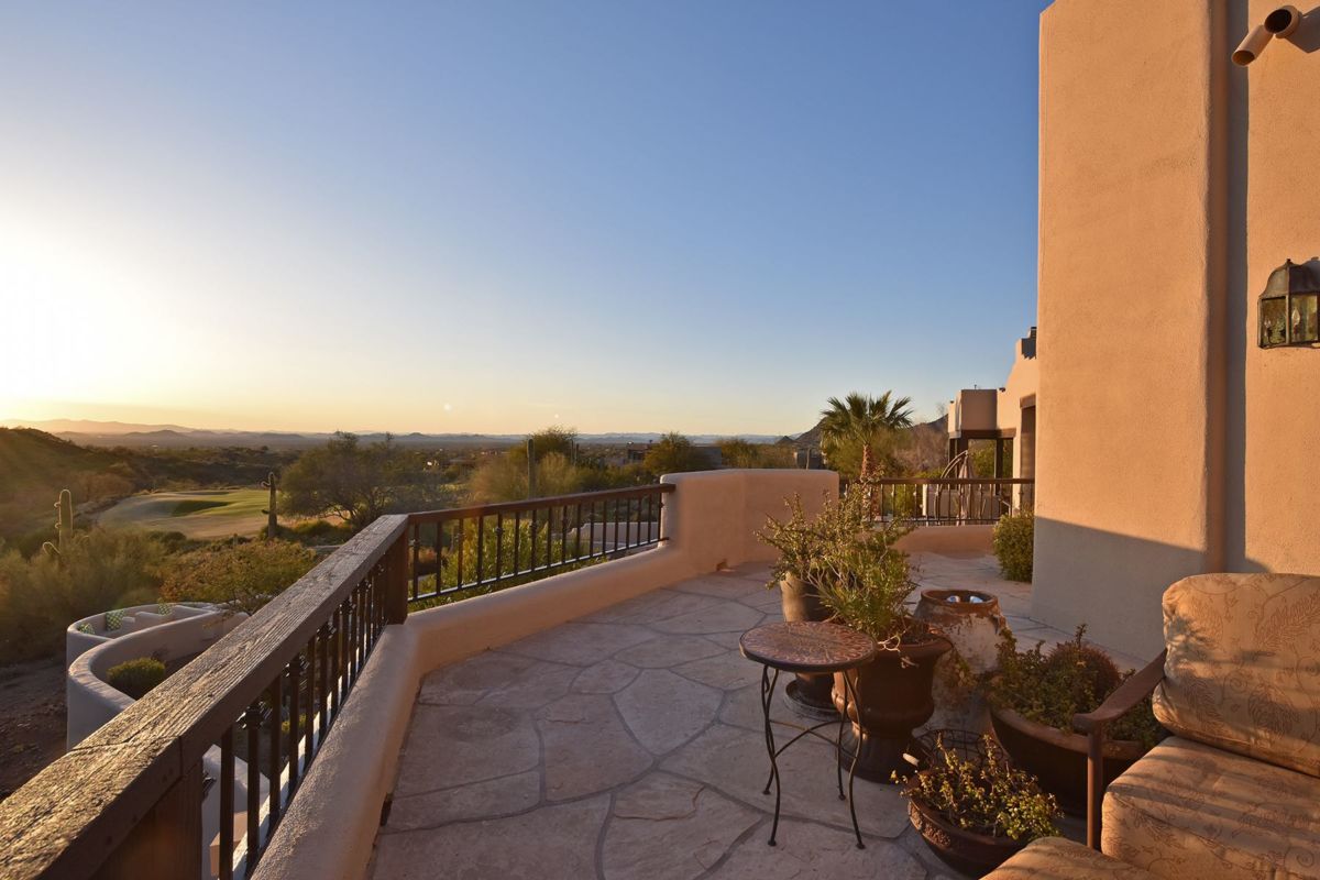 Privately tucked away in guard-gated Glenn Moor at Troon Village, this magnificent Southwest territorial style home has the feel of a desert oasis. Overlooking the 14th fairway nicknamed “The Cliff” of Troon Country Club’s world famous course, with the McDowell Mountains as a backdrop, enjoy the canyon, mountain, golf, and city light views from the numerous patios, courtyards and the large resort style pool with lounge deck and water feature.