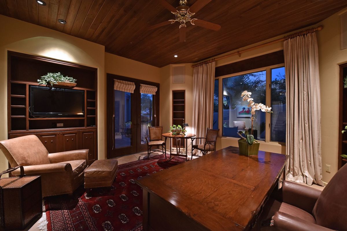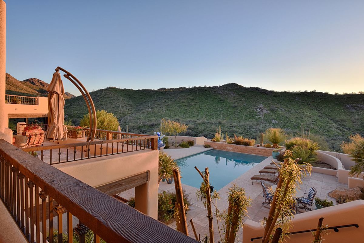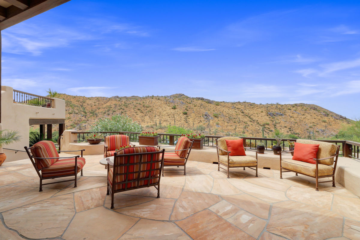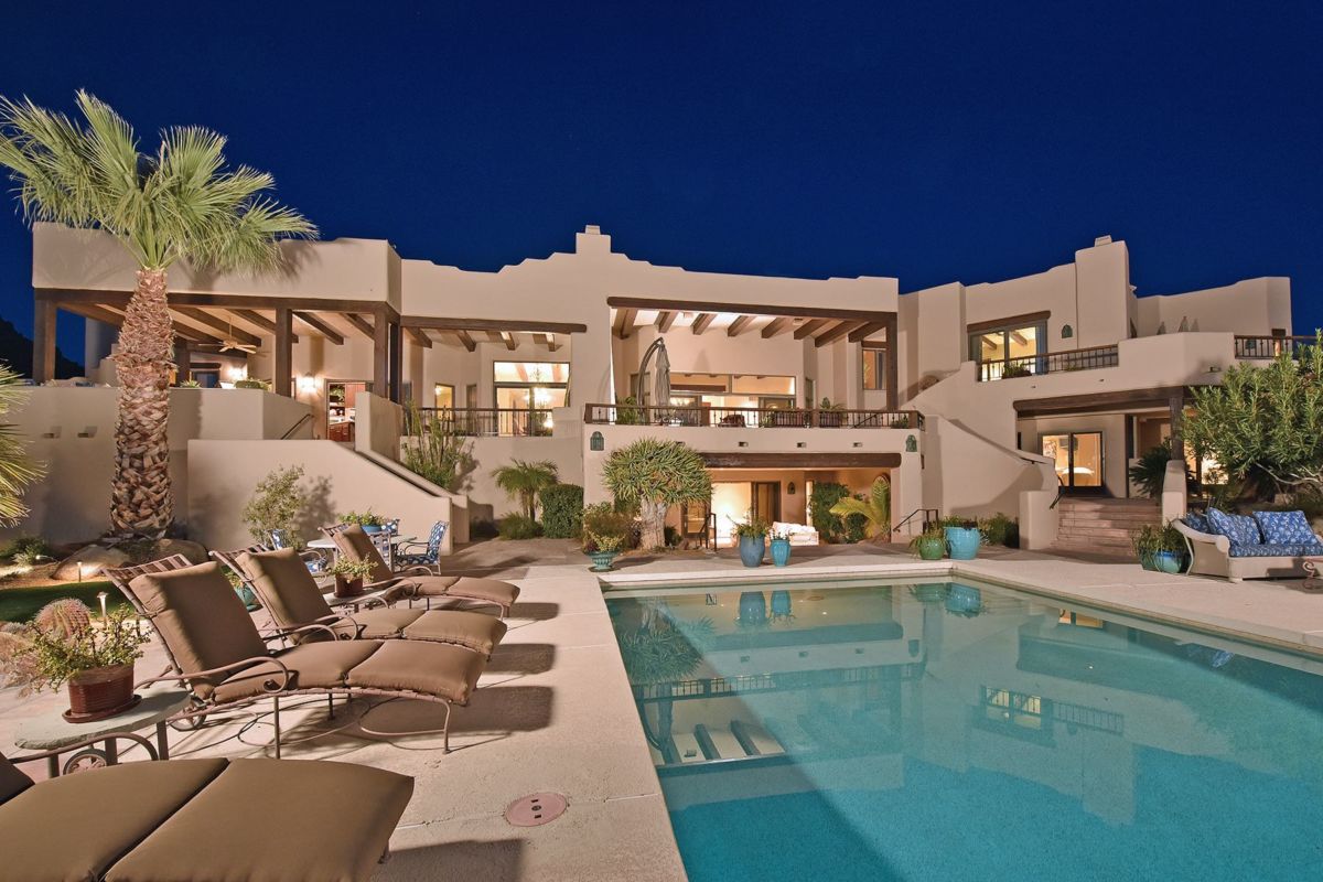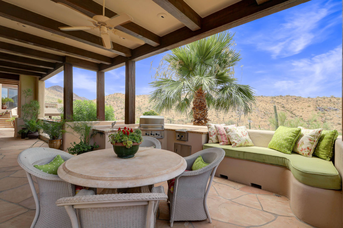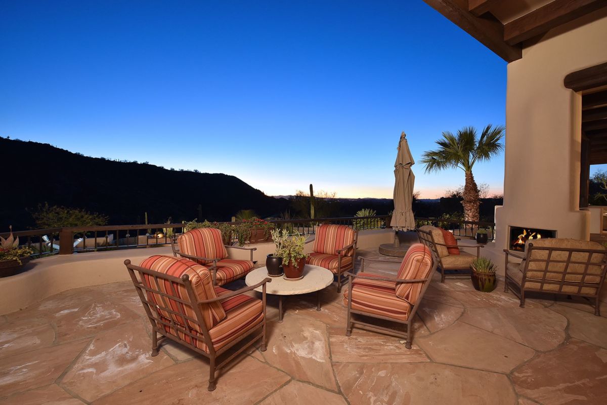 Privately tucked away in guard-gated Glenn Moor at Troon Village, this magnificent Southwest territorial style home has the feel of a desert oasis. Overlooking the 14th fairway nicknamed “The Cliff” of Troon Country Club’s world famous course, with the McDowell Mountains as a backdrop, enjoy the canyon, mountain, golf, and city light views from the numerous patios, courtyards and the large resort style pool with lounge deck and water feature.