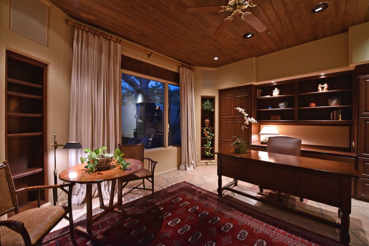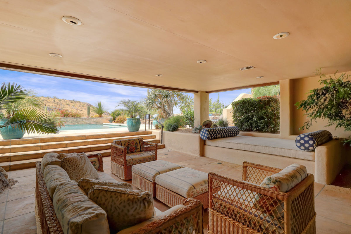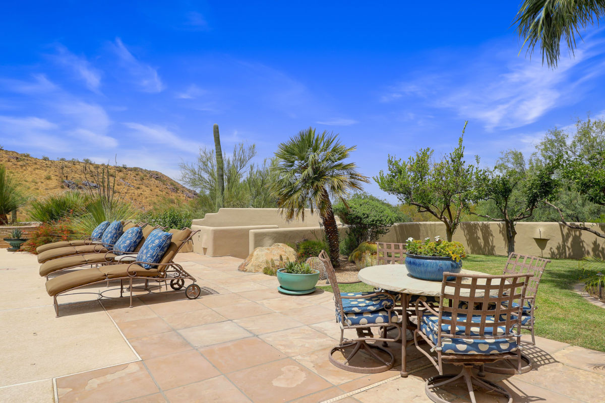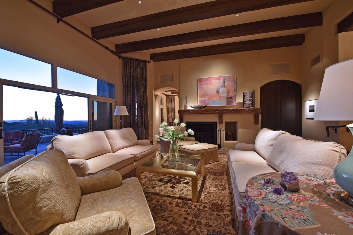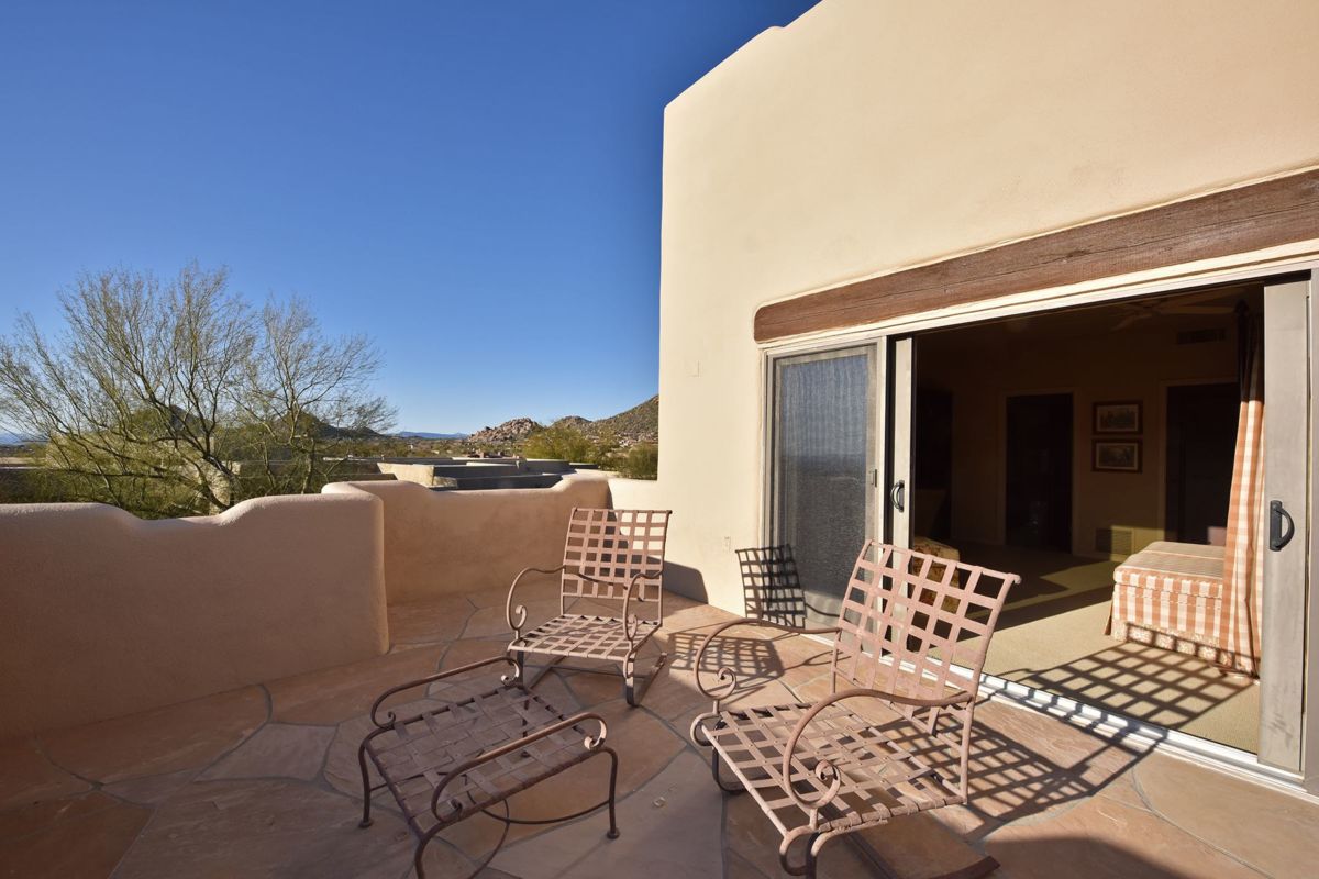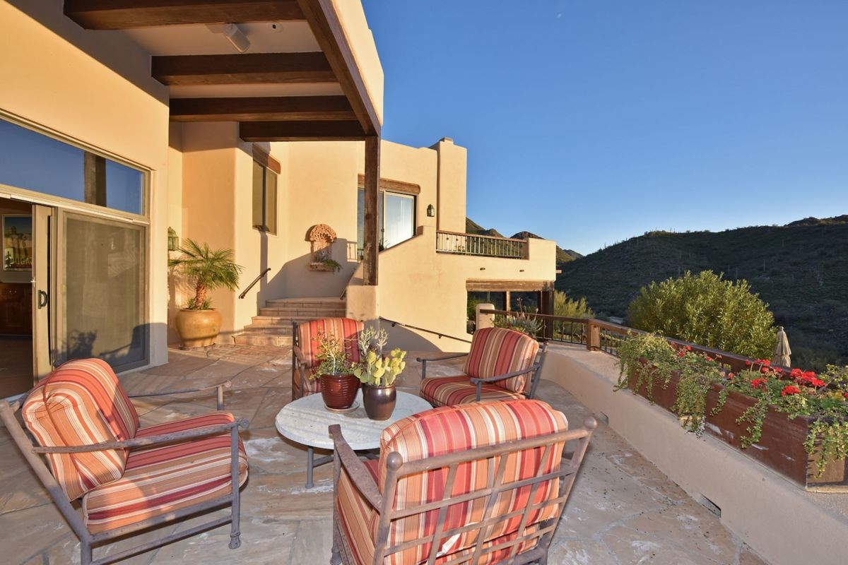 Privately tucked away in guard-gated Glenn Moor at Troon Village, this magnificent Southwest territorial style home has the feel of a desert oasis. Overlooking the 14th fairway nicknamed “The Cliff” of Troon Country Club’s world famous course, with the McDowell Mountains as a backdrop, enjoy the canyon, mountain, golf, and city light views from the numerous patios, courtyards and the large resort style pool with lounge deck and water feature.