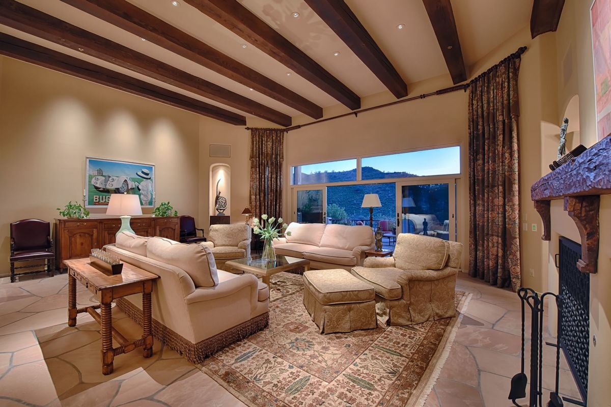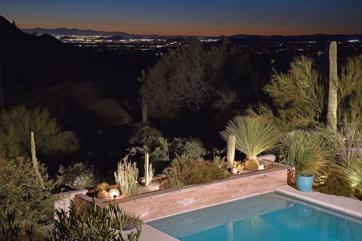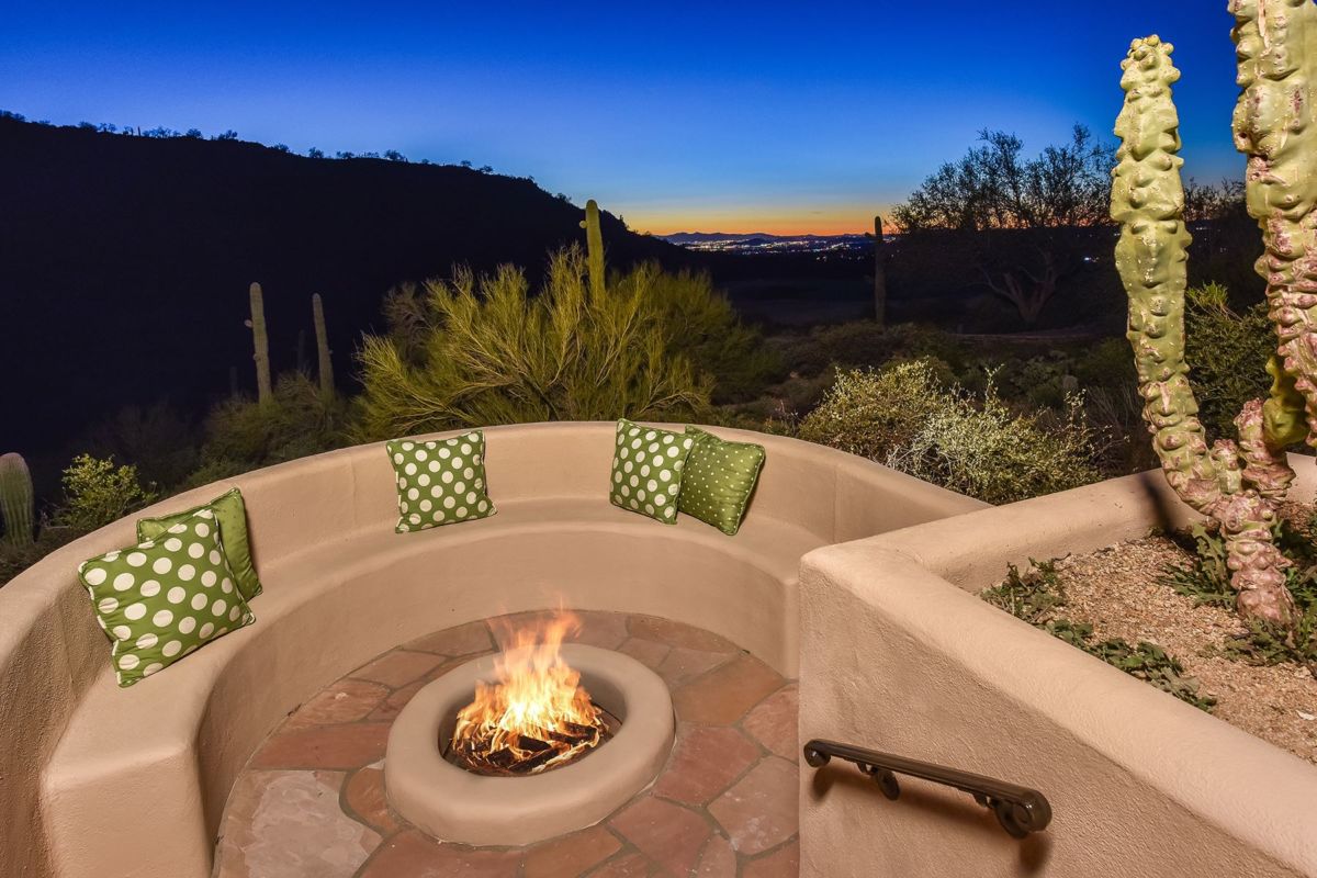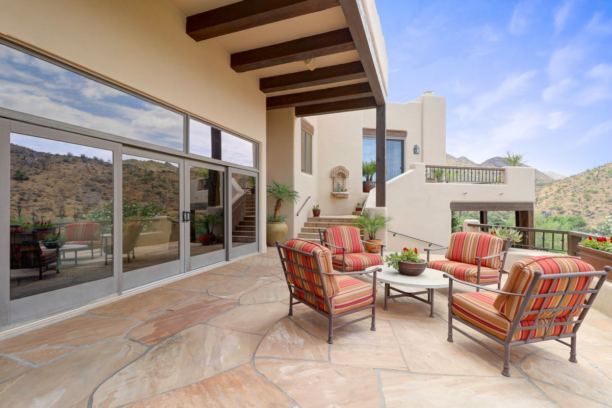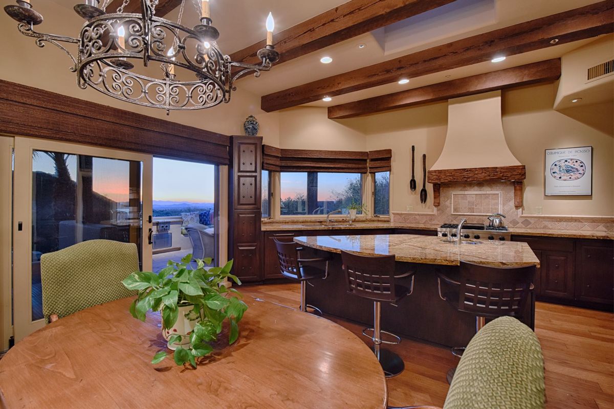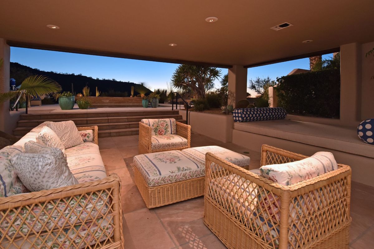 Privately tucked away in guard-gated Glenn Moor at Troon Village, this magnificent Southwest territorial style home has the feel of a desert oasis. Overlooking the 14th fairway nicknamed “The Cliff” of Troon Country Club’s world famous course, with the McDowell Mountains as a backdrop, enjoy the canyon, mountain, golf, and city light views from the numerous patios, courtyards and the large resort style pool with lounge deck and water feature.