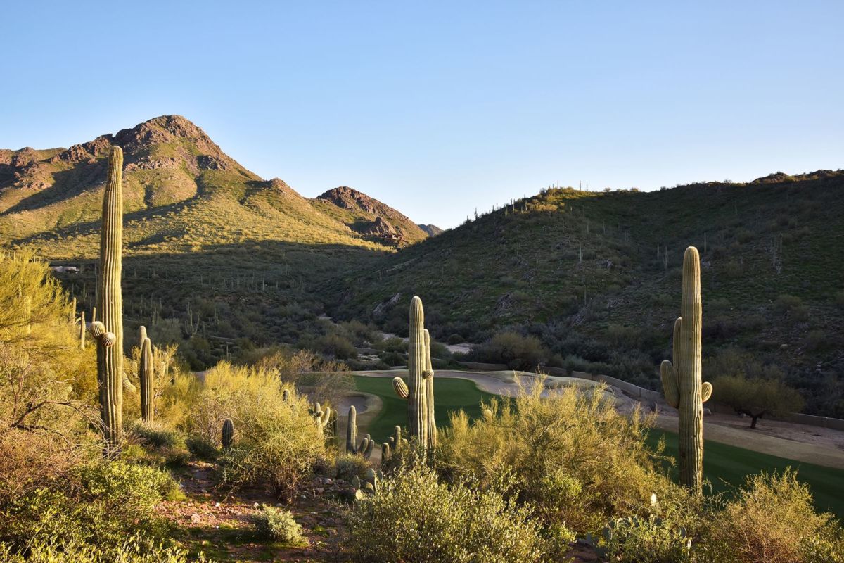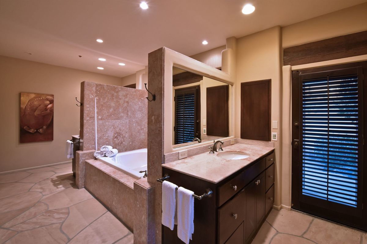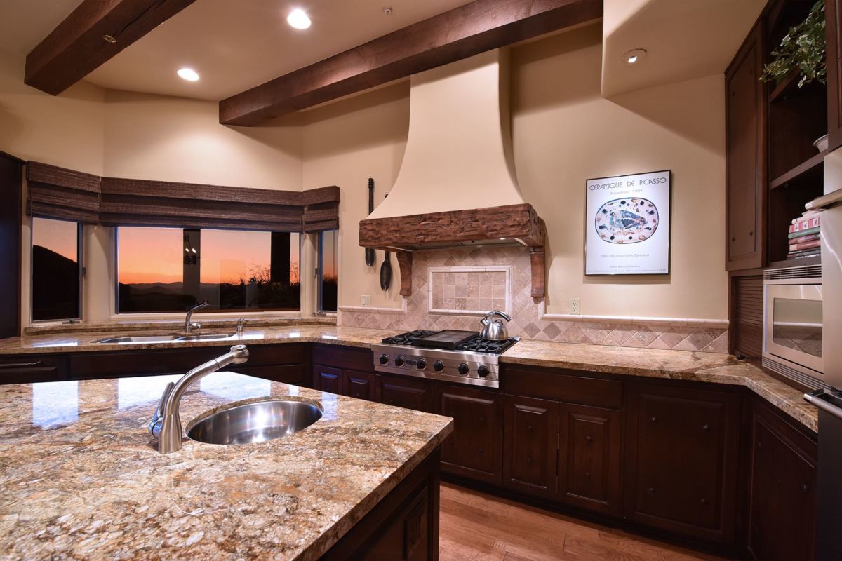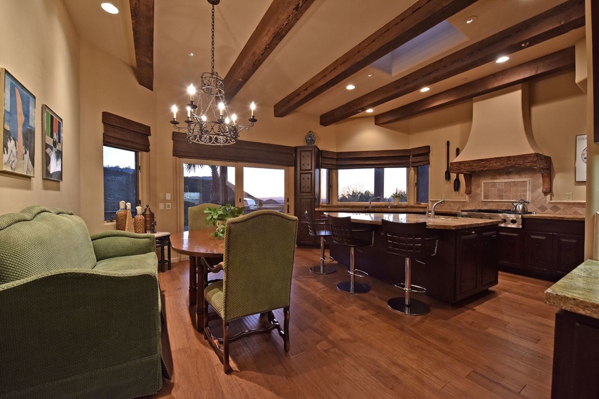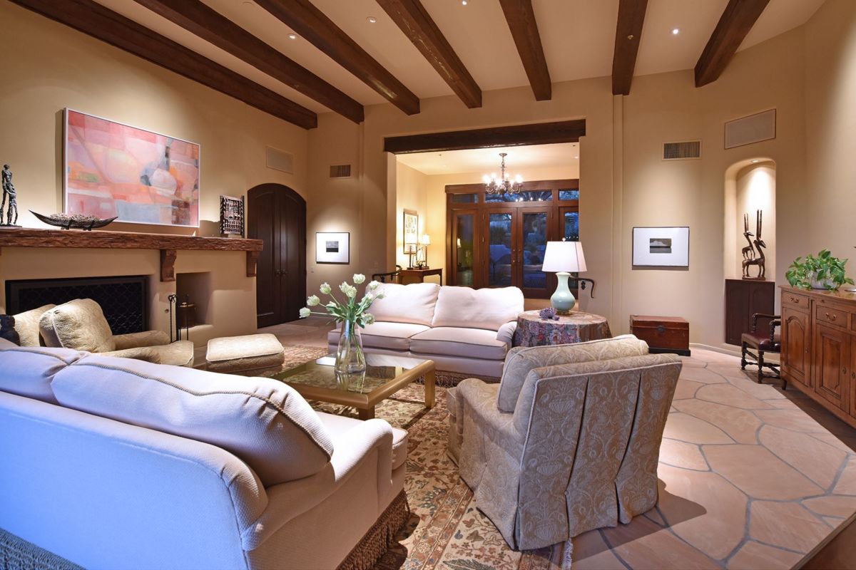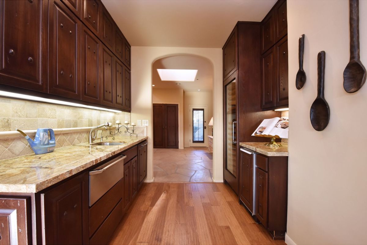 Privately tucked away in guard-gated Glenn Moor at Troon Village, this magnificent Southwest territorial style home has the feel of a desert oasis. Overlooking the 14th fairway nicknamed “The Cliff” of Troon Country Club’s world famous course, with the McDowell Mountains as a backdrop, enjoy the canyon, mountain, golf, and city light views from the numerous patios, courtyards and the large resort style pool with lounge deck and water feature.