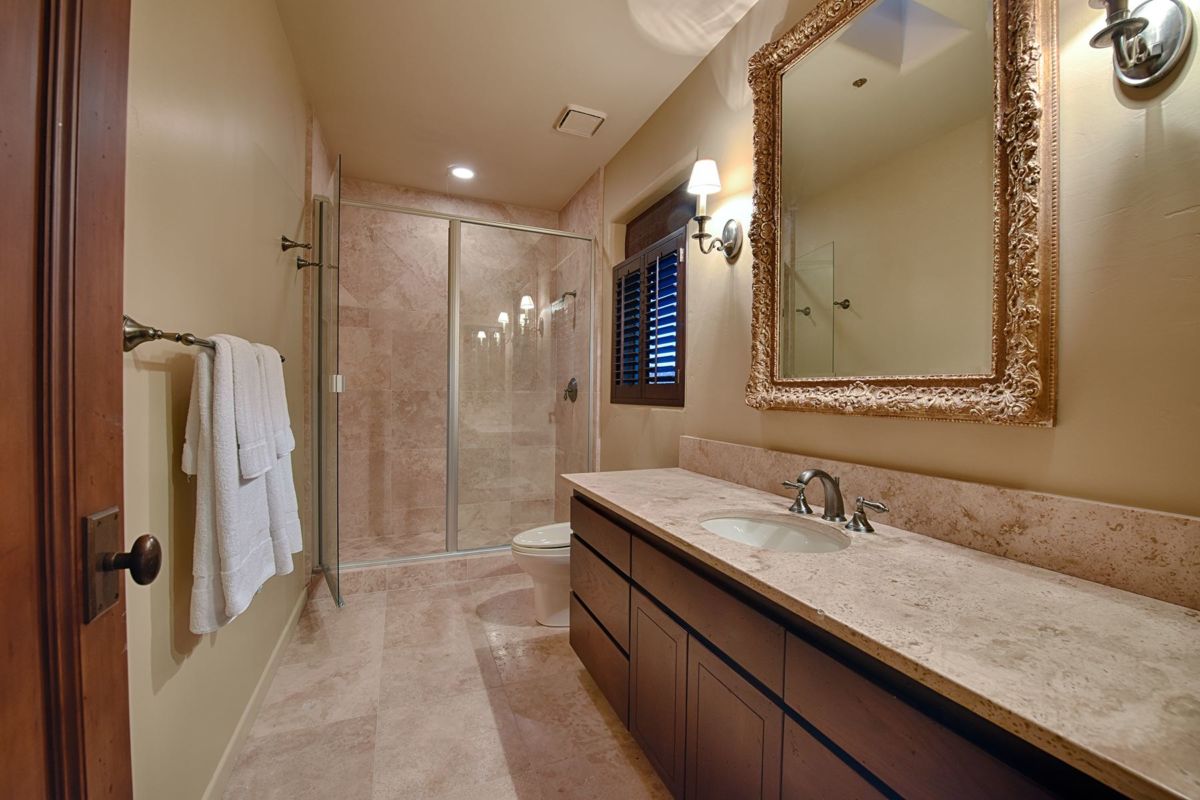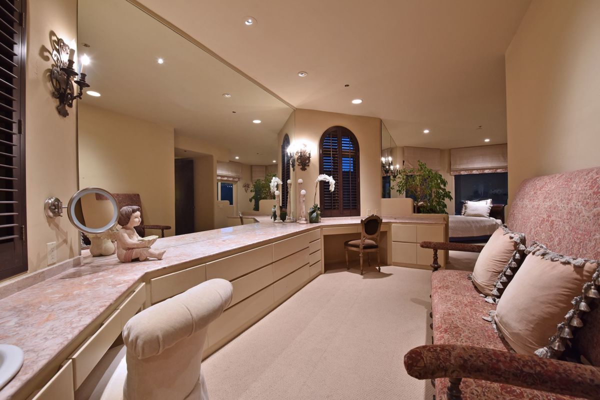 Upon arriving you are greeted by the professionally designed and lush landscaping including a courtyard bridge over the winding entry river and waterfall. The spacious 8,000 plus floor plan has 4 ensuite bedrooms all with private patios, loft, 2 powder baths, office with built-ins, two laundry rooms, exercise room with sauna and an art studio, basement/storage area.