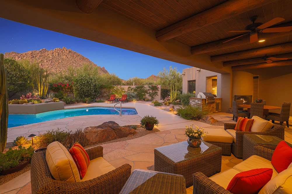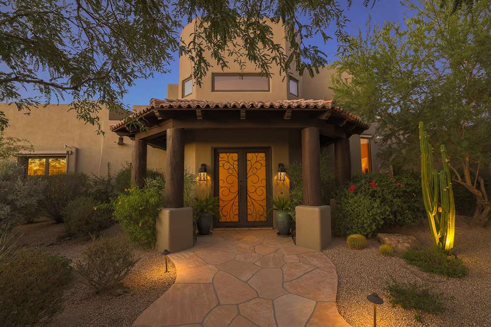 New interior paint in 2021! Beautifully remodeled with modern updates and finishes set the standard for this custom home in guard-gated Glenn Moor at Troon Village. Situated on the 18th Fairway of Troon Country Club’s private course enjoy the direct views of Troon mountain as well as views of Pinnacle Peak from the resort like backyard.