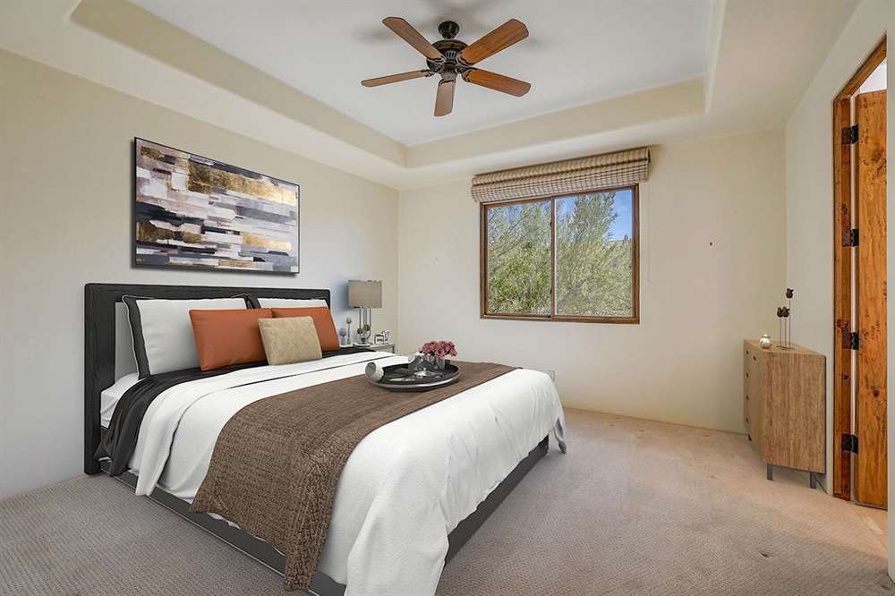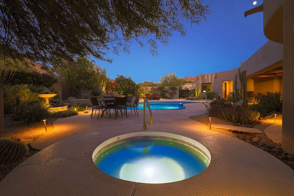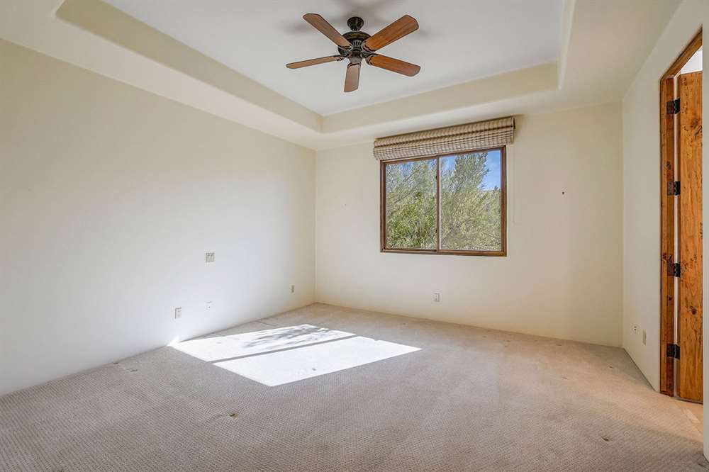 The backyard has a sparkling pool and heated spa, large covered patio with accent beams and latilla, corner kiva fireplace, built-in barbecue, soothing water fountain, and lush landscaping all highlighting the views. High ceilings, mud room, three car garage, wood casement windows and doors, solid wood interior doors, solid block construction, and so much more!