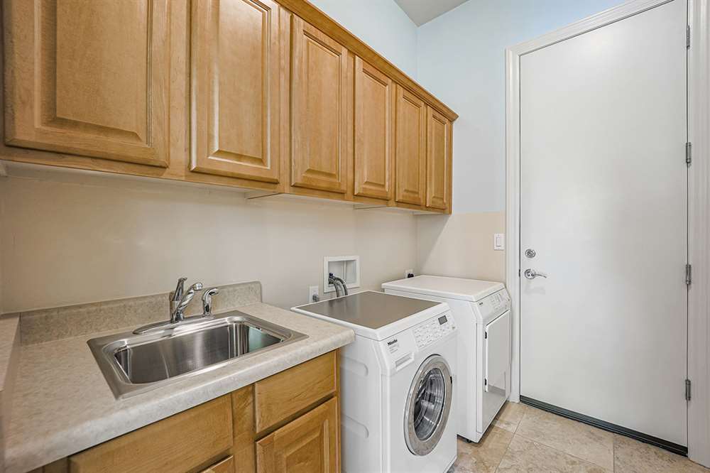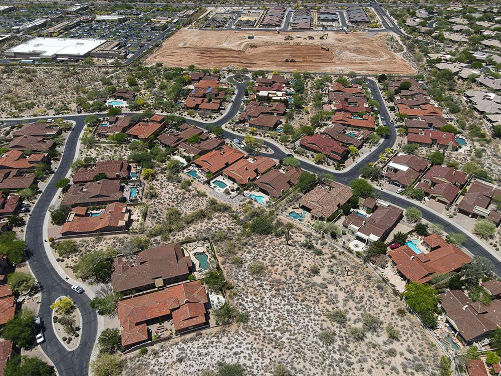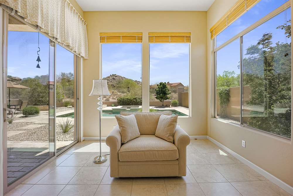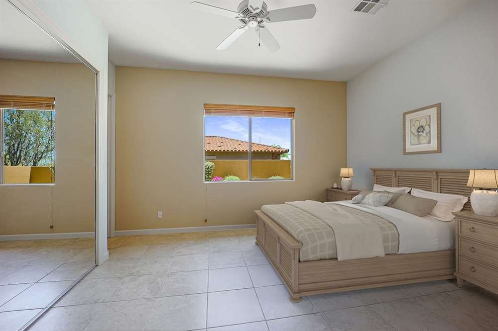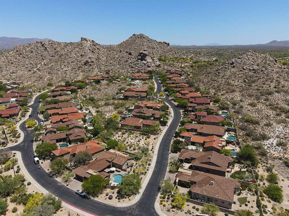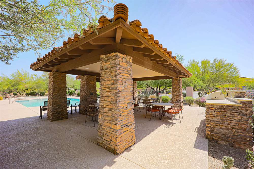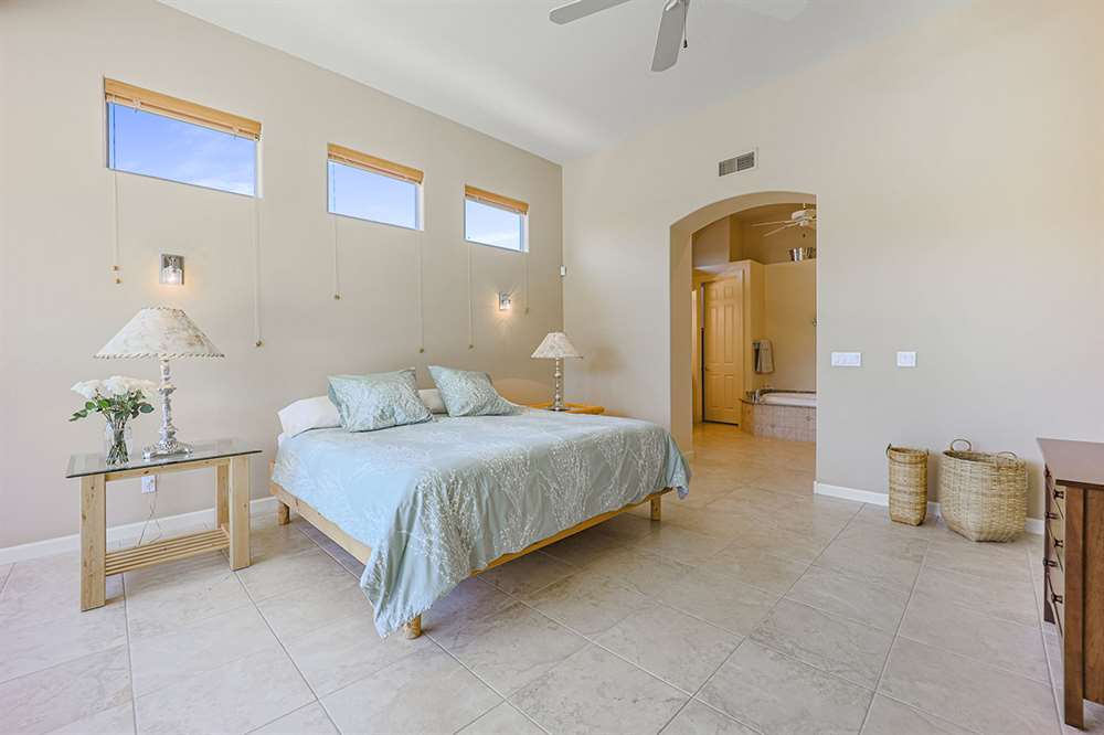The kitchen opens to the family room, with granite counters and backsplash, stainless steel appliance package, center island with sink and bar seating, built in desk, gas range, and access to a dining/breakfast courtyard to enjoy coffee in the morning or al fresco meals in the evening. The master suite has a relaxing sitting area, exterior access, centerpiece soaking tub, dual vanities, dual walk-in closets and a separate shower. Formal dining and living spaces, a three-car garage and all patios are chiseled travertine pavers. The community center rounds out this meticulous home with a pool, meeting room, fireplace, and barbecue.