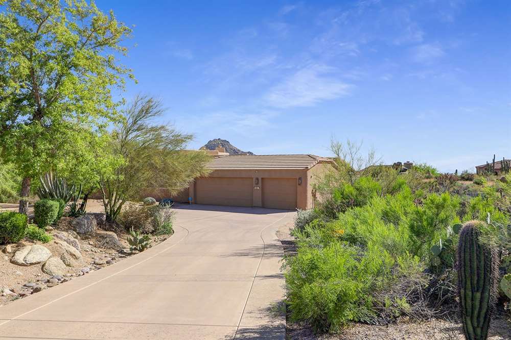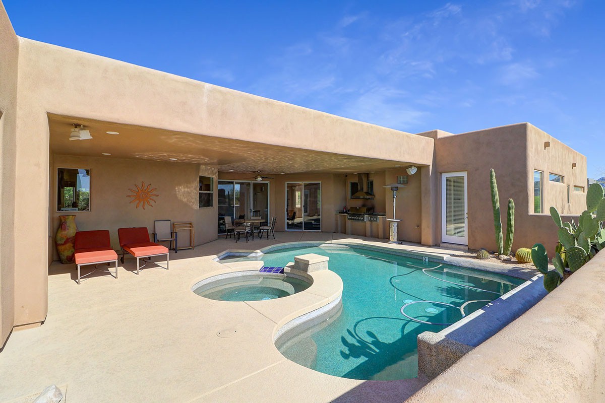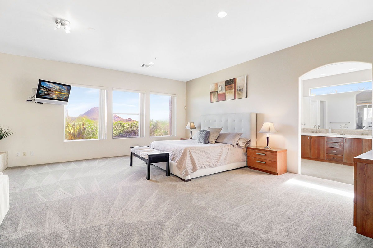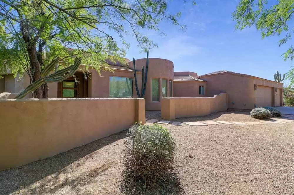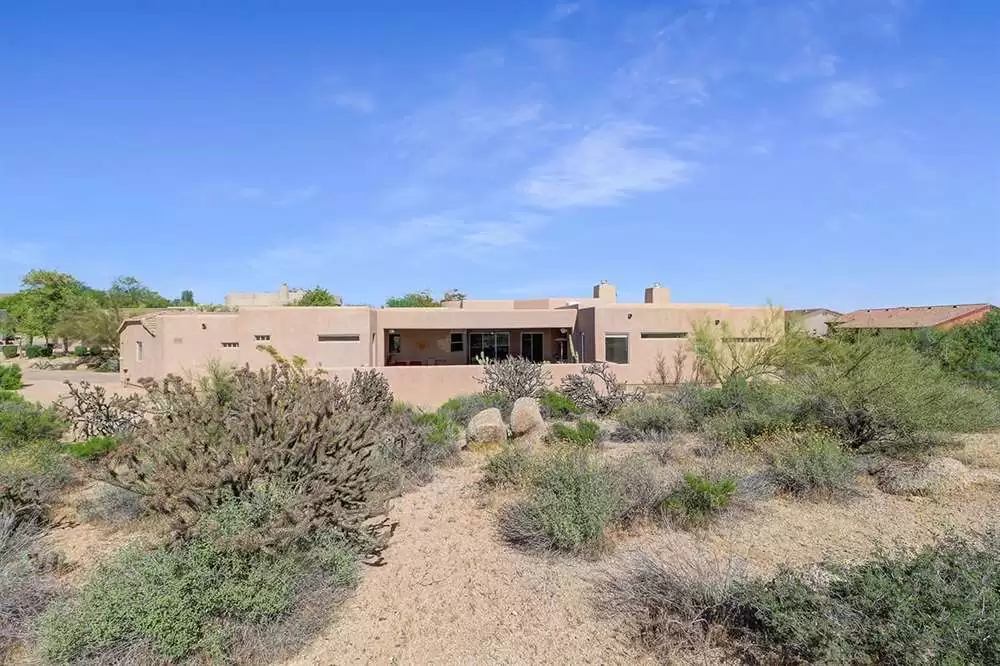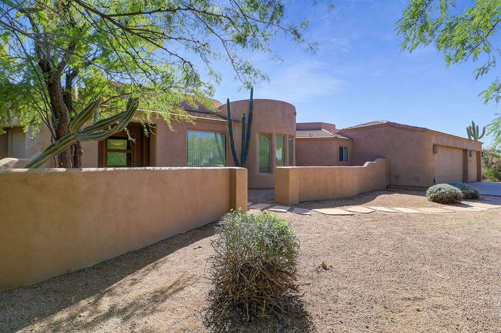 Contemporary styled custom home in the Pinnacle Foothills neighborhood of North Scottsdale. Located on over half an acre and nestled away for a private feel, this 2,900 SF home features three ensuite bedrooms, all with rear patio access and walk-in closets.