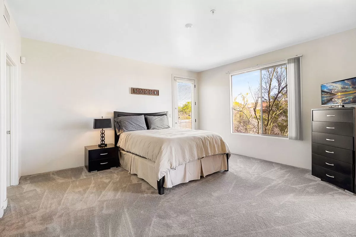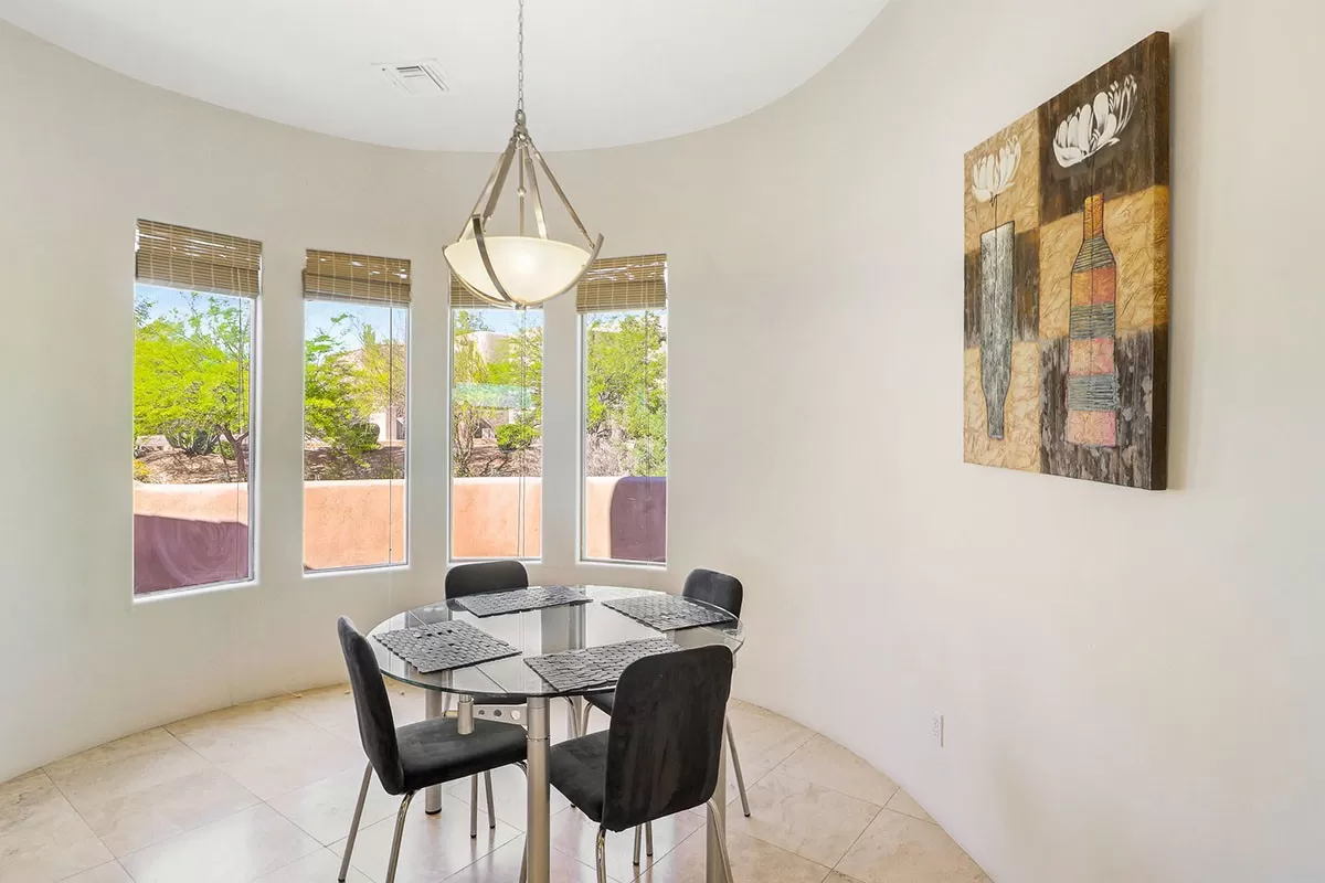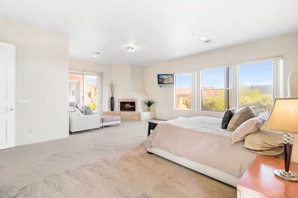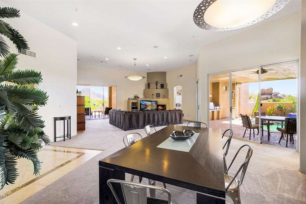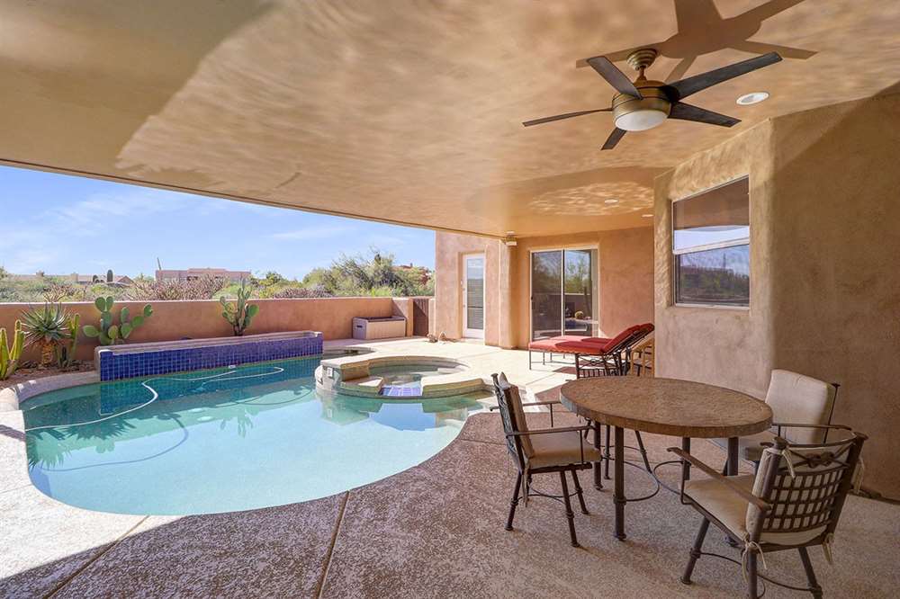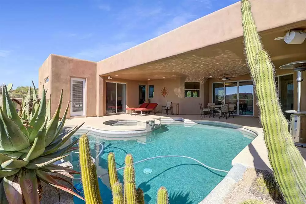 Contemporary styled custom home in the Pinnacle Foothills neighborhood of North Scottsdale. Located on over half an acre and nestled away for a private feel, this 2,900 SF home features three ensuite bedrooms, all with rear patio access and walk-in closets.