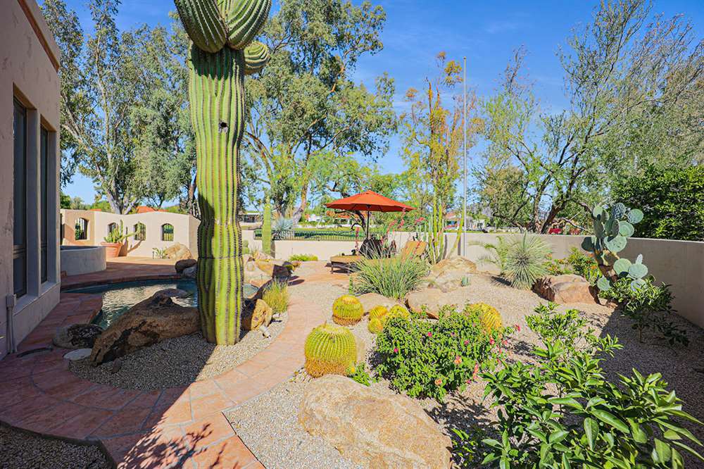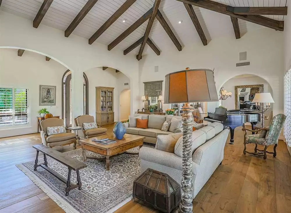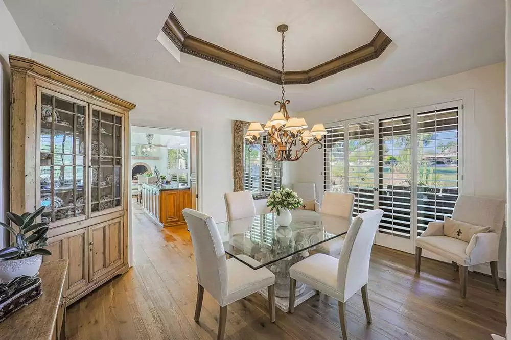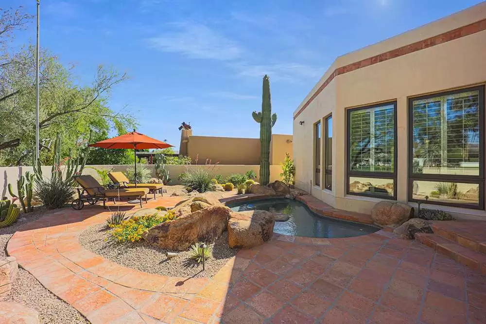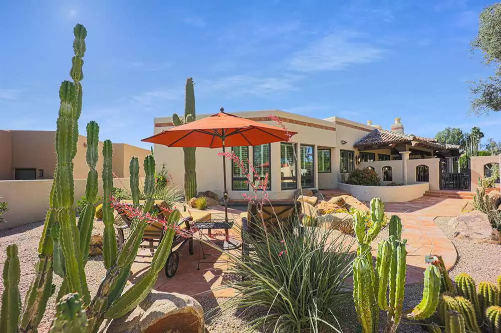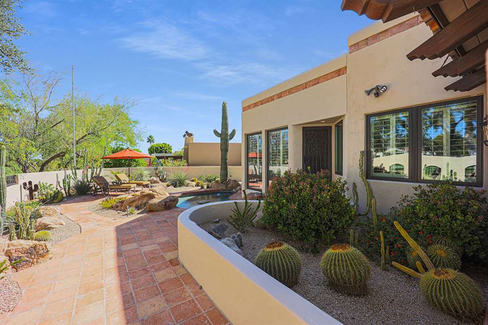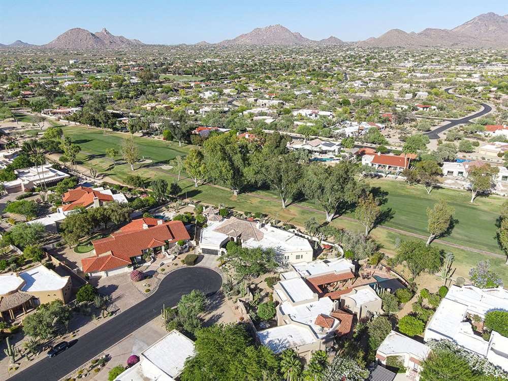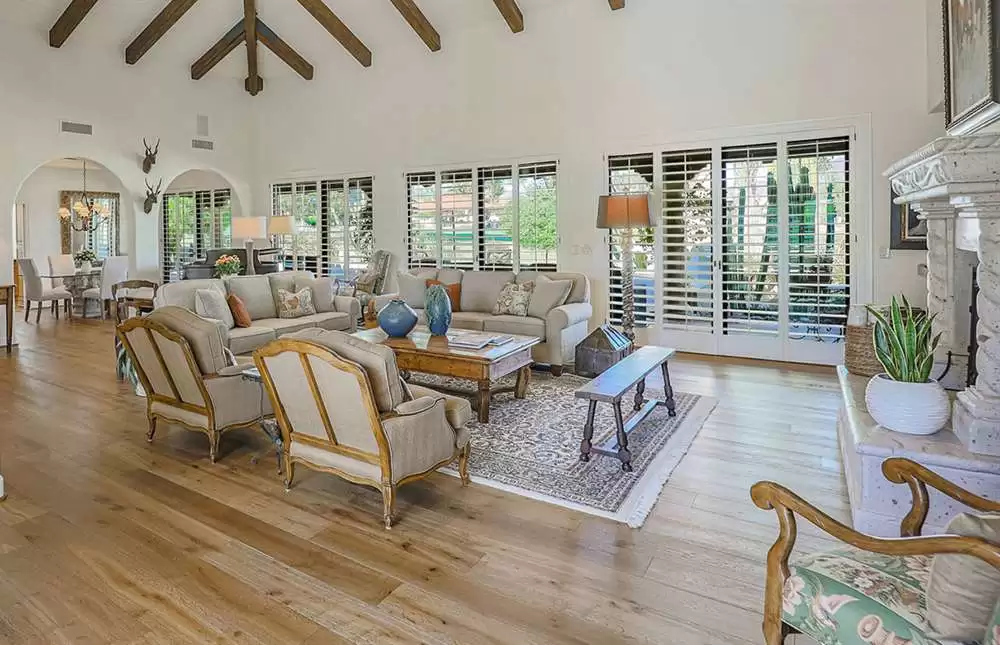 This stunning custom home in guard-gated Pinnacle Peak Country Club brings a wealth of charm and sophistication along with 4,361 square feet of living spaces. Located on the 14th fairway, this updated residence exudes warmth from the new wood floors throughout, soaring wood beamed ceilings, walls of windows overlooking the backyard and golf course, a flowing floor plan with no interior steps, spacious bedrooms, arched entries and so much more!