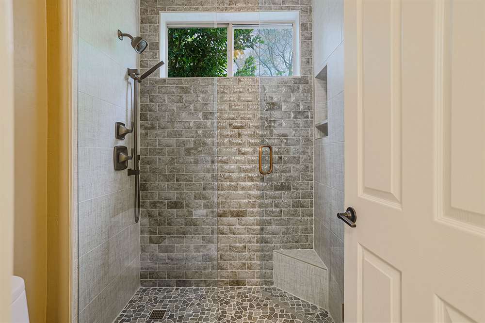 Other features and updates include: 2019 roof underlayment replaced; new windows on the East side of home; 2019 tankless water heater; 2015 installed Trane HVAC units; 2019 exterior painting; both interior fireplaces resurfaced in 2020 with stacked stone; plantation shutters throughout; three car-garage; front entry courtyard.