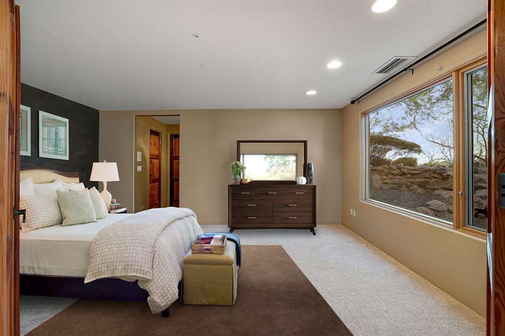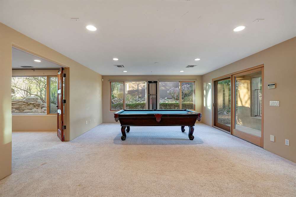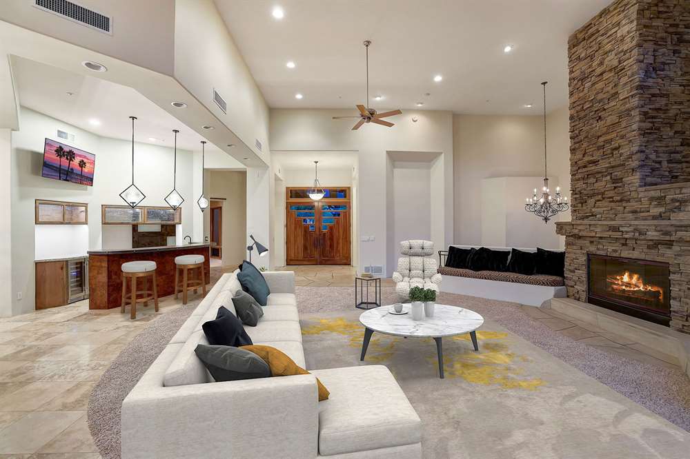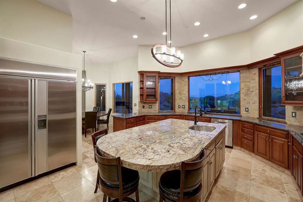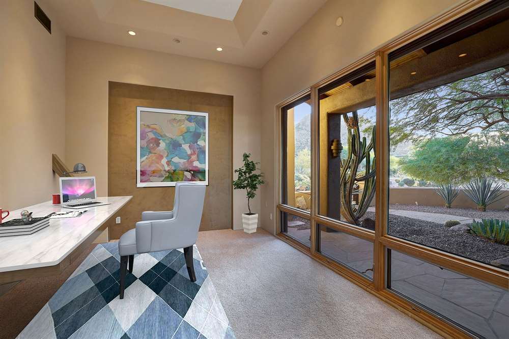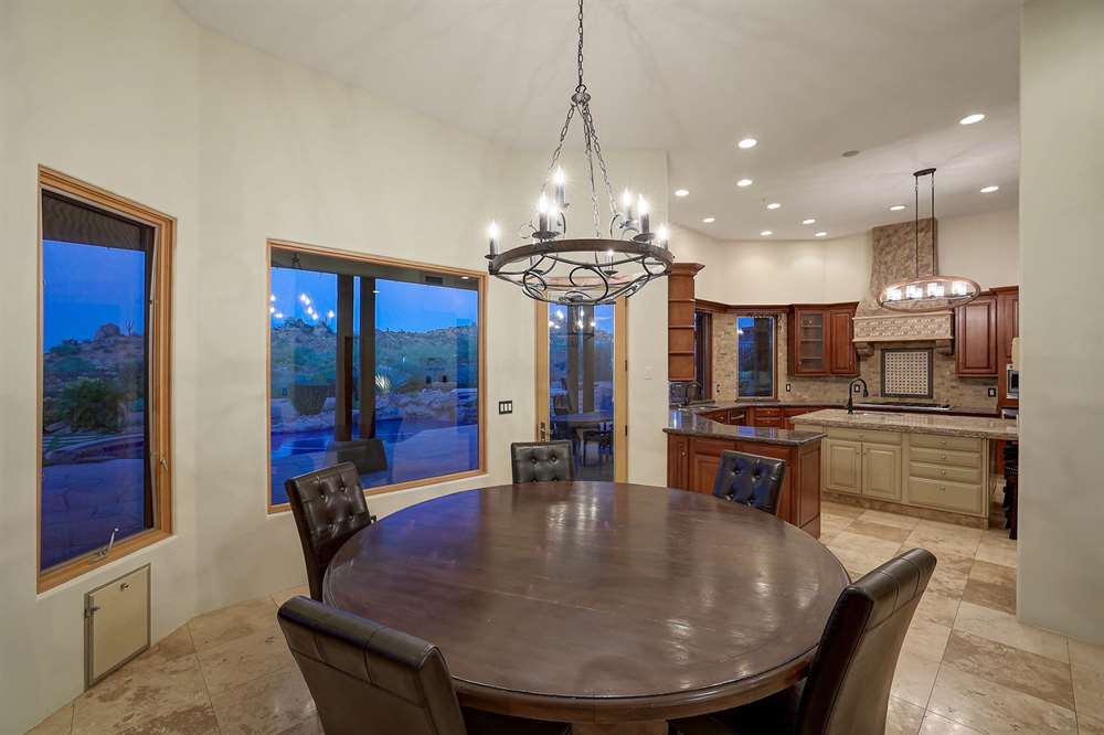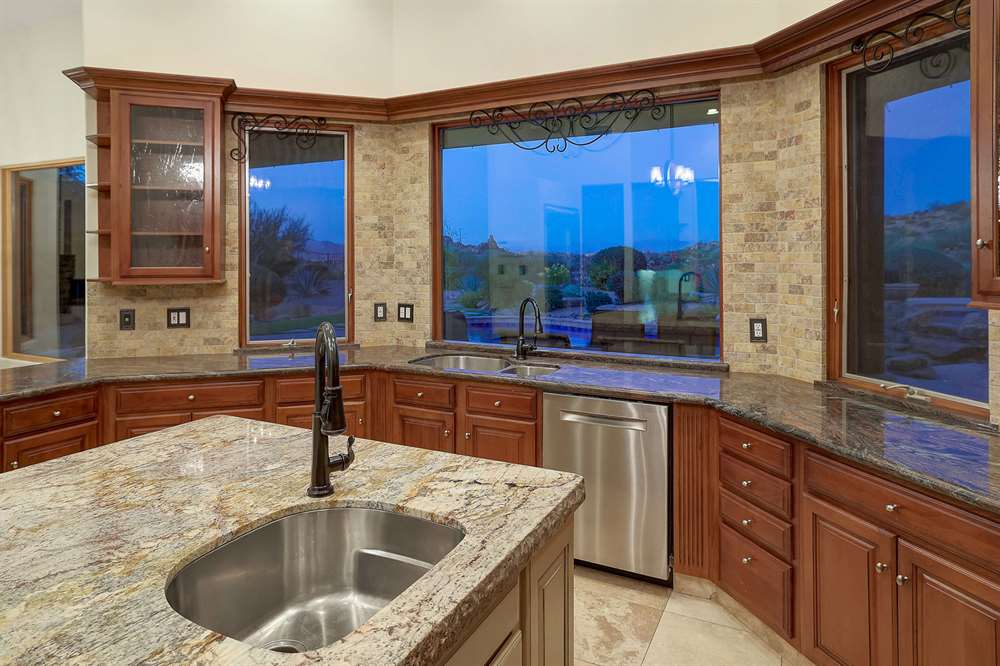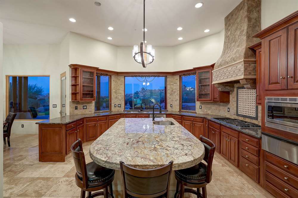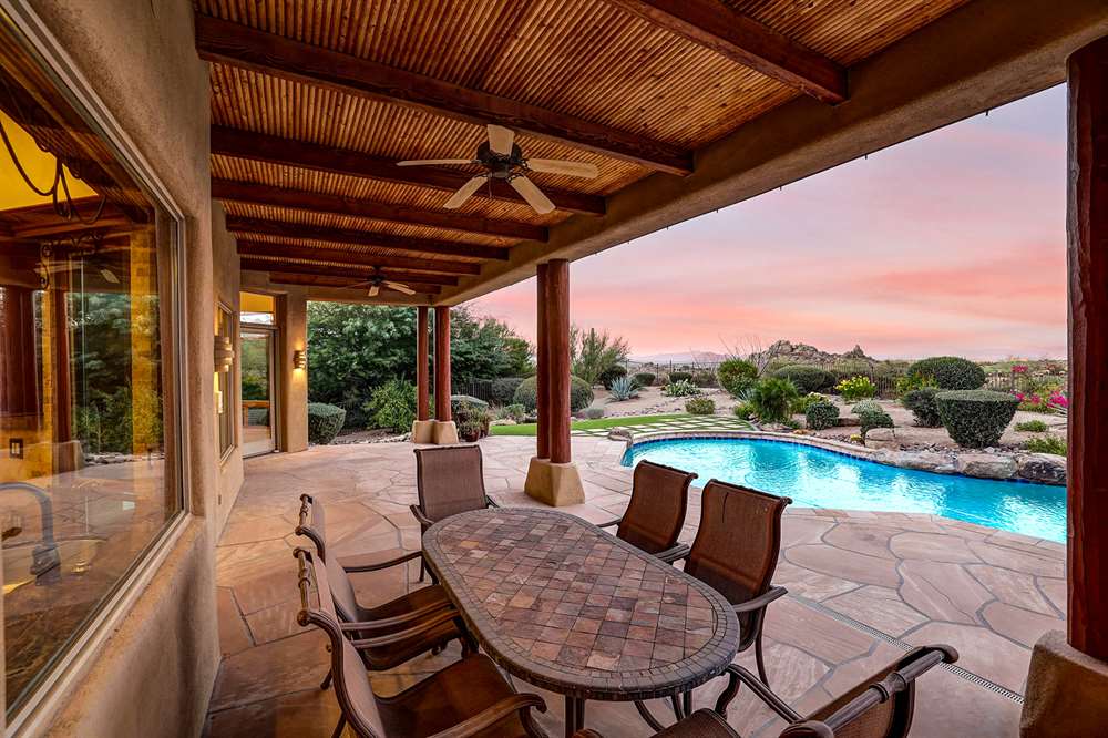 Beautifully landscaped, enjoy the refreshing pool with boulder accents, elevated spa, full covered patio with latilla and beam accents, flagstone hardscape, pergola covered outdoor grilling area with built-in barbecue, Kamado ceramic cooker, bar top for seating and prep sink – all overlooking the views which reach from the McDowell Mountains all the way to the Mazatzal Mountains.