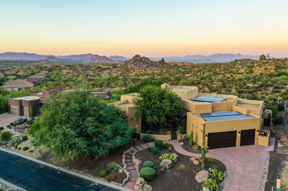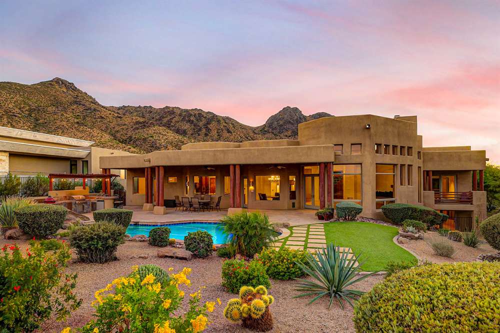 Private and serene setting in gated Troon Highland Estates features a four bedroom, four and a half bath custom home with a resort style backyard and panoramic views!