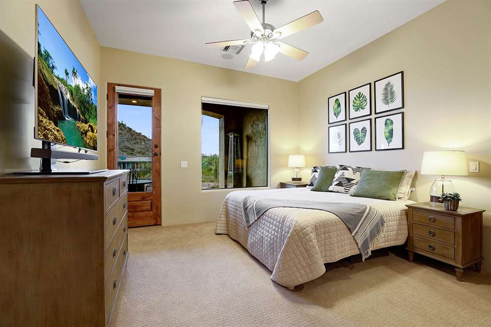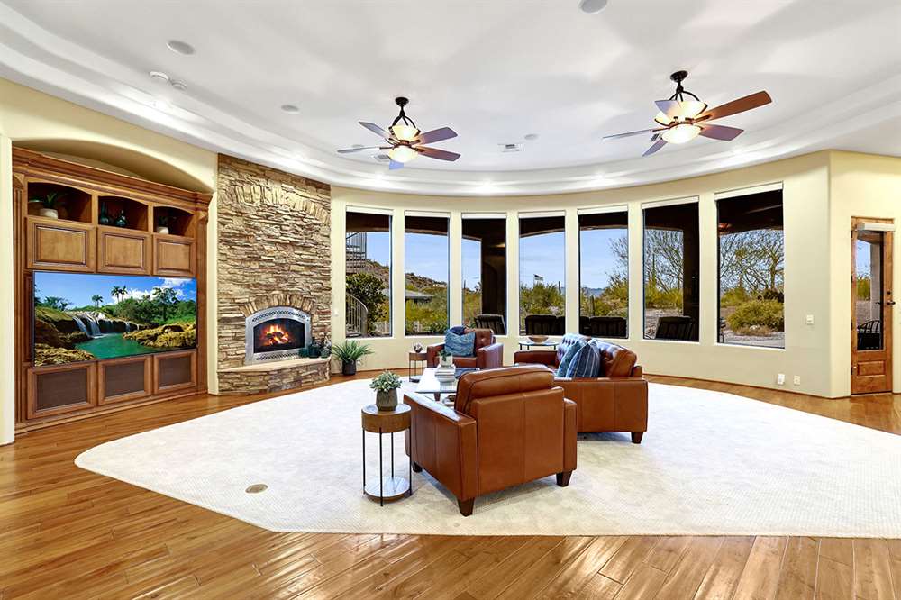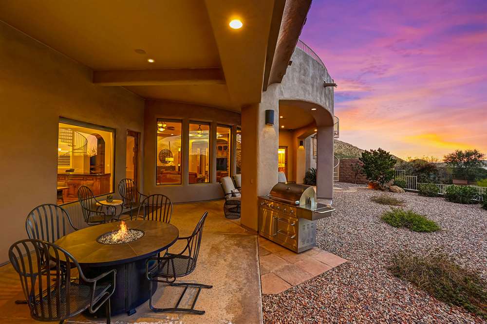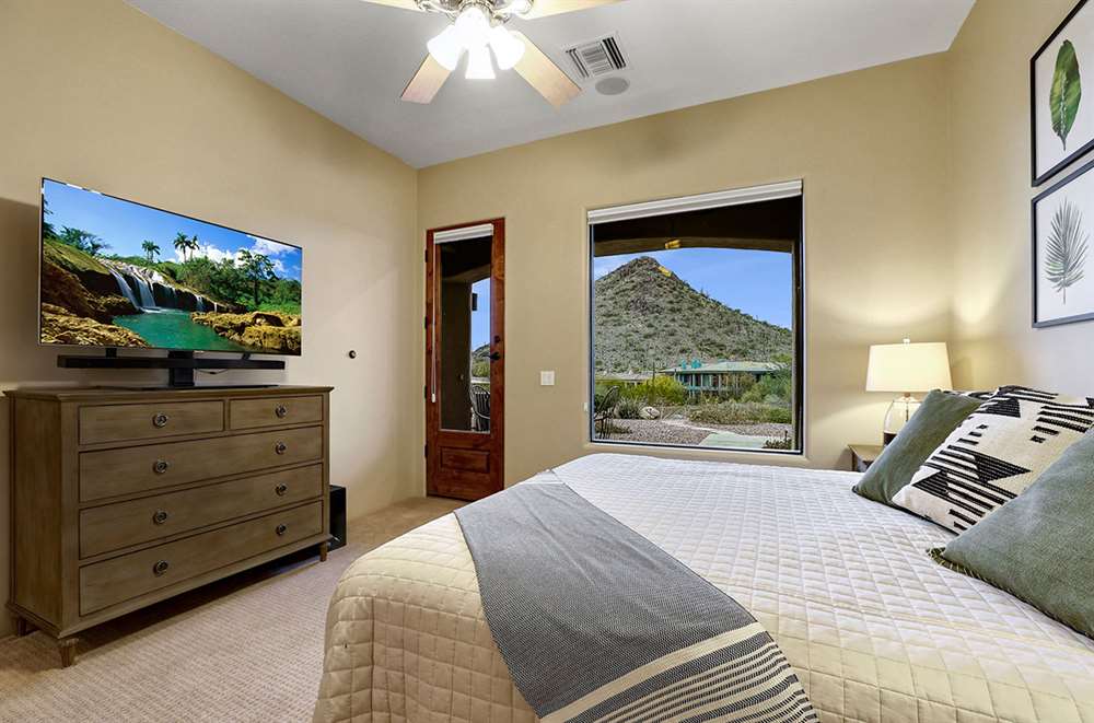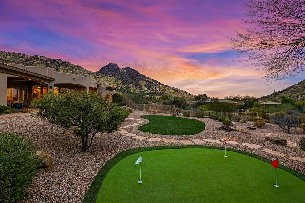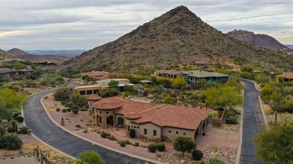 Located at the base of the McDowell Mountain range in gated Troon Highland Estates this custom three bedroom plus office, three and a half bath home offers panoramic views from the front and back!