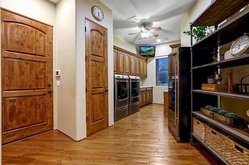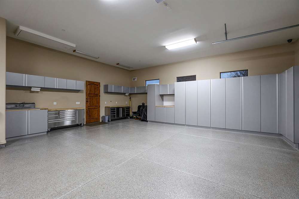 The garage is a car lover’s dream, with room for four and half cars, Lifetime urethane coated floors, and brand new soft close cabinets reinforced for heavy loads. The over-height ceilings in the garage could accommodate lifts with new Anderson 18’x8’ garage doors.