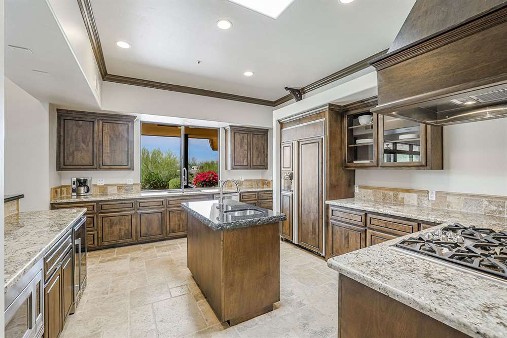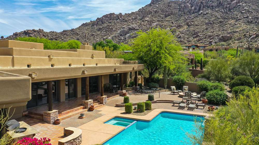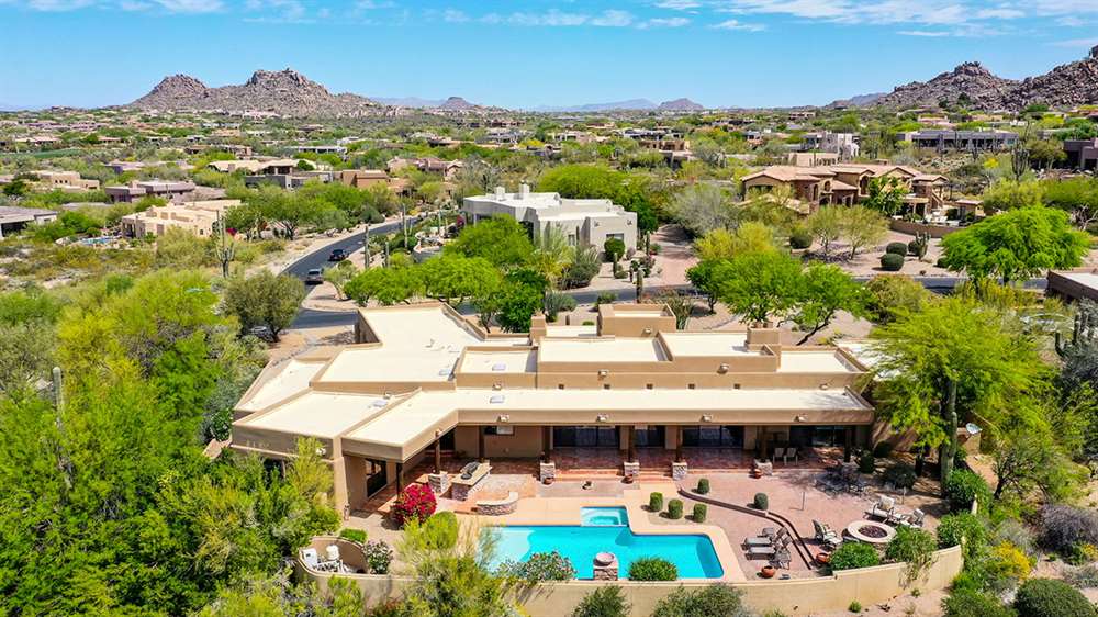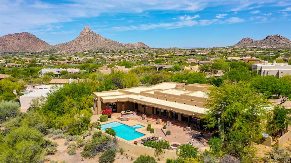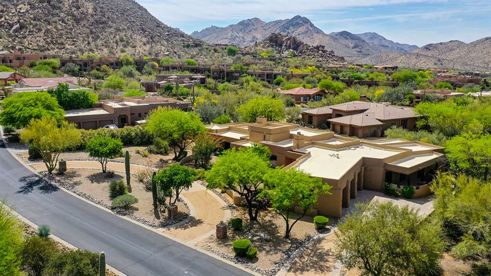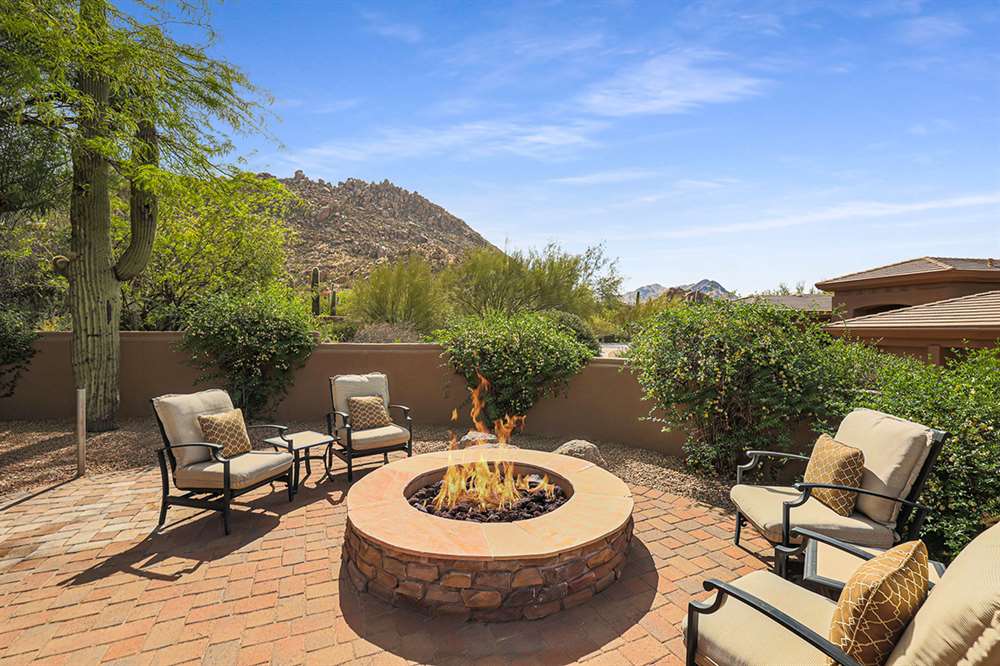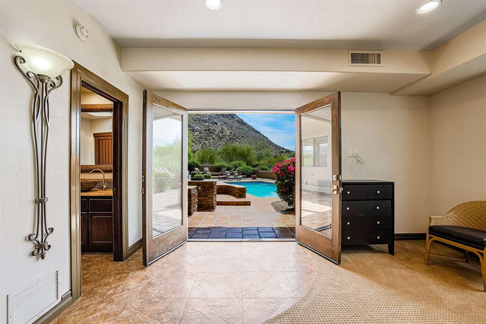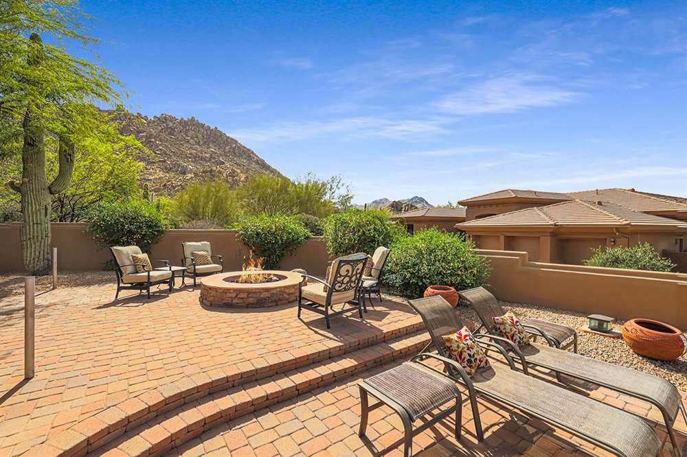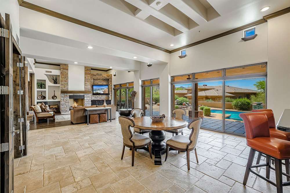 The large covered patio runs the length of the home creating multiple seating areas overlooking the recently resurfaced pool with Baja shelf and spa, Saltillo and paver hardscape, built-in barbecue, fire pit, low maintenance landscaping, and direct views of Troon Mountain. Other features and upgrades include: roof recoated, central vac, three car garage with epoxy floors and storage, wet bar, some windows replaced, gas cooktop, side entry garage and half circle drive, and so much more! Most furnishings available by separate bill of sale.