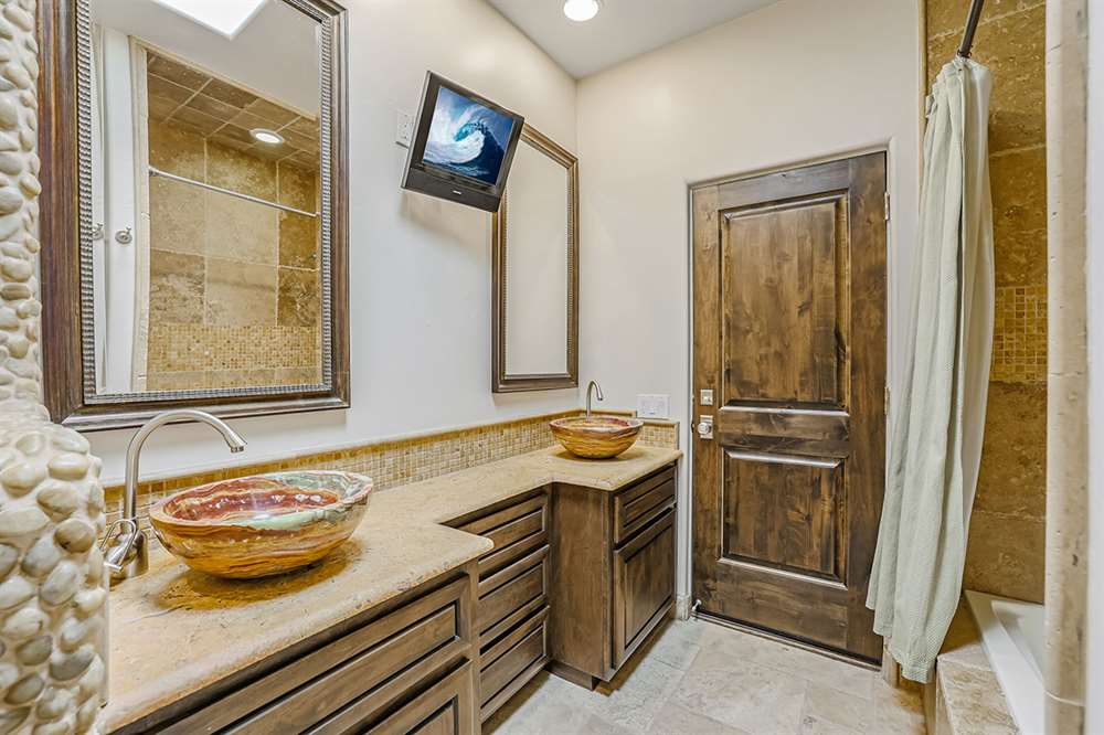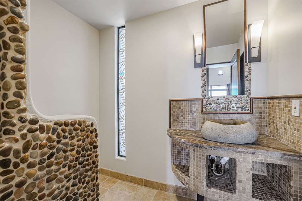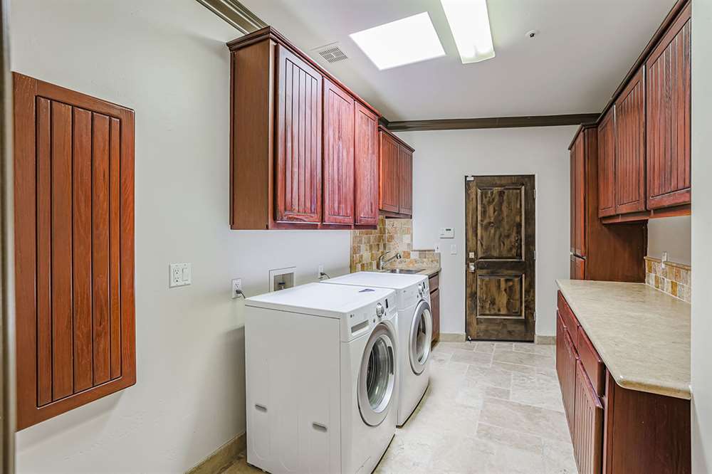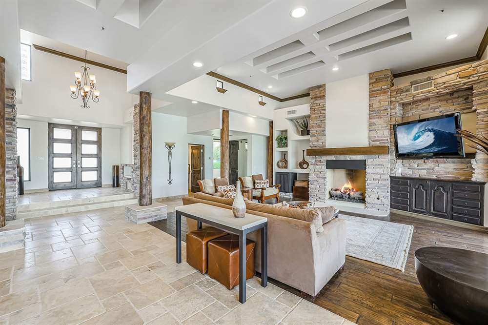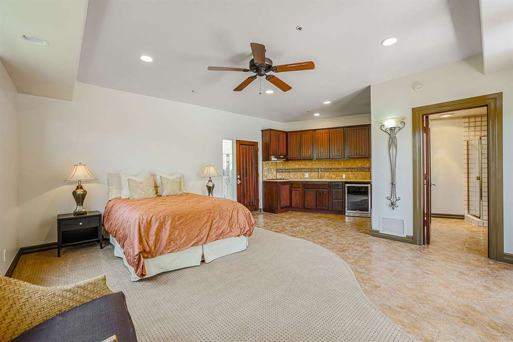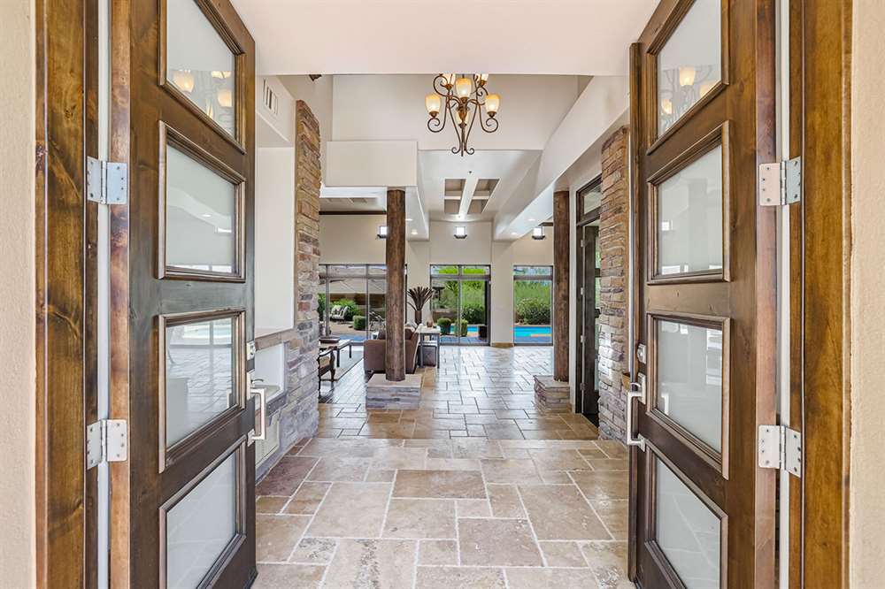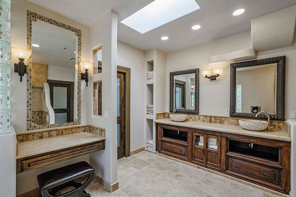 The master has a dedicated wing with a sitting area, fireplace (one of four throughout the property), direct access to the exterior, and a large ensuite with dual sinks, walk-in shower, soaking tub, built-in coffee maker, private water closet, and an oversized closet with center drawer island. The other wing of the home features two additional guest bedrooms sharing a hall bath and each with a private patio. The heart of the home showcases walls of windows and doors to take in the backyard views with a great room feel of the living, breakfast area and kitchen all open to each other. A private office and a formal dining with exterior patio access for entertaining round out the heart of the home. A separate entry casita has exterior backyard access, a kitchenette, seating area and attached bath. Richly stained wood trim and cabinetry, hardwood and tumbled travertine flooring, smooth neutral colored walls, stacked stone accents add character throughout.