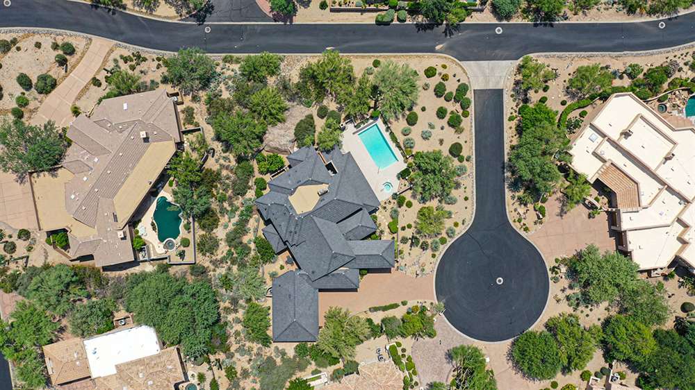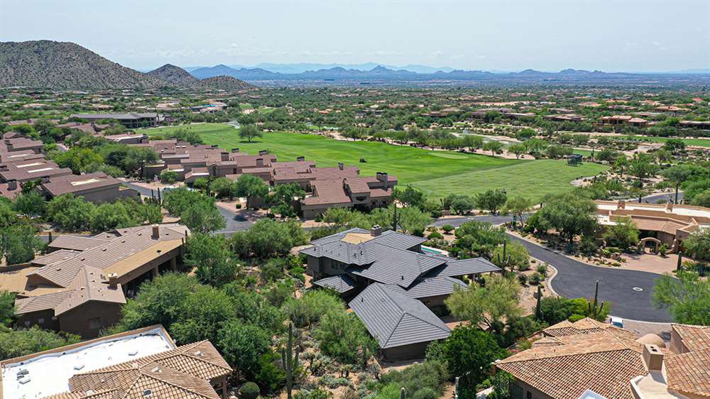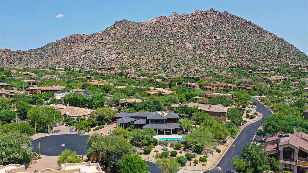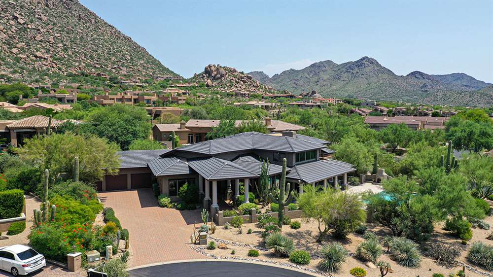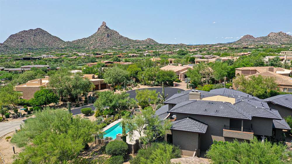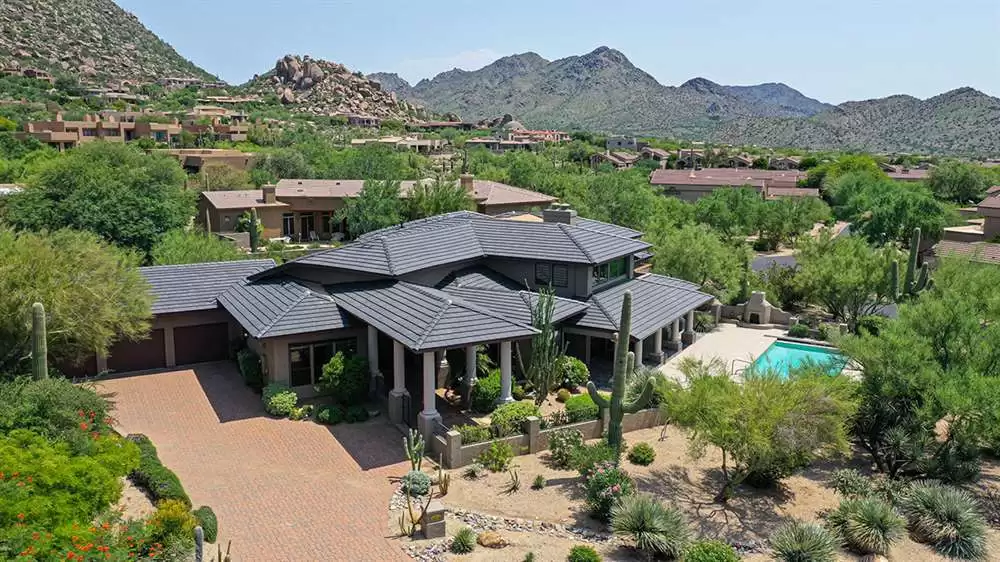 Troon Mountain sets the backdrop for this soft contemporary custom located in the guard-gated neighborhood of Windy Walk Estates at Troon Village. Conveniently located on a corner, cul-de-sac lot within walking distance to Troon Country Club, this home showcases a spacious floor plan with four bedrooms, private office, and four and a half baths.