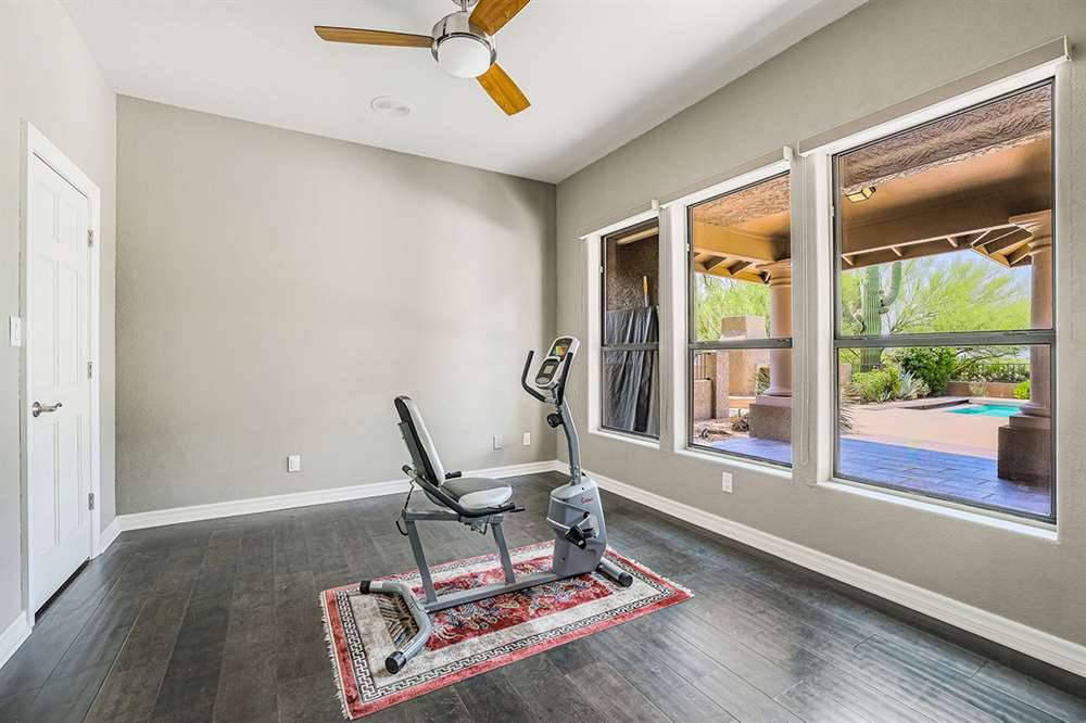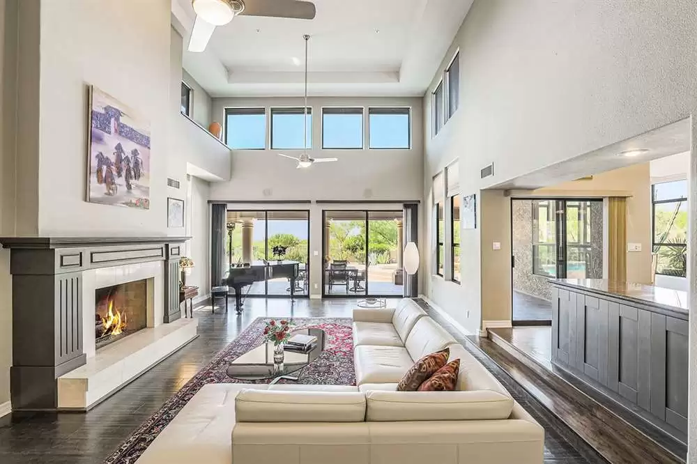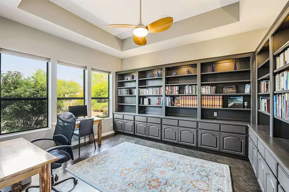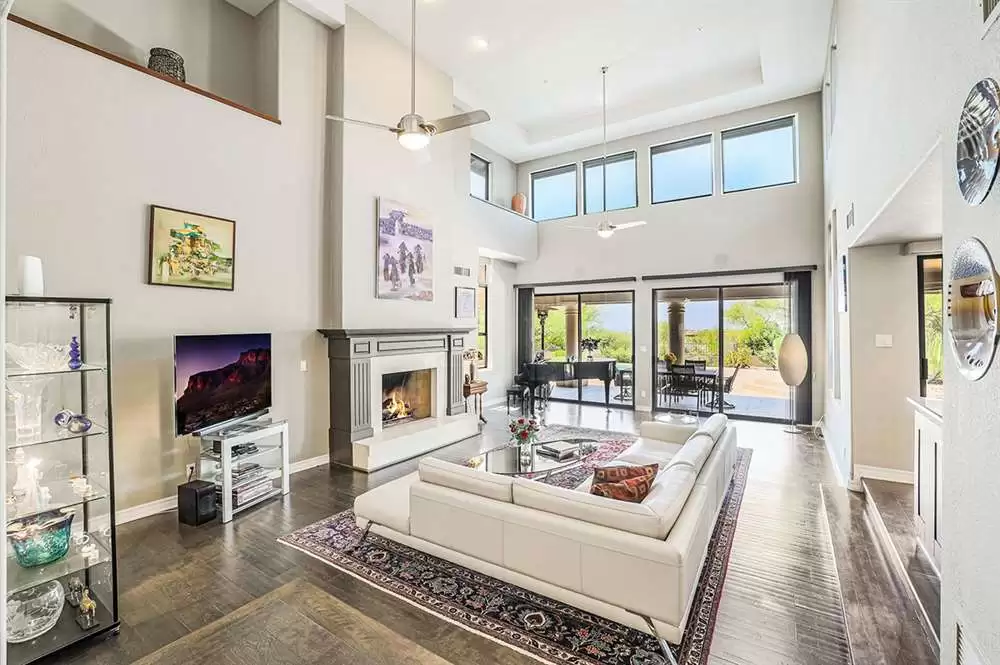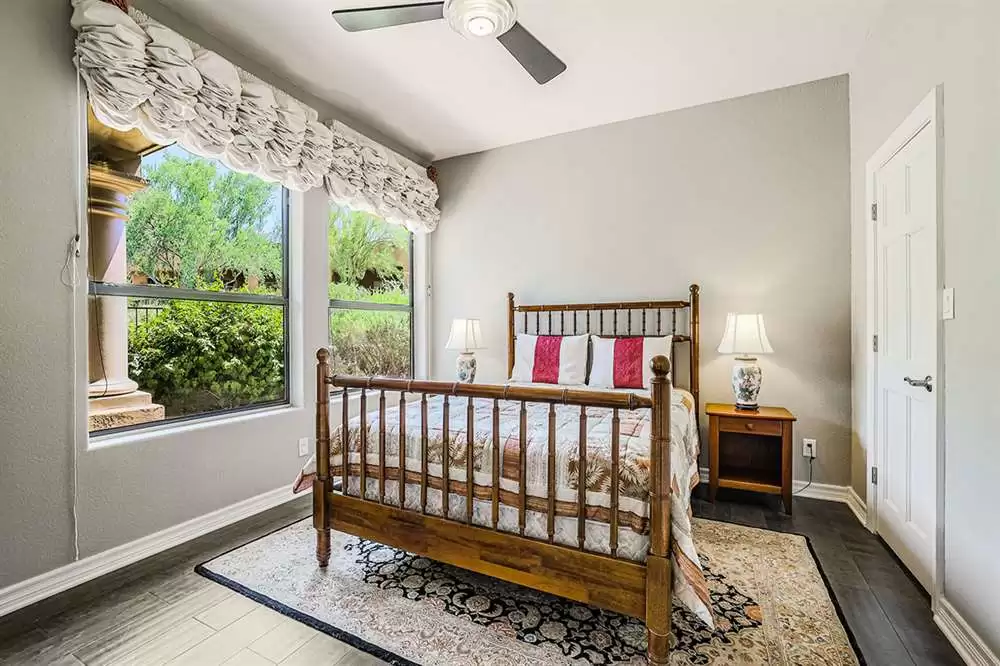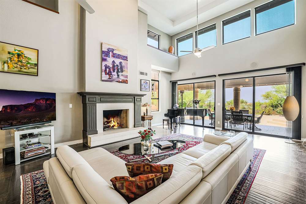 Troon Mountain sets the backdrop for this soft contemporary custom located in the guard-gated neighborhood of Windy Walk Estates at Troon Village. Conveniently located on a corner, cul-de-sac lot within walking distance to Troon Country Club, this home showcases a spacious floor plan with four bedrooms, private office, and four and a half baths.