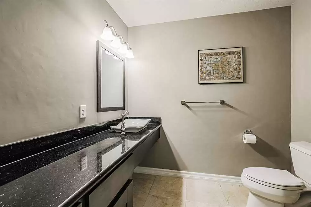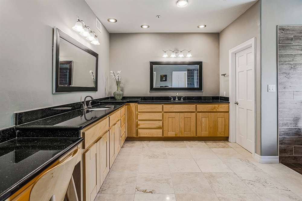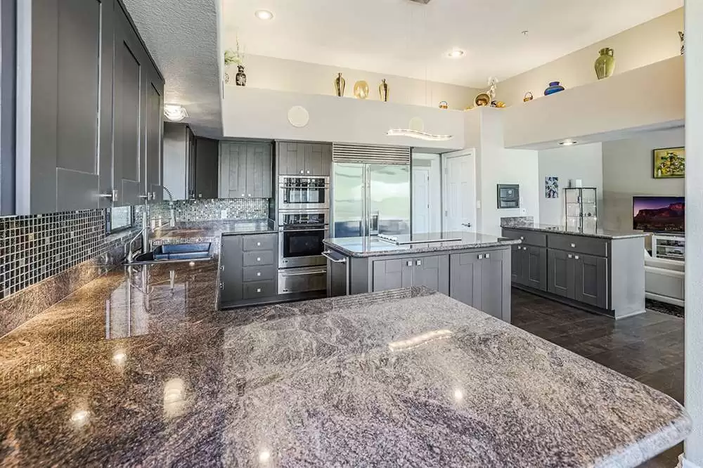 The upstairs is reserved for the private master suite with a remodeled large bath, two walk-in closets, separate shower and tub, and two balconies overlooking mountain, city and golf course views. The downstairs has three guest bedrooms, all ensuite with walk-in closets, and a large laundry with separate storage room with direct access to the three car over-height garage. Brand new concrete tile roof installed in April 2021, RO system in the kitchen, bathrooms remodeled in 2020, new exterior paint 2019, and electric sun shades.