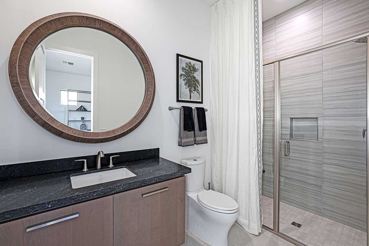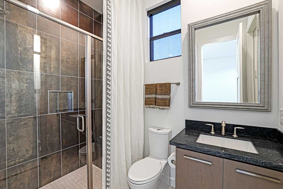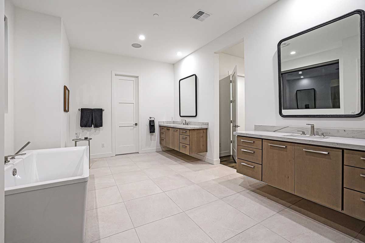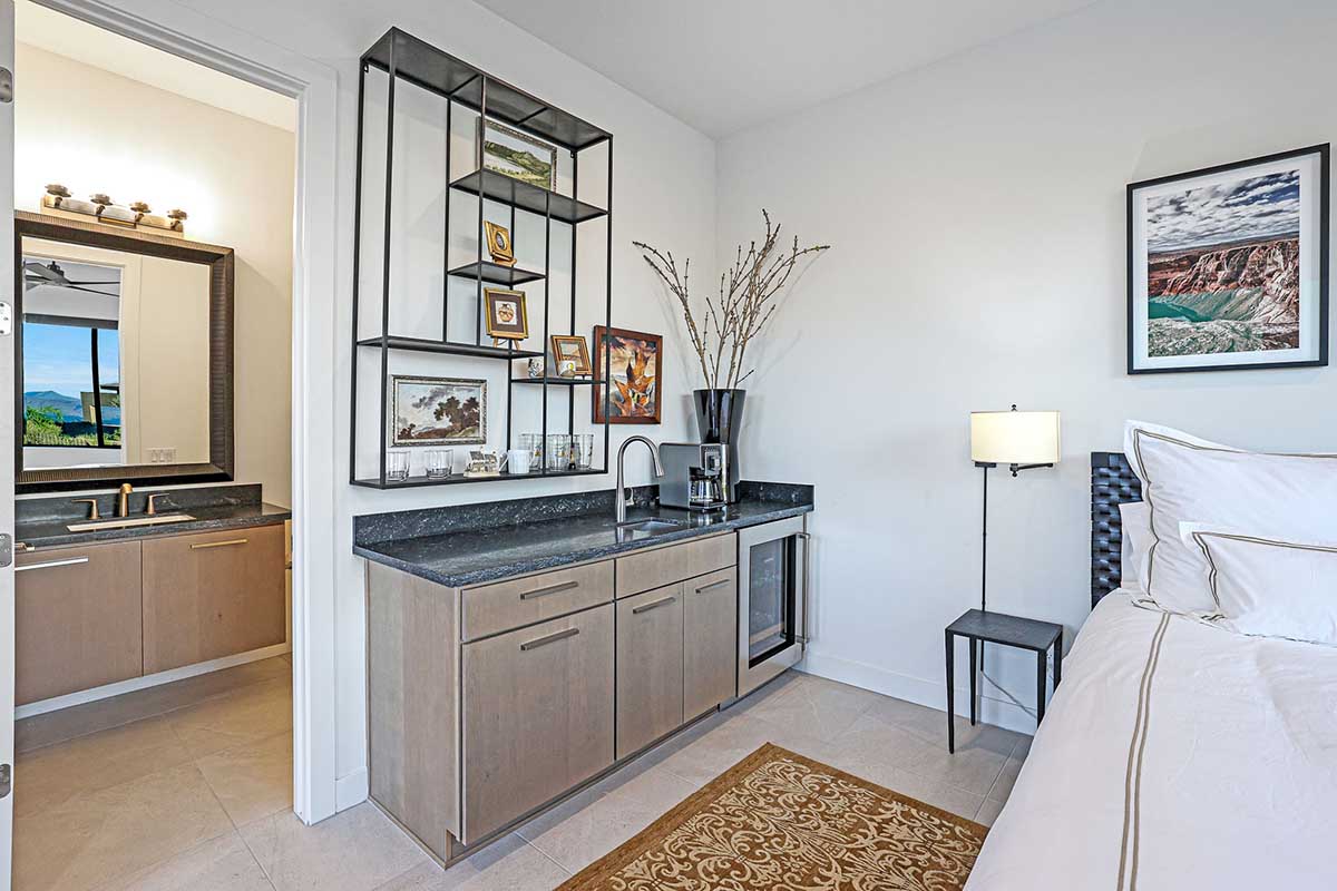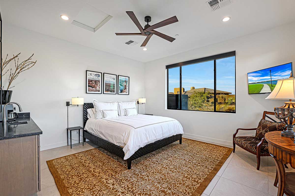 Upgraded flooring found in the home includes Arizona Tile Pietra Italia and Trim-West Provenza Volterra Castello wood in Maple. All five bedrooms are en suite including the attached casita with private entry and kitchenette. Bathrooms include upgraded toilets, designer fixtures, custom mirrors, quartz and granite counters, floating vanities, and upgraded tile at all showers.