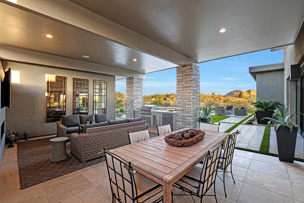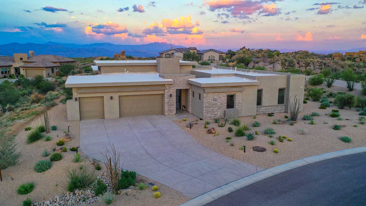 2021 built Toll Brothers home in gated Boulder Ranch is on arguably the best street in the neighborhood! Enjoy 360 degree views of the McDowell Mountains, Tom’s Thumb, Four Peaks, and Troon Mountain. The single level, great room floor plan is feature rich with extensive builder and owner upgrades throughout.