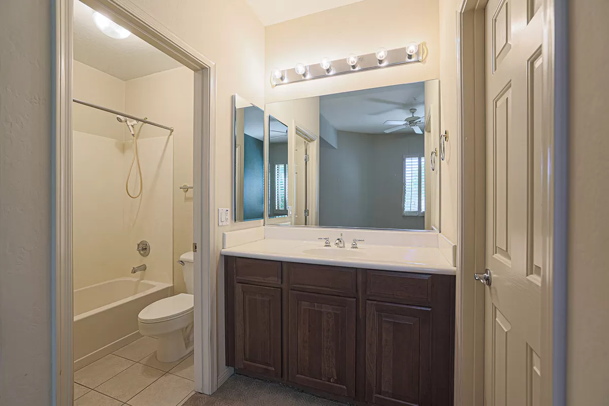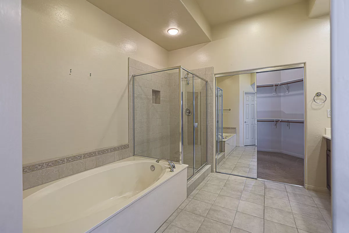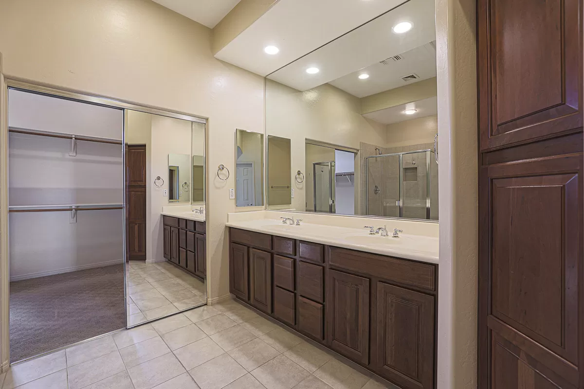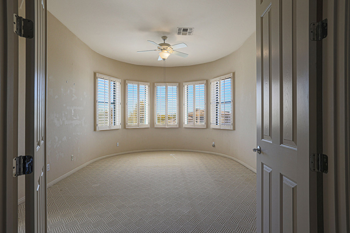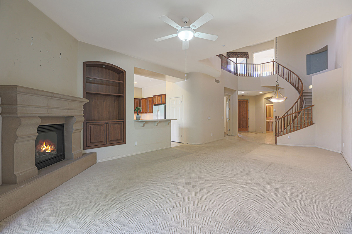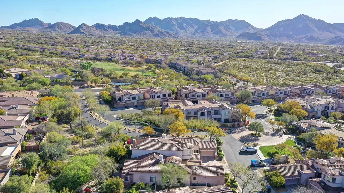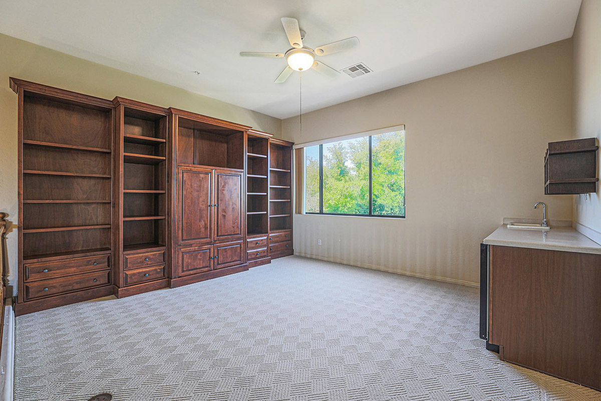 The upstairs has a loft with a wet bar overlooking the downstairs. The owners suite is spacious with a large bathroom featuring a separate shower and tub, dual sinks, and a large walk-in closet. The owner’s suite also has a private balcony with distant McDowell Mountain views. One more ensuite bedroom with a private balcony (3 total bedrooms) rounds out the upstairs.