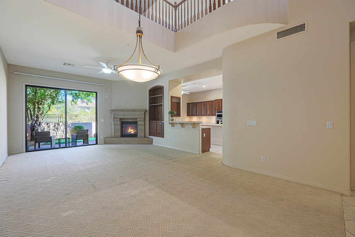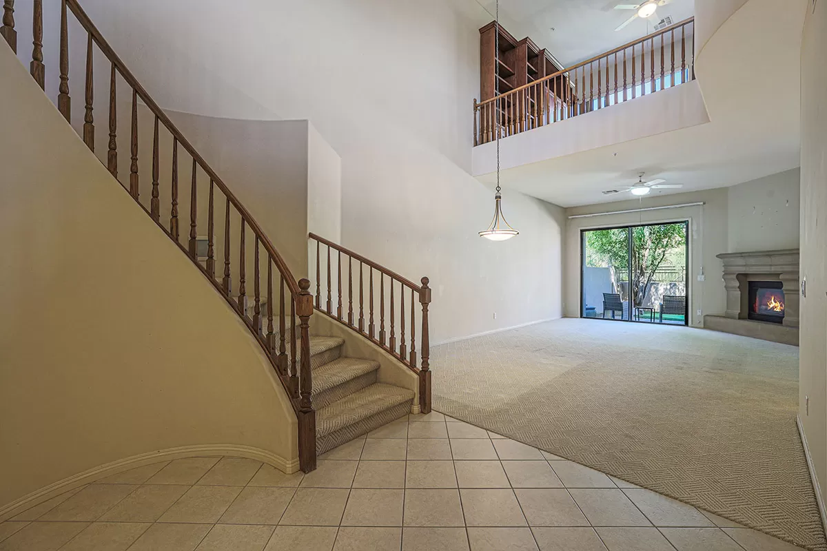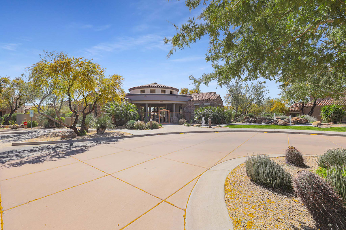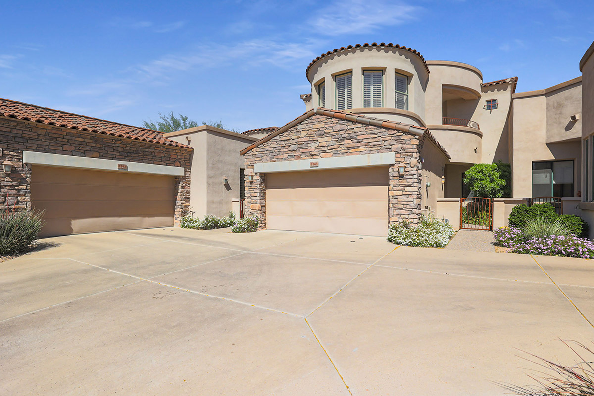 The first time on the market for this wonderful Cachet at Grayhawk townhome featuring just over 2,300 square feet. Located in a gated community and adjacent to the community clubhouse for easy access to the amenities including large sparkling pool, spa, covered patio and lounge areas, and a well-stocked workout facility. The exterior stacked stone accents, and entry courtyard greet you while accessing your direct entry two-car garage.