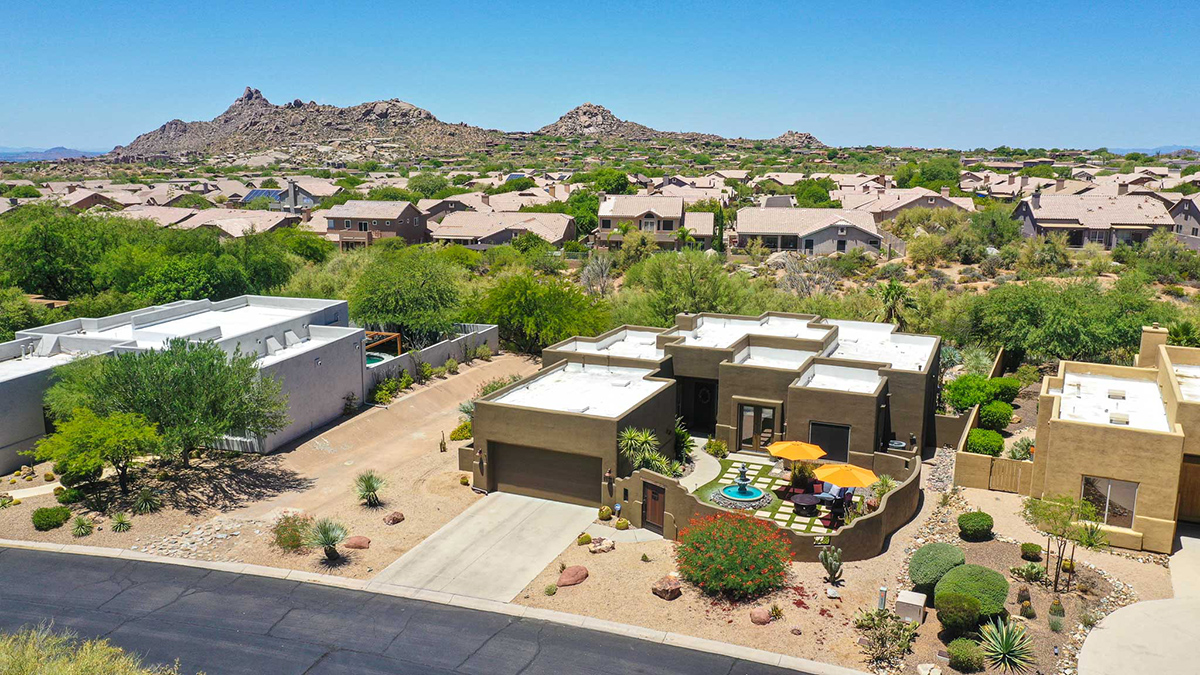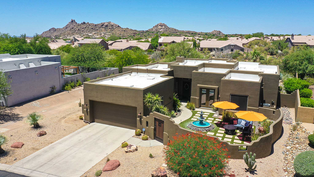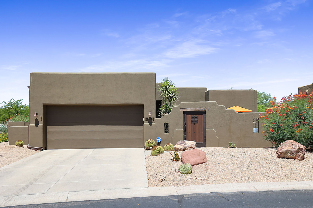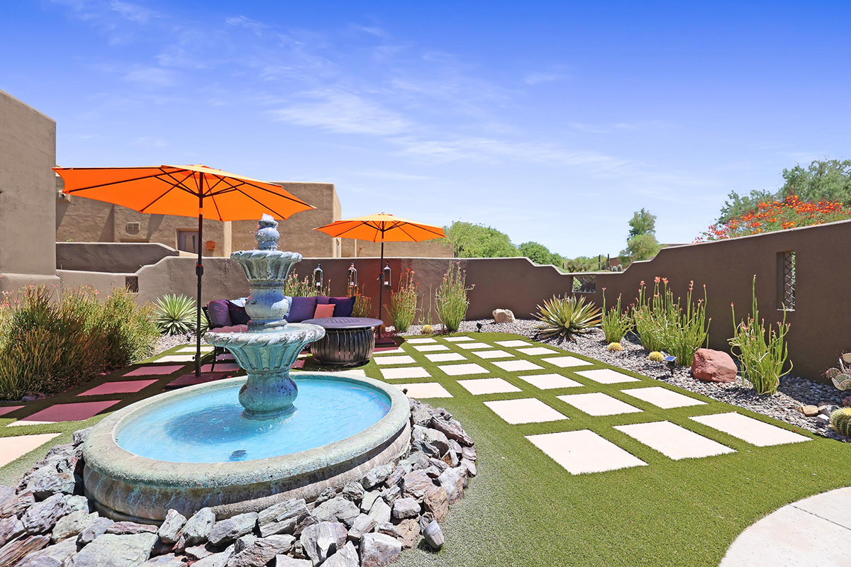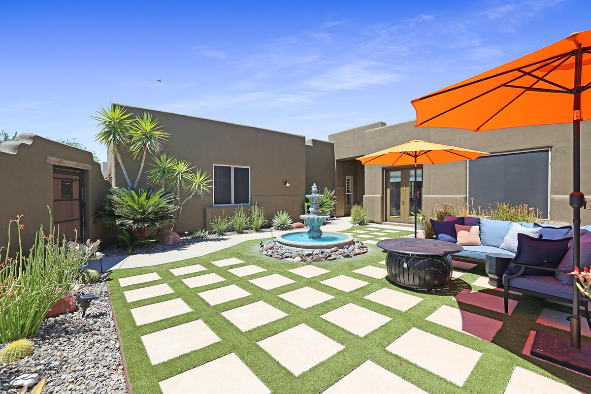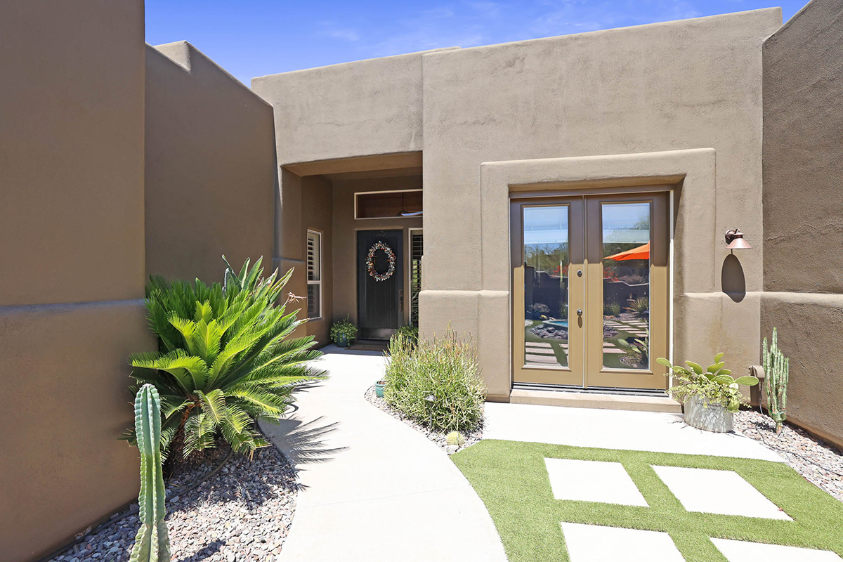 Welcome home to this wonderful modern Southwest style home in gated Desert Diamond in North Scottsdale. A private and serene setting greets you at the gated courtyard creating a private front yard setting with artificial turf, soothing water fountain, lounge seating and entry points to the front door as well as the den/office.