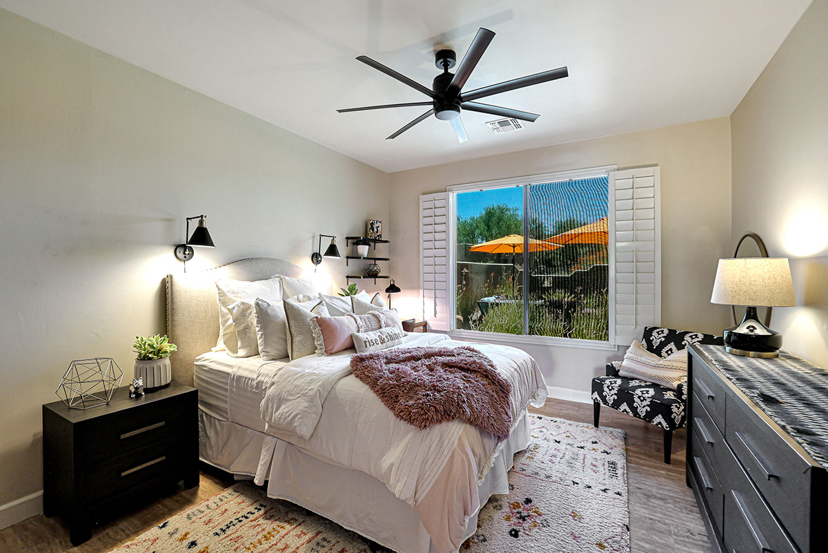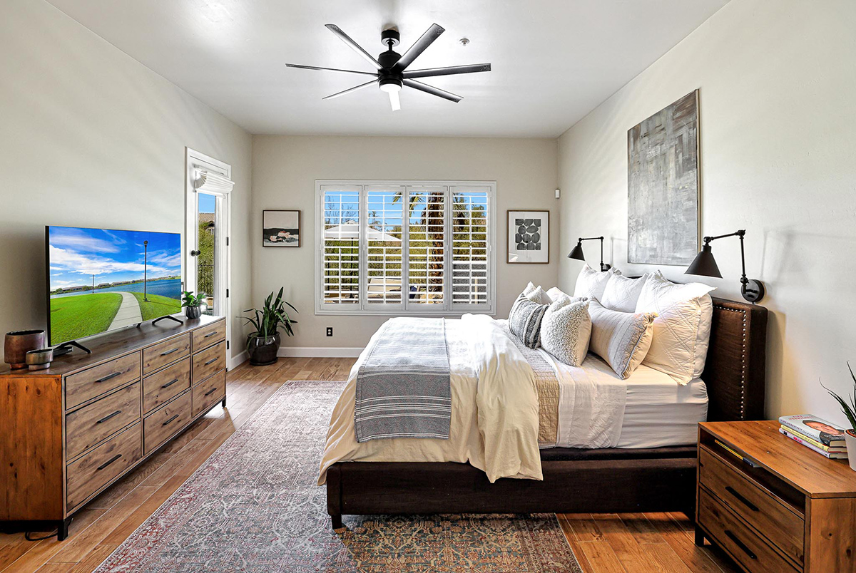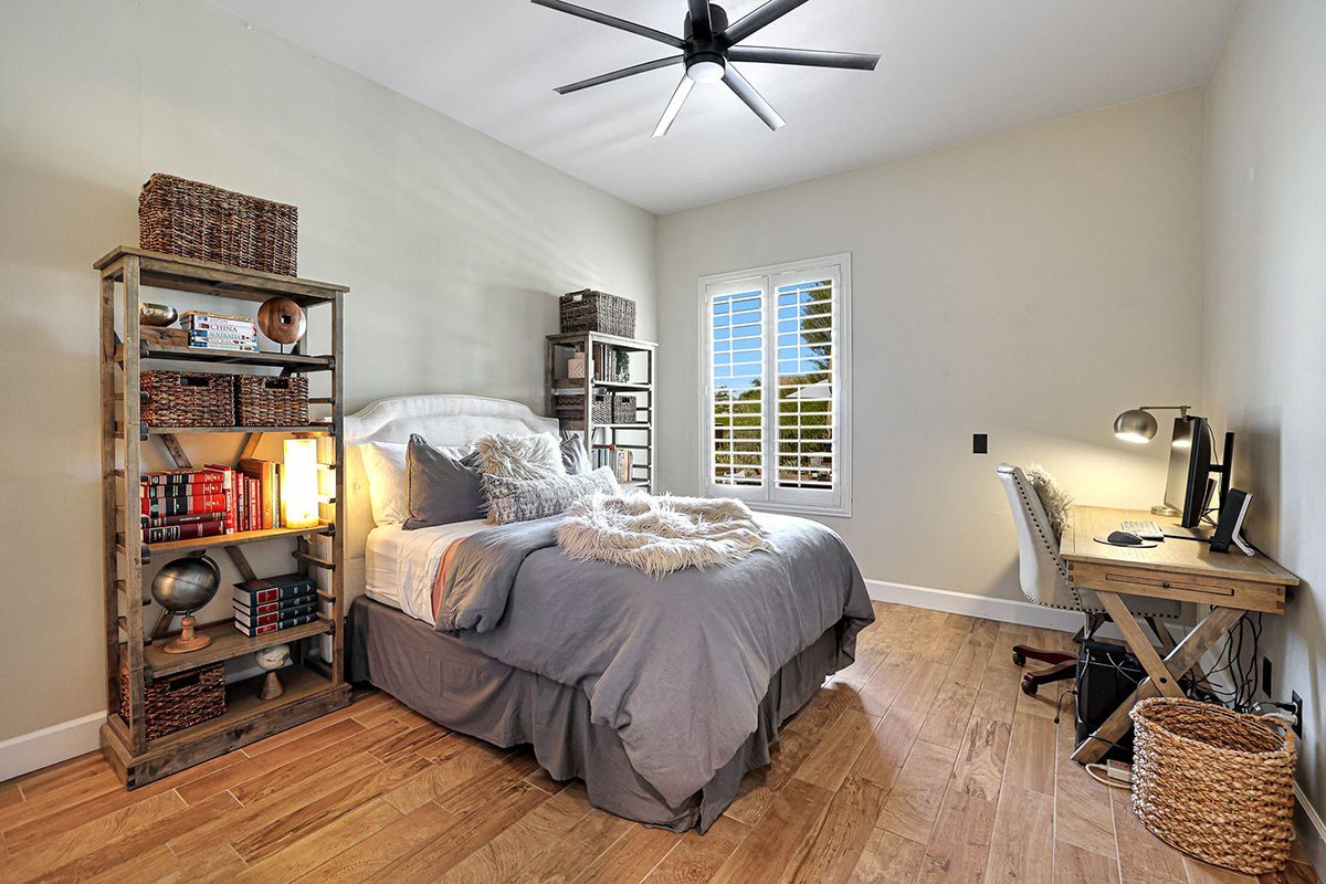 Other features include: plantation shutters throughout; upgraded light fixtures and ceiling fans; large laundry with additional cabinet space; two-car garage; wood and tile floors throughout; wood-stained doors throughout; neutral two-toned paint scheme; stone countertops; and so much more!