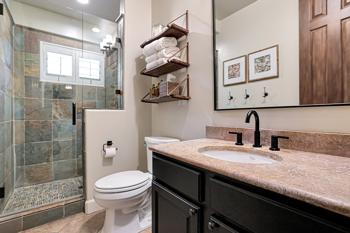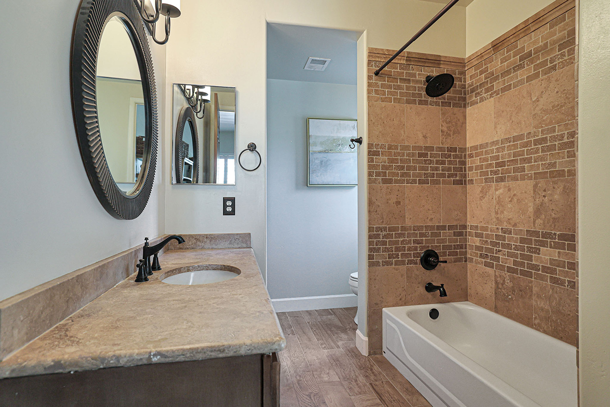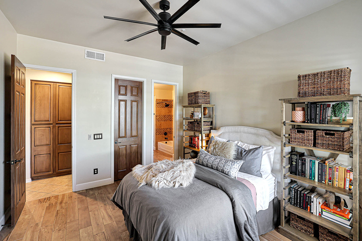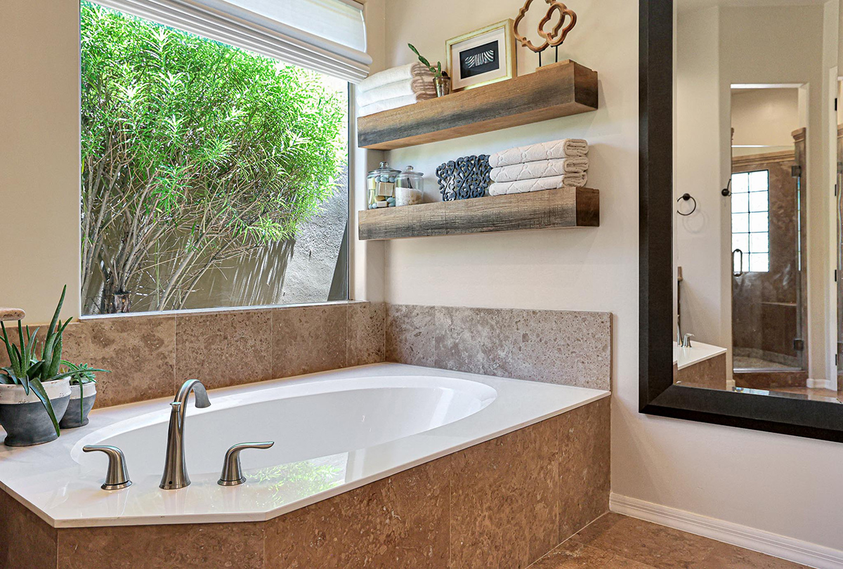 Other interior spaces include three bedrooms and three bathrooms total and a den which could easily be used as a flex space for an office or formal dining room. A master bedroom with exterior access and a master bath suite which includes a walk-in closet, private water closet, dual vanities, large soaking tub and a walk-in shower. The junior master suite is split from the other bedrooms and has an ensuite bathroom. The third guest room is adjacent to the hall bathroom.