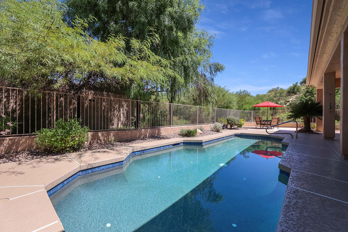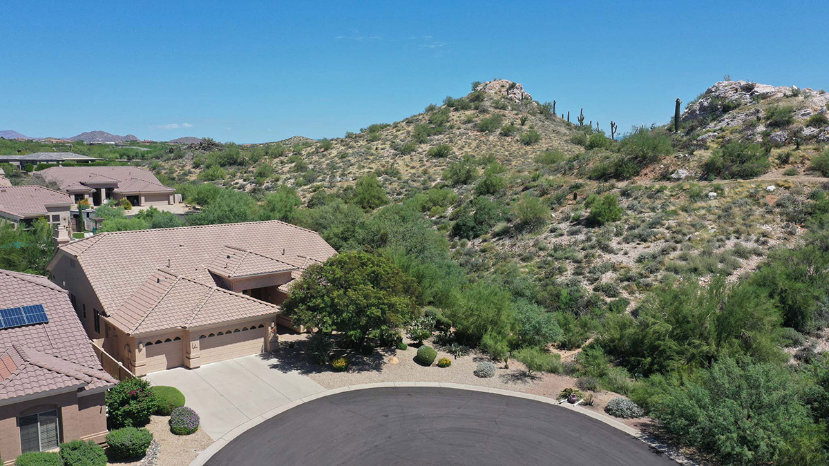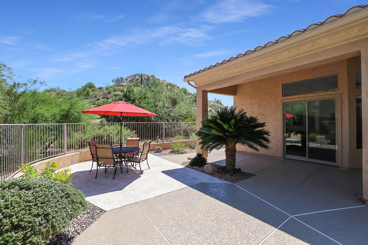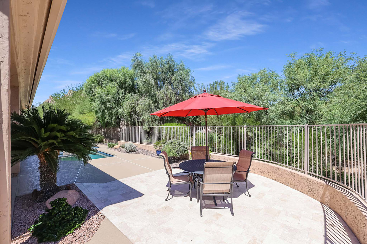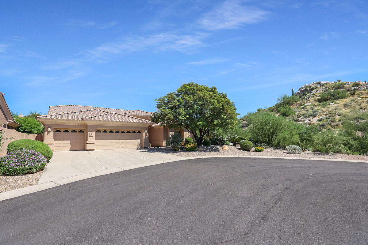 Premium location with views! This Centex built home in Dorado at Troon Village is tucked away on a private cul-de-sac with elevated lot positioning for views of Troon Mountain, McDowell Mountains and Tom’s Thumb! The backyard has a private feel with NAOS on both the North and East sides of the property including a natural Quartz mountain hill top. Enjoy the North/South exposure from the sparkling pool, large covered patio, and lounge/dining deck spaces.