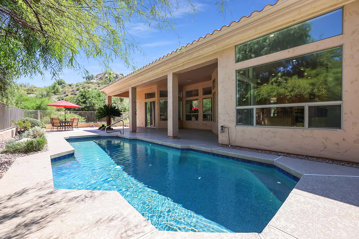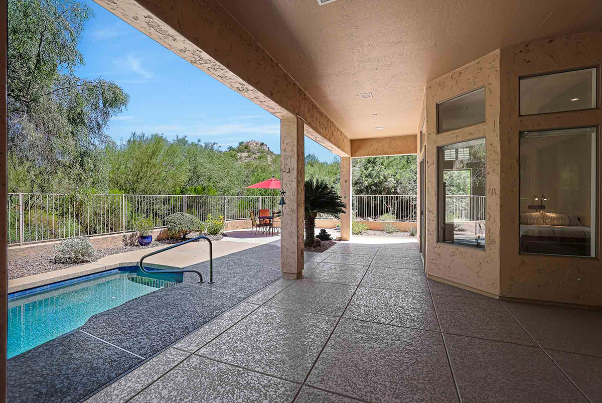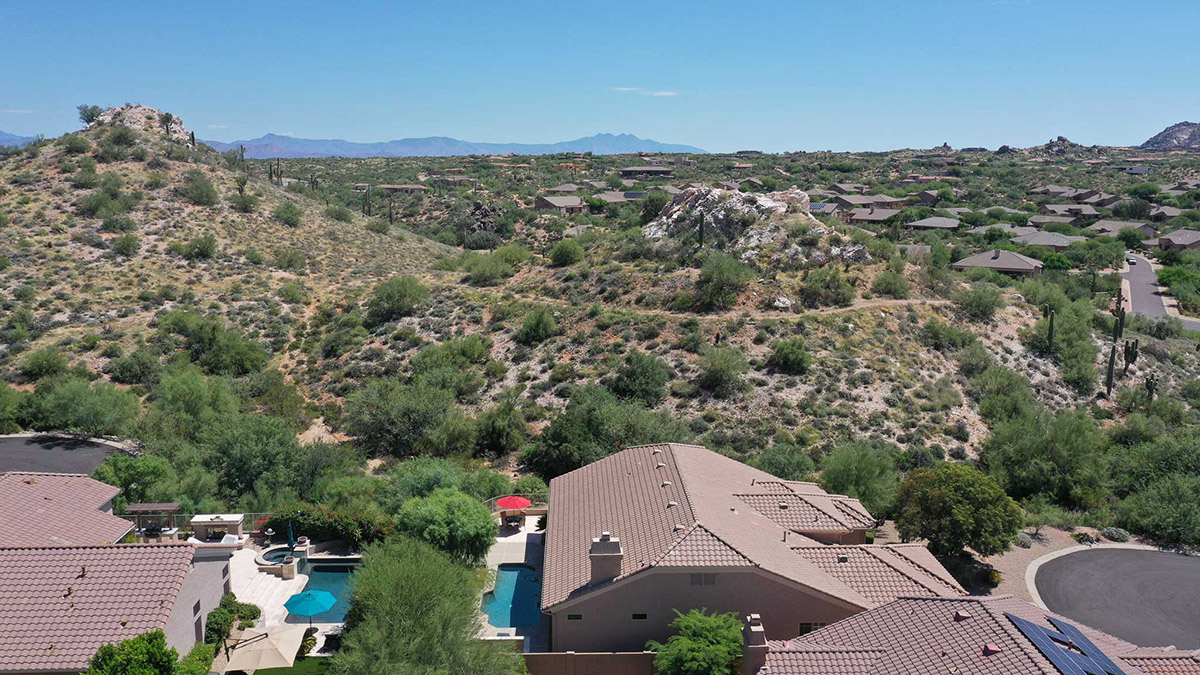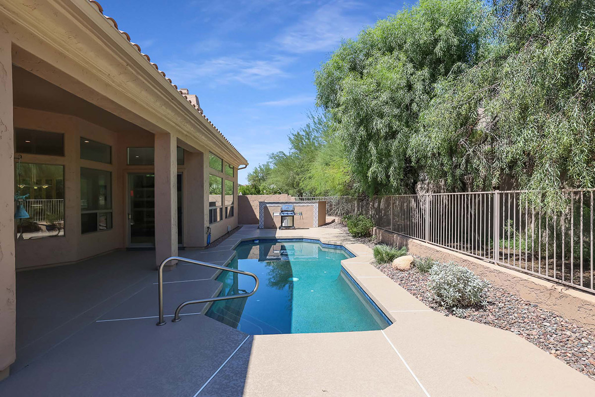Premium location with views! This Centex built home in Dorado at Troon Village is tucked away on a private cul-de-sac with elevated lot positioning for views of Troon Mountain, McDowell Mountains and Tom’s Thumb! The backyard has a private feel with NAOS on both the North and East sides of the property including a natural Quartz mountain hill top. Enjoy the North/South exposure from the sparkling pool, large covered patio, and lounge/dining deck spaces.