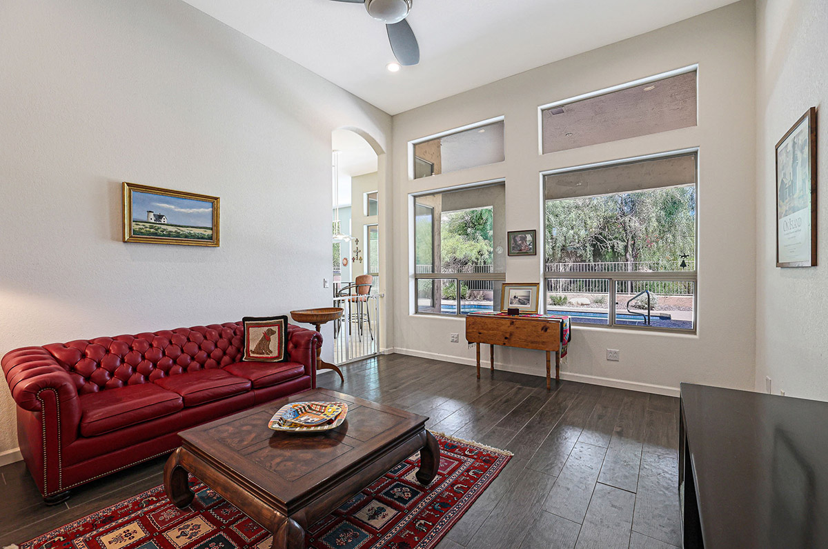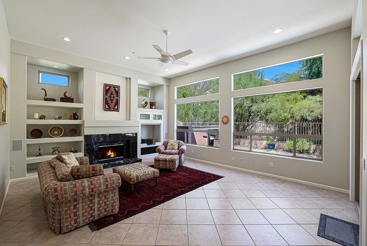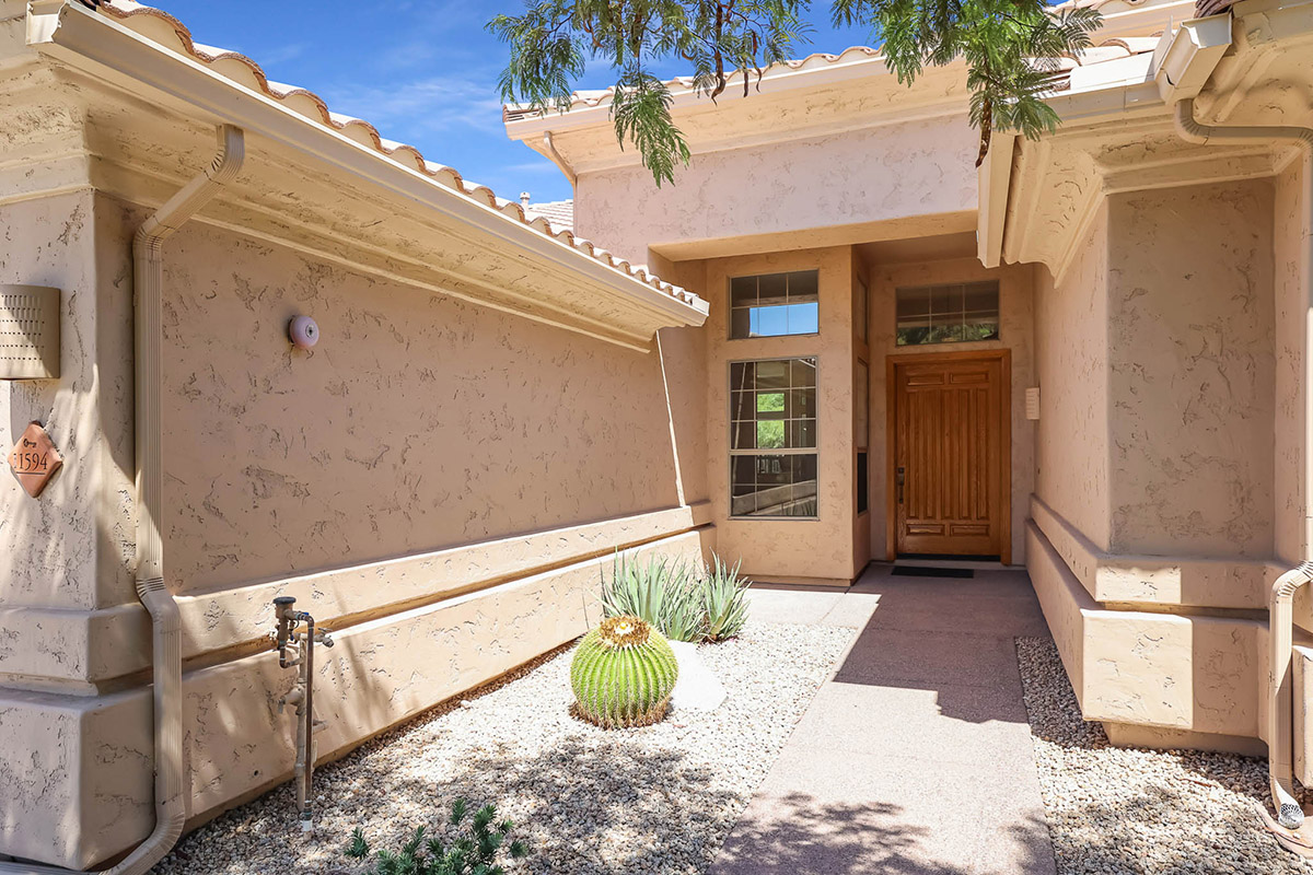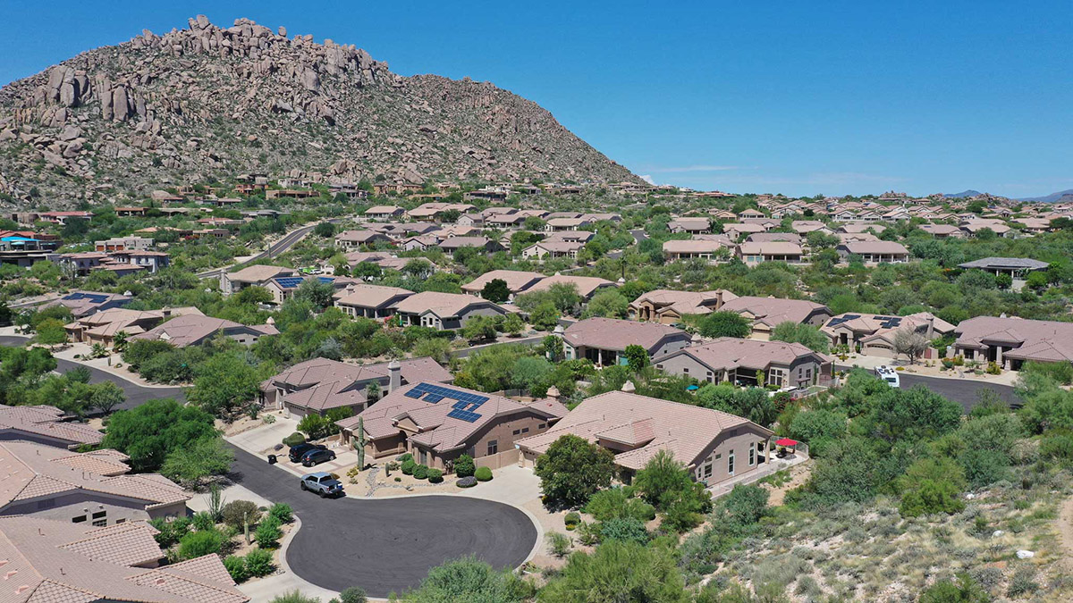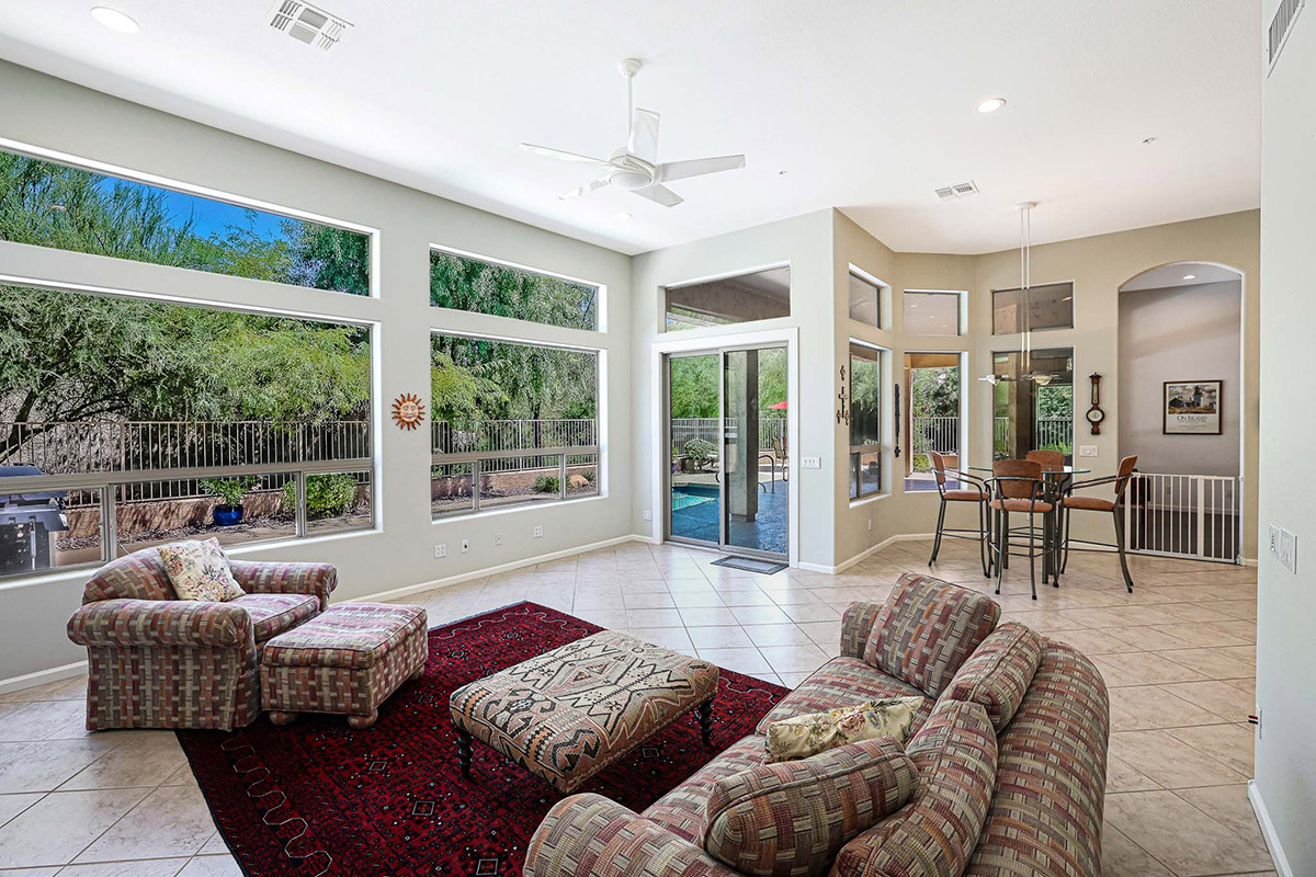 Premium location with views! This Centex built home in Dorado at Troon Village is tucked away on a private cul-de-sac with elevated lot positioning for views of Troon Mountain, McDowell Mountains and Tom’s Thumb! The backyard has a private feel with NAOS on both the North and East sides of the property including a natural Quartz mountain hill top. Enjoy the North/South exposure from the sparkling pool, large covered patio, and lounge/dining deck spaces.