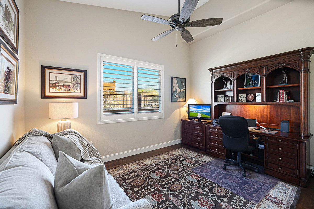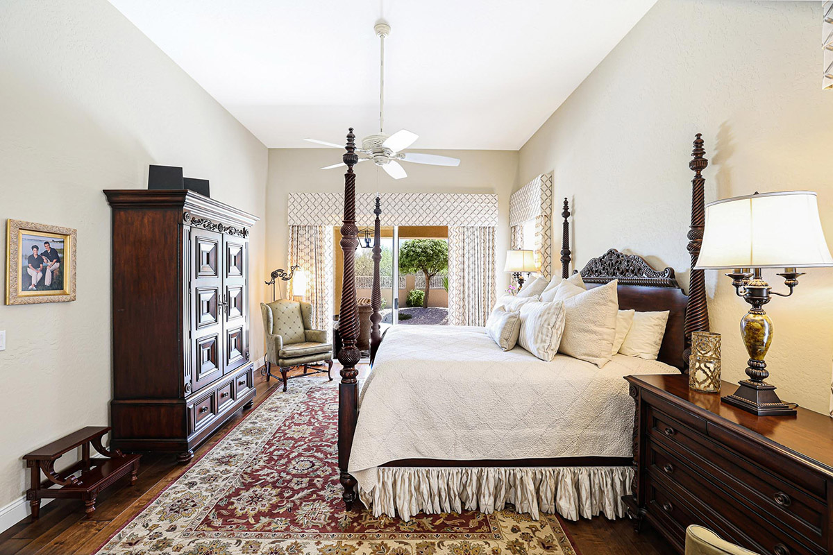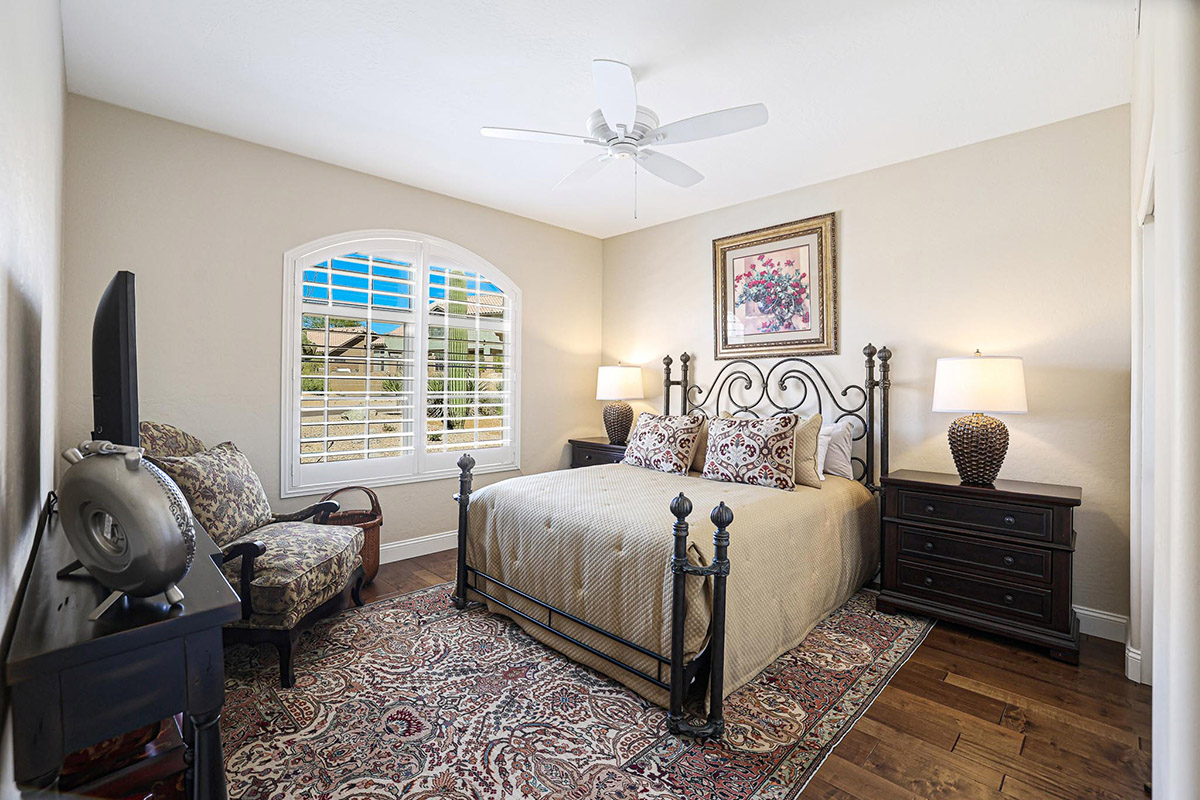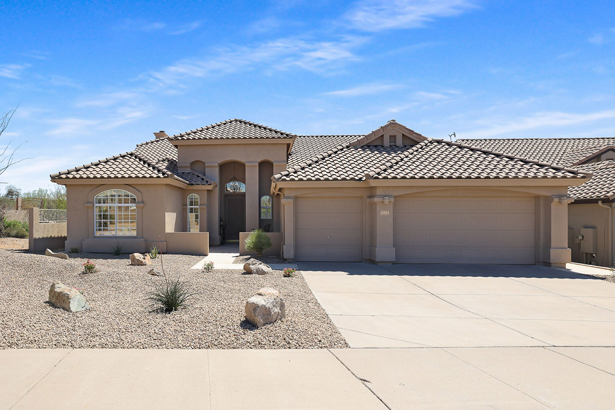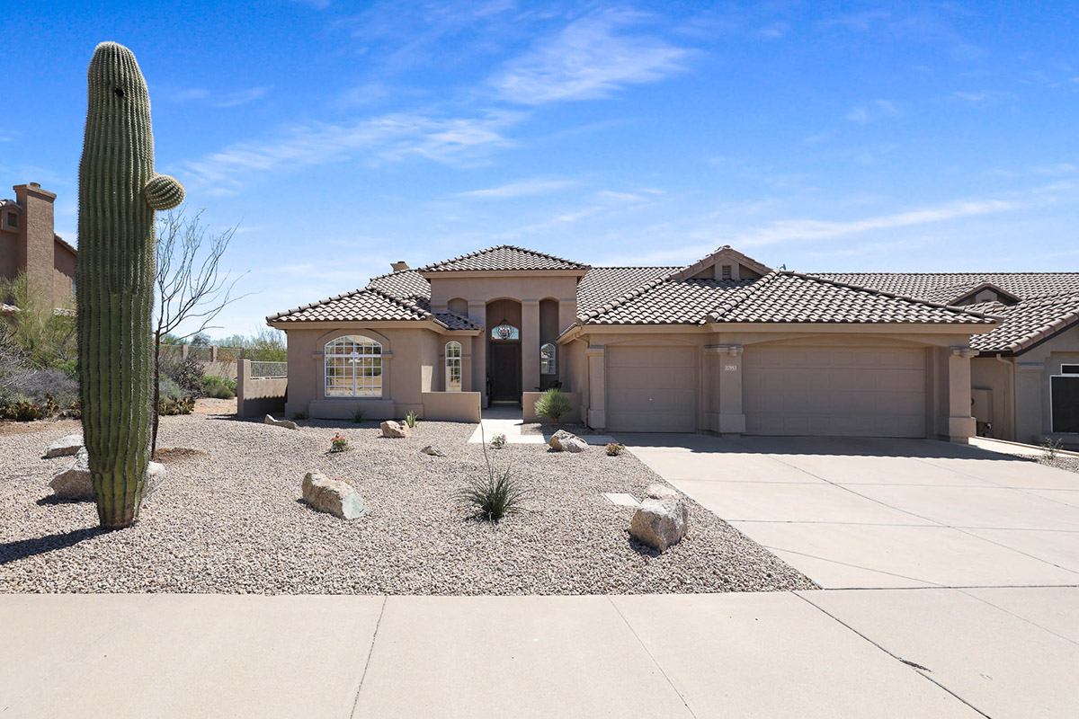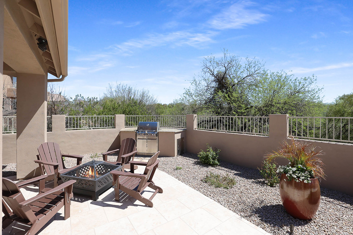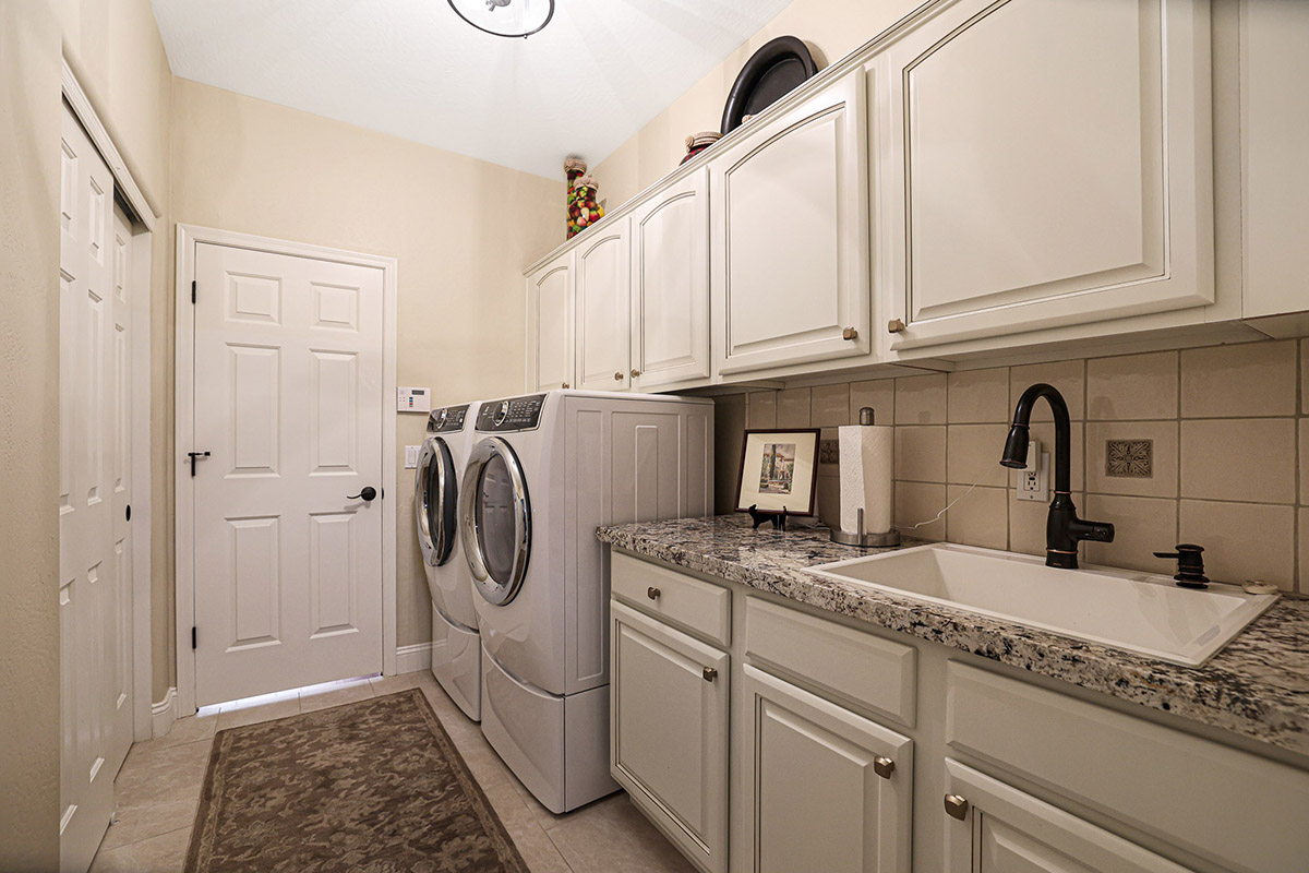 Outside you will find custom travertine pathways and patios, a soothing water feature, built-in barbecue, covered areas for dining, and easy maintenance landscaping. Other features include: automatic interior shades and plantation shutters, nice sized laundry with sink and two storage closets; three car garage; stone counters; 2020 HVAC unit; and so much more!