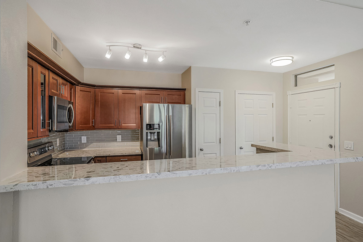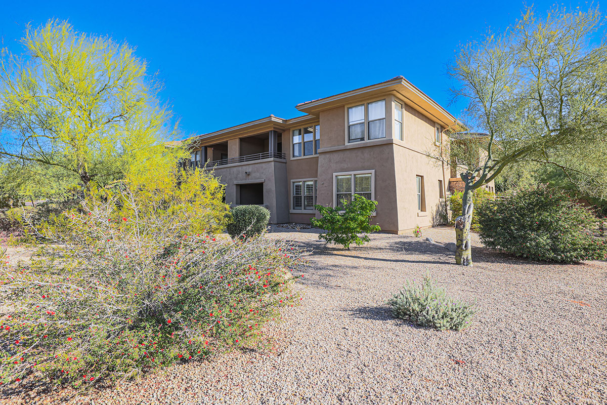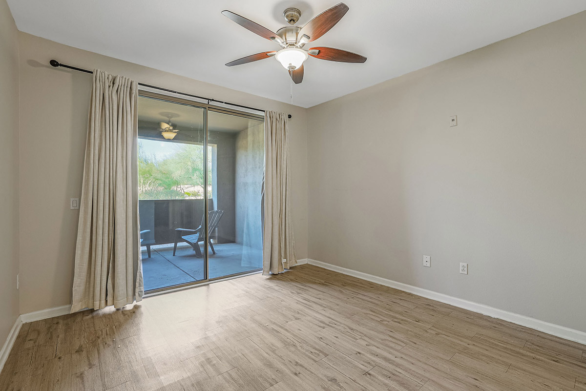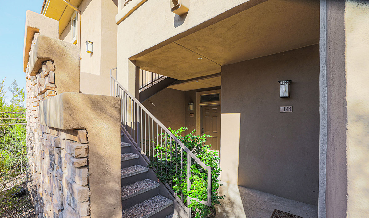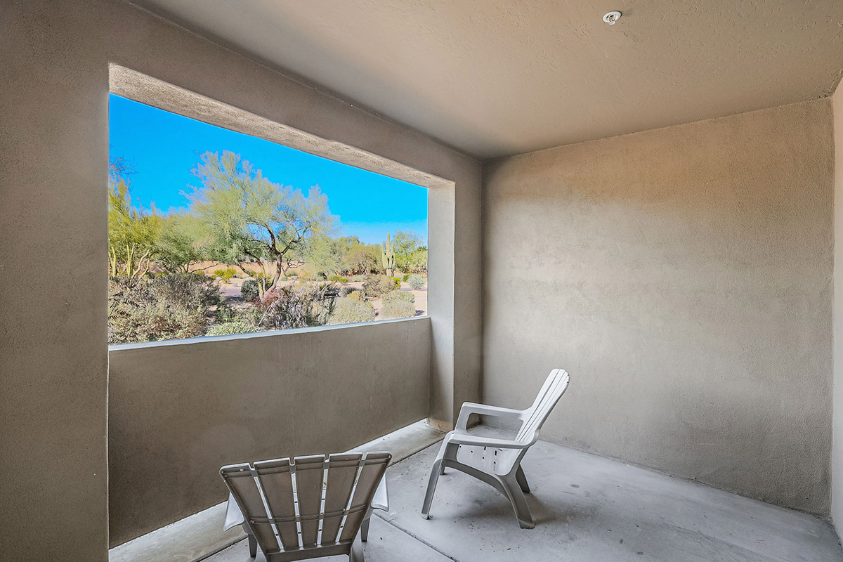 Perfect lock-n-leave or easy maintenance living in gated Grayhawk that’s move-in ready! Remodeled to a modern design in 2016, this two bedroom, two bath condo is a ground floor, end-unit with no stairs. The kitchen features on-trend finishes with beautiful quartz counters, stainless steel appliances, subway tile backsplash, soft close cabinet doors and drawers, pantry, and a bar top seating area.