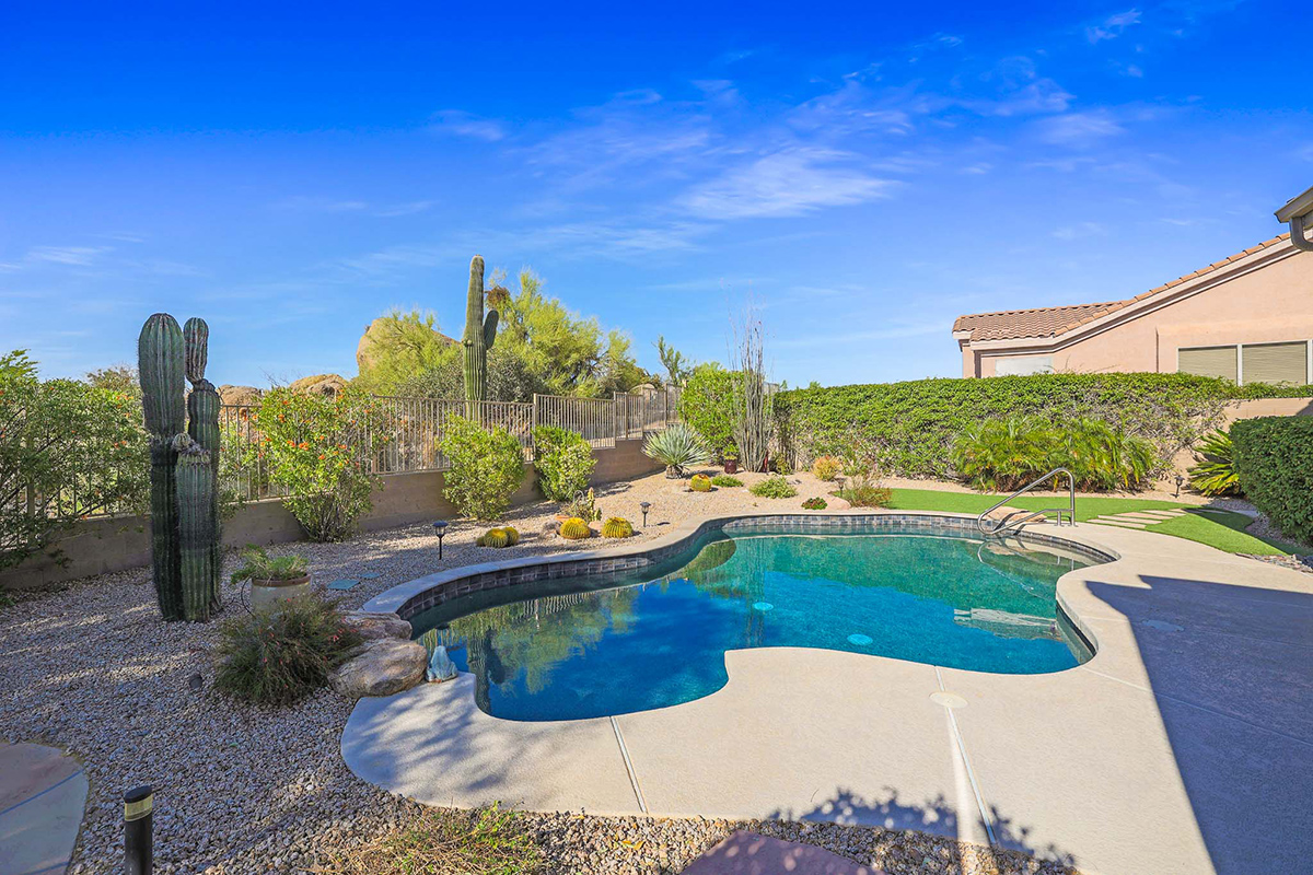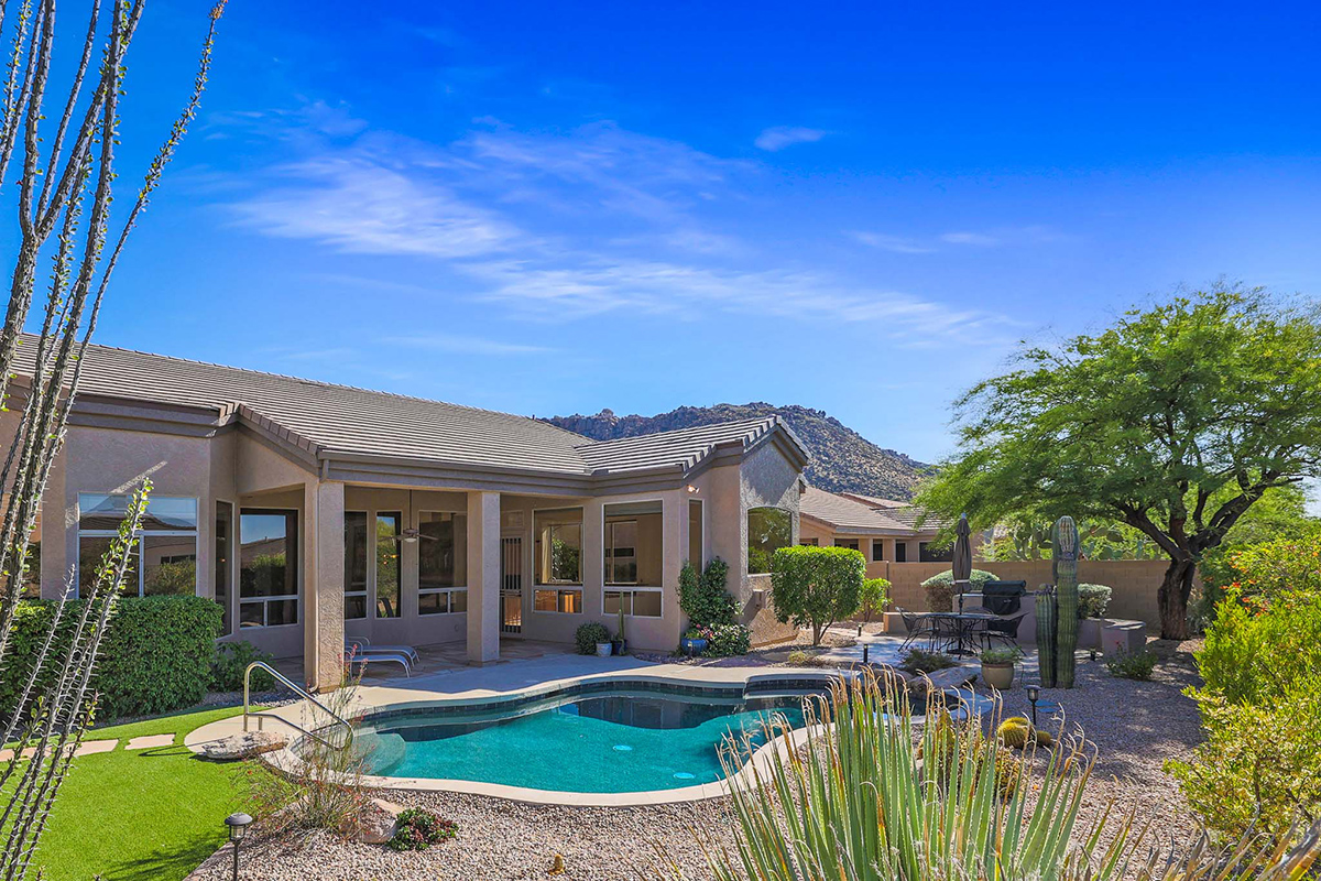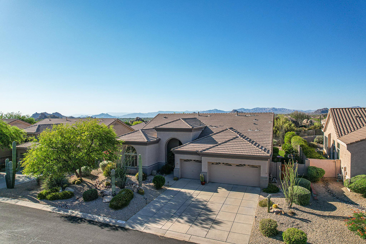 First time on the market! This lovingly maintained and meticulously cared for home is ready for its new owners. Located in Four Peaks at Troon Village, the elevated lot is located on a cul-de-sac and has up-close views of Troon Mountain and distant views of Four Peaks and McDowell Mountains. A well laid out 2,248 square foot split floor plan built by Shea Homes features three bedrooms, a private office/den, two bathrooms and well sized living spaces. Roof work completed in 2017 includes new underlayment, new LED interior lighting and a new water heater was installed in 2021.