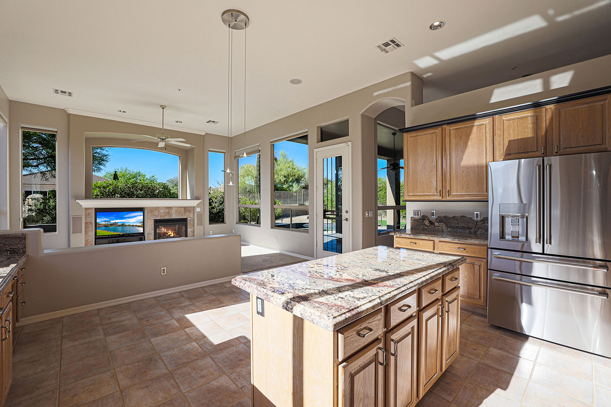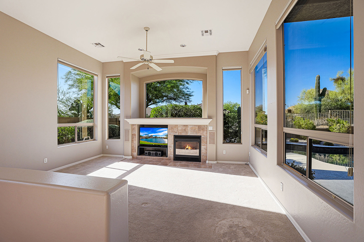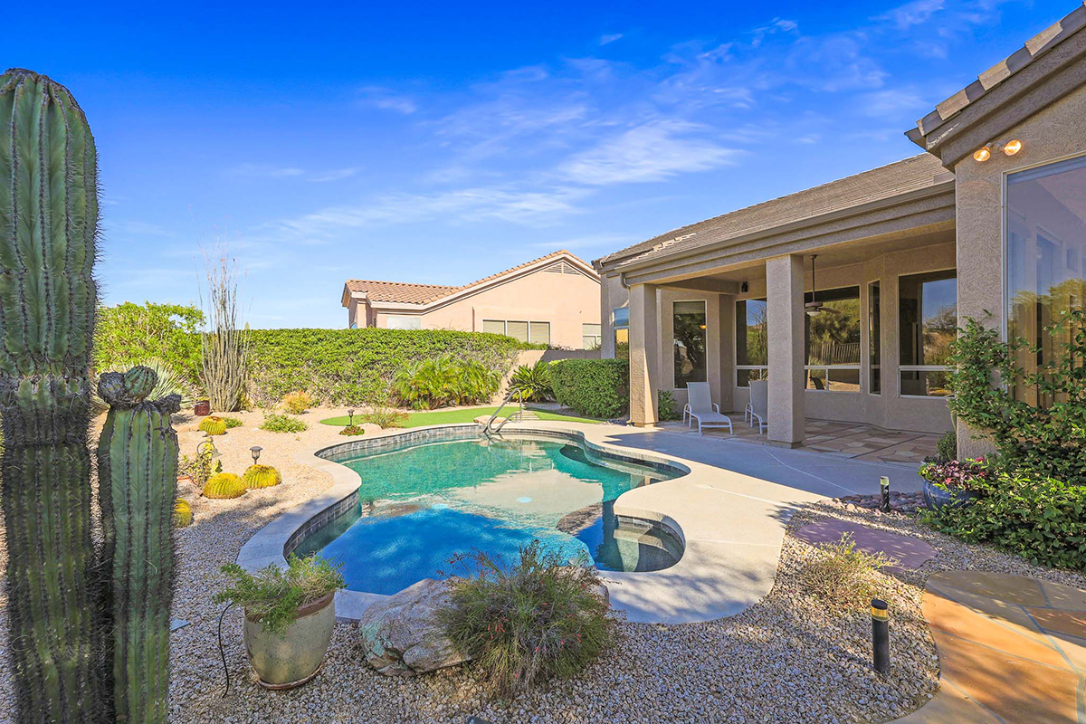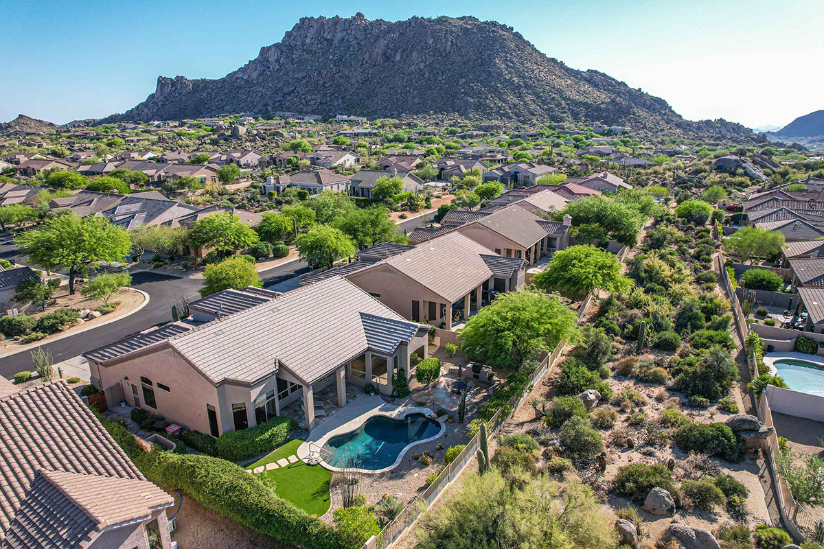 First time on the market! This lovingly maintained and meticulously cared for home is ready for its new owners. Located in Four Peaks at Troon Village, the elevated lot is located on a cul-de-sac and has up-close views of Troon Mountain and distant views of Four Peaks and McDowell Mountains. A well laid out 2,248 square foot split floor plan built by Shea Homes features three bedrooms, a private office/den, two bathrooms and well sized living spaces. Roof work completed in 2017 includes new underlayment, new LED interior lighting and a new water heater was installed in 2021.