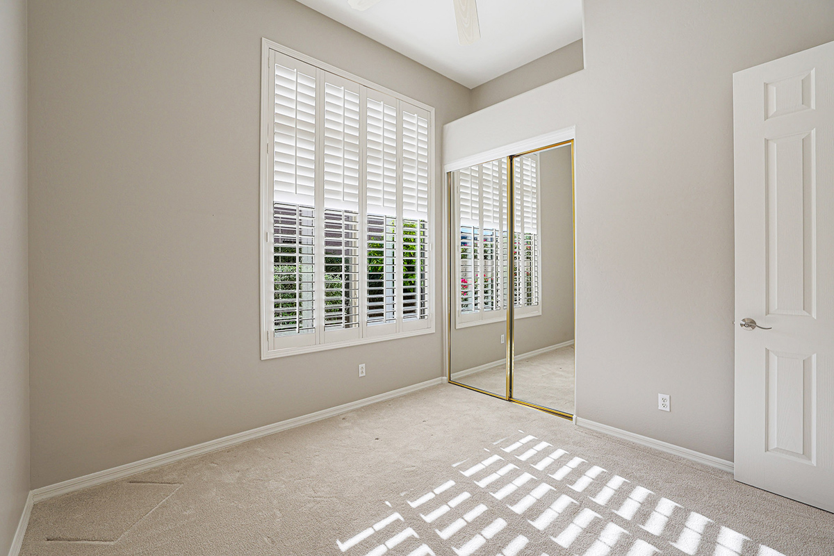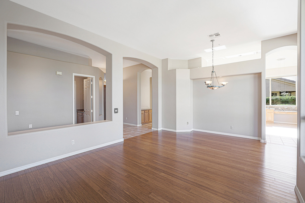 The backyard has mature landscaping including established flowering plants and citrus trees along with easy care artificial turf, a sparkling pool with new pebbletec, new tile, and new cleaning system in 2021, built-in barbecue and large covered patio. The master bedroom is generously sized with an ensuite bath including a walk-in closet, separate shower and soaking tub, and dual vanities. The formal living and dining space has bamboo wood flooring and large picture windows overlooking the backyard.