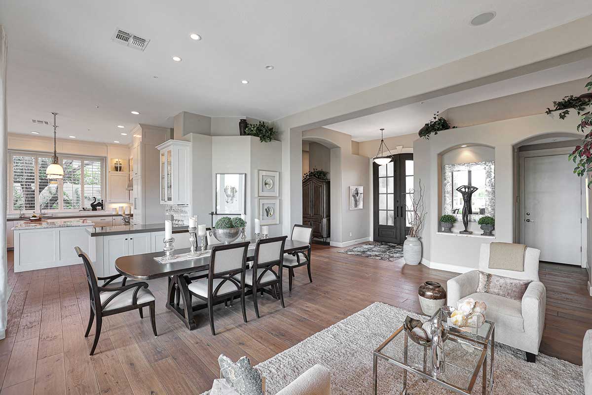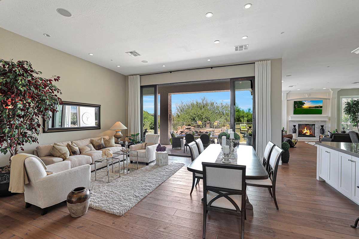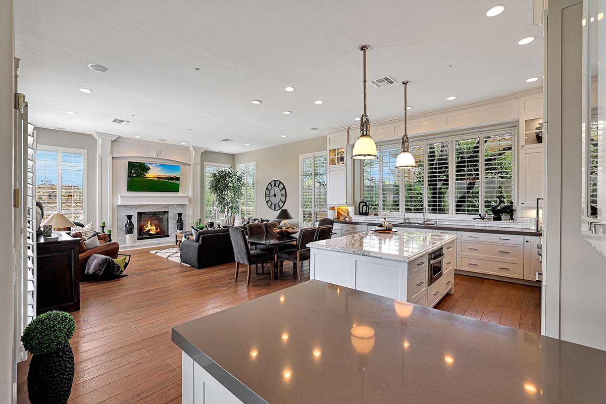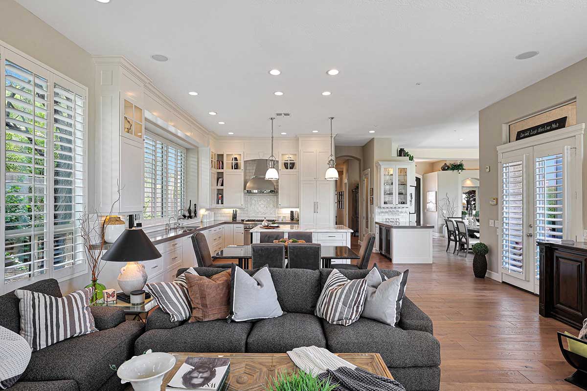 Completely remodeled with no detail overlooked, this over 2,700 square foot home showcases a great room floor plan perfect for entertaining with highly upgraded, timeless finishes throughout. The remodel included removal of walls and windows and the addition of 10 foot sliding doors for seamless entertainment both inside and out. Engineered wood flooring can be found throughout. Upon entry, take note of the 10 foot double entry steel and venting glass front doors.