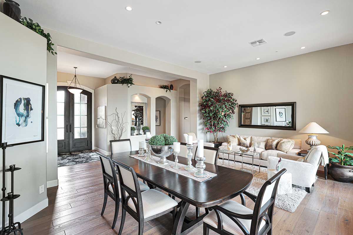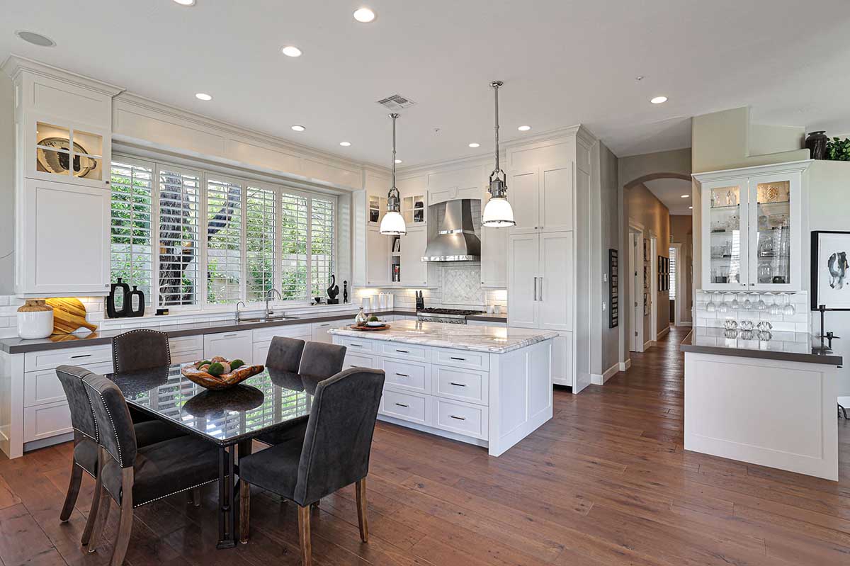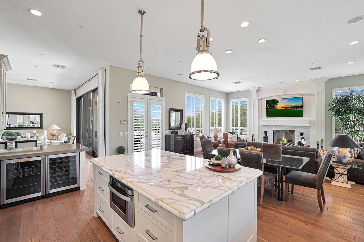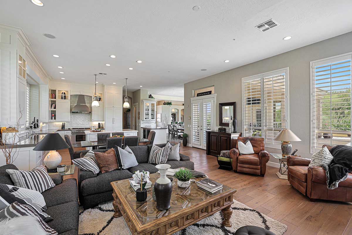 Completely remodeled with no detail overlooked, this over 2,700 square foot home showcases a great room floor plan perfect for entertaining with highly upgraded, timeless finishes throughout. The remodel included removal of walls and windows and the addition of 10 foot sliding doors for seamless entertainment both inside and out. Engineered wood flooring can be found throughout. Upon entry, take note of the 10 foot double entry steel and venting glass front doors.