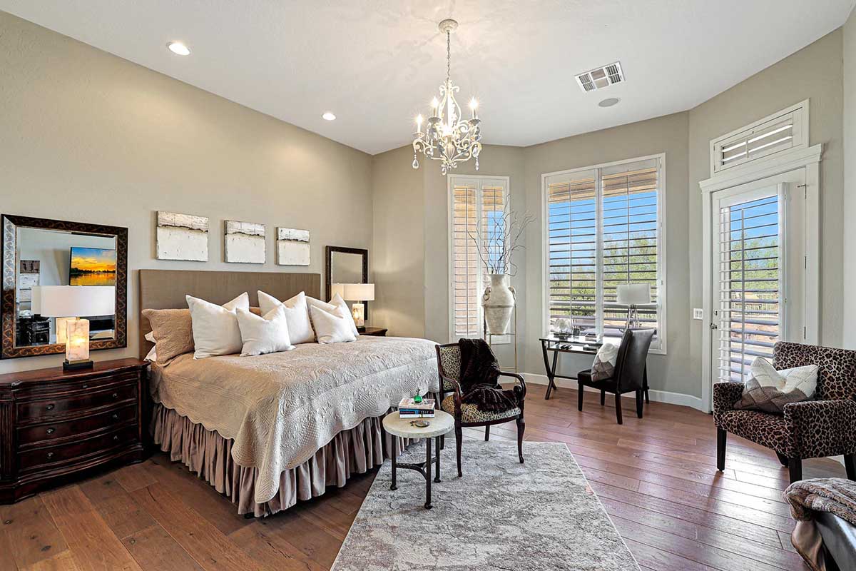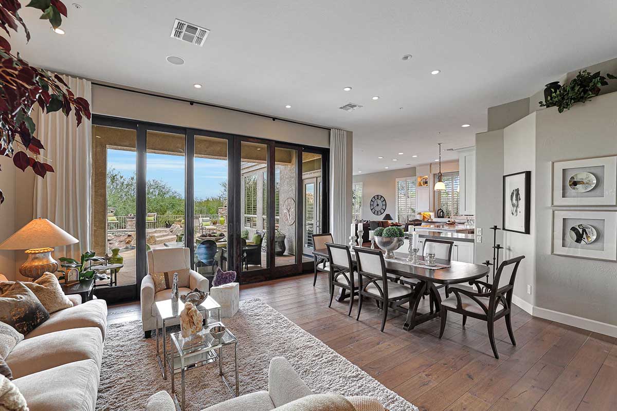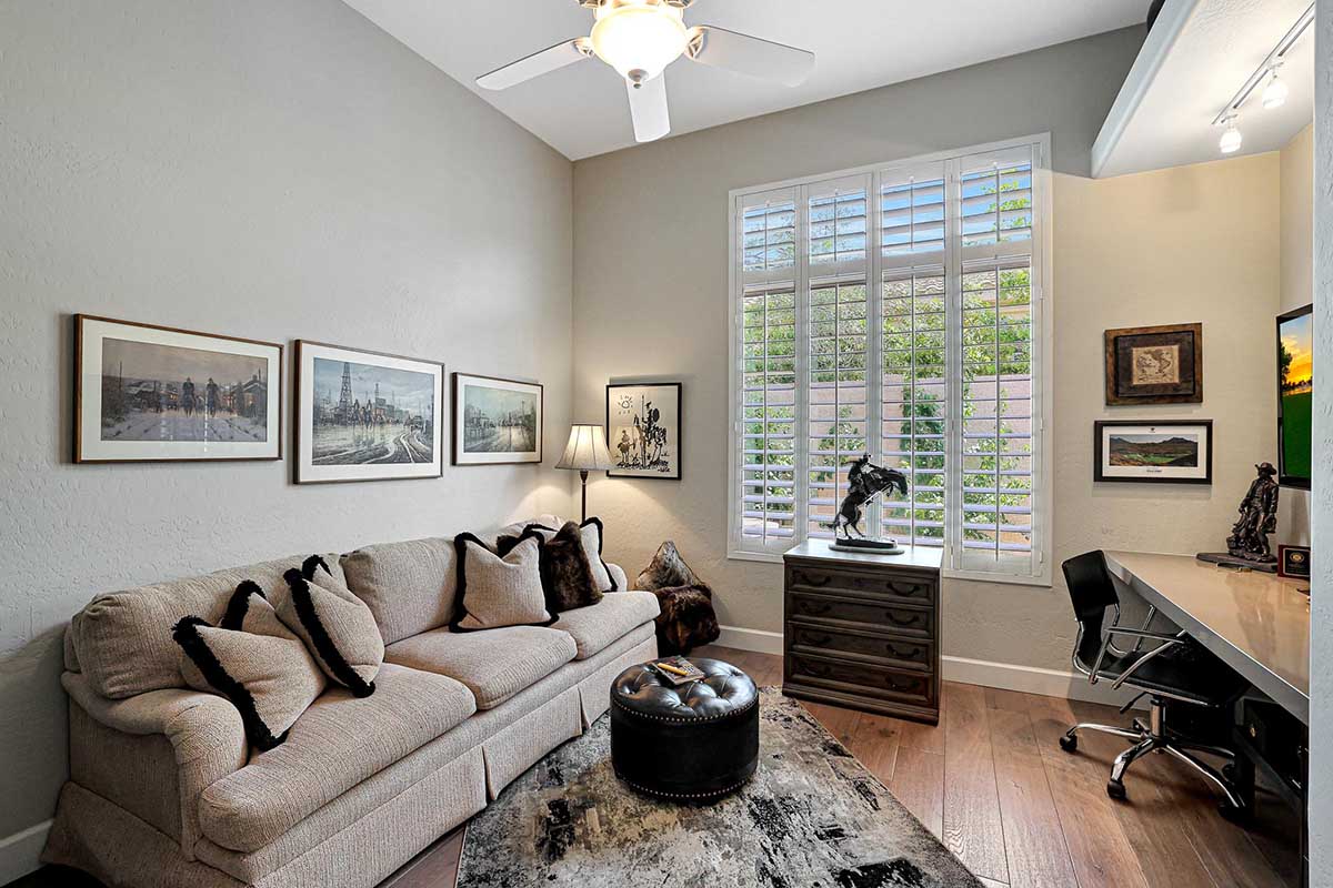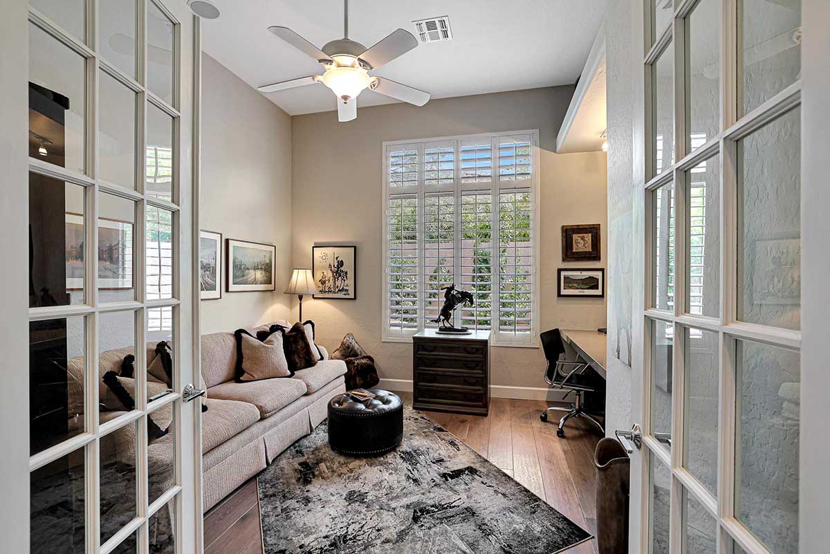 Stunning and meticulous describe this single level home in Four Peaks at Troon Village. Featuring three spacious bedrooms and three full bathrooms, plus a den with French doors which could be used as a private office or flex space.