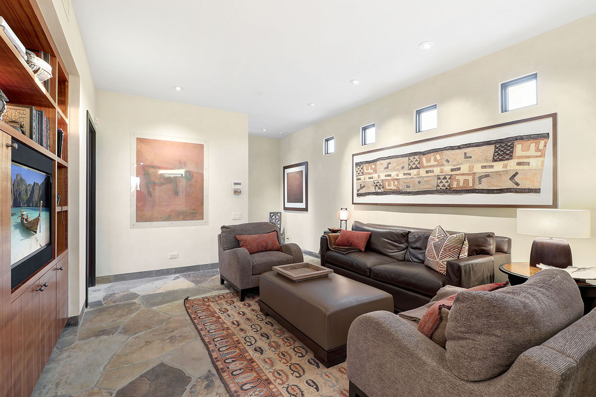 The lush, superbly designed landscaping continues the organic desert feel with numerous species of succulents, cacti, trees and boulders surrounding the decomposed granite driveway. The impressive entryway showcases a full length 40-foot long water feature and a direct view of the entry with a suspended staircase and a perfect neutral palette.