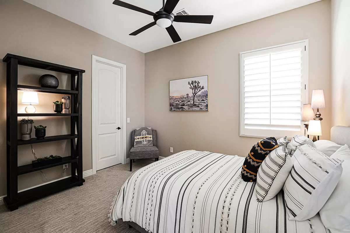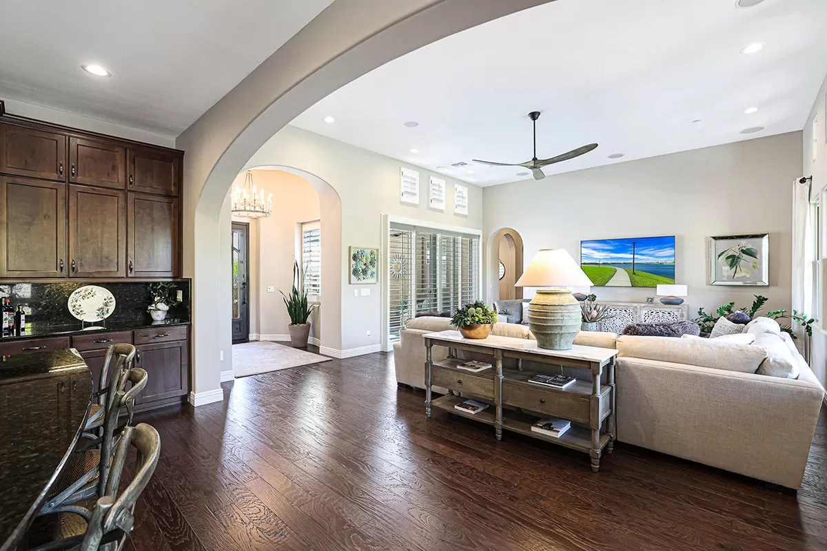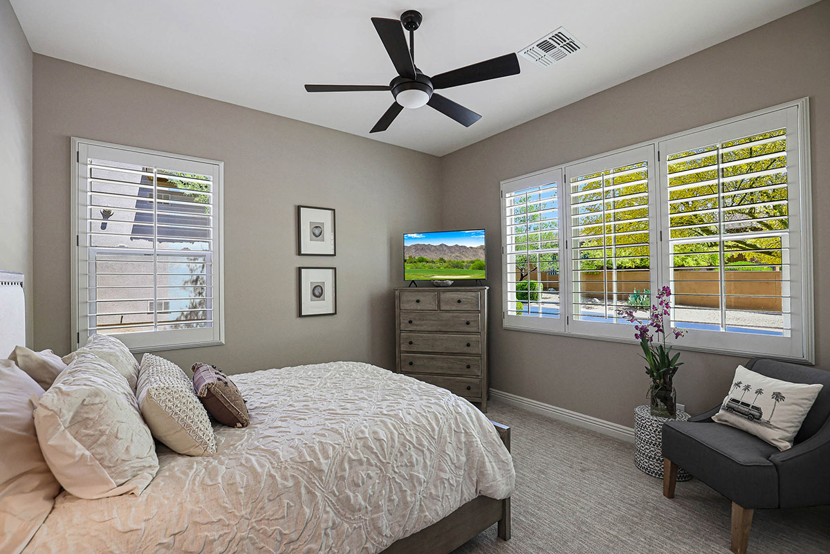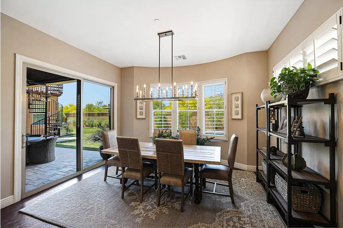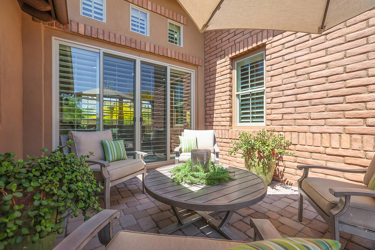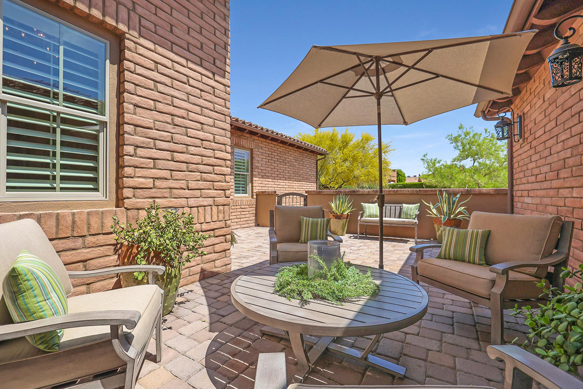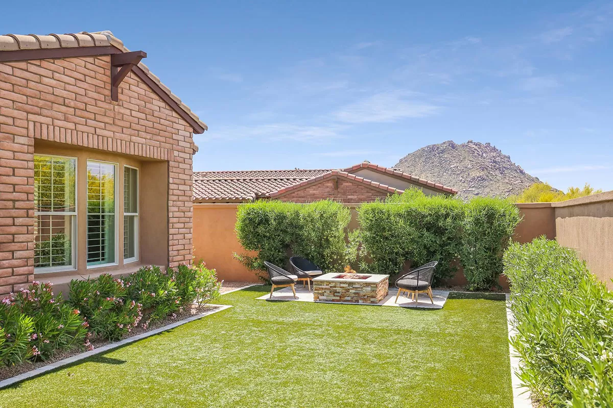 Located in the private gated community of Quisana in North Scottsdale, this completely turn-key home is move-in ready (all furnishings and accessories included, both interior and exterior)! Meticulously maintained and stunningly decorated this 2014 Standard Pacific built home features just over 2,800 square feet of open floor plan living with beautiful natural light throughout! The gated entry courtyard sets the tone with brick pavers and an intimate seating area for additional outdoor living. Upon entry, take note of the clerestory windows and views of the resort like backyard and local boulder outcroppings.