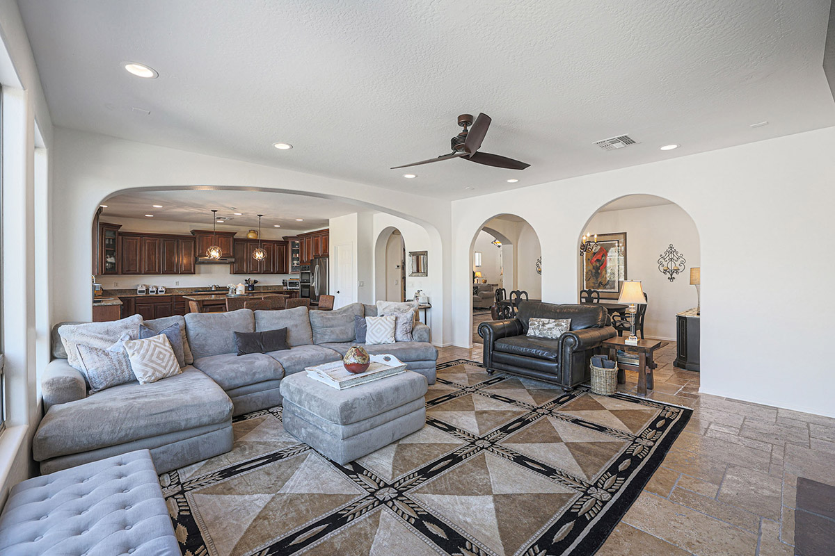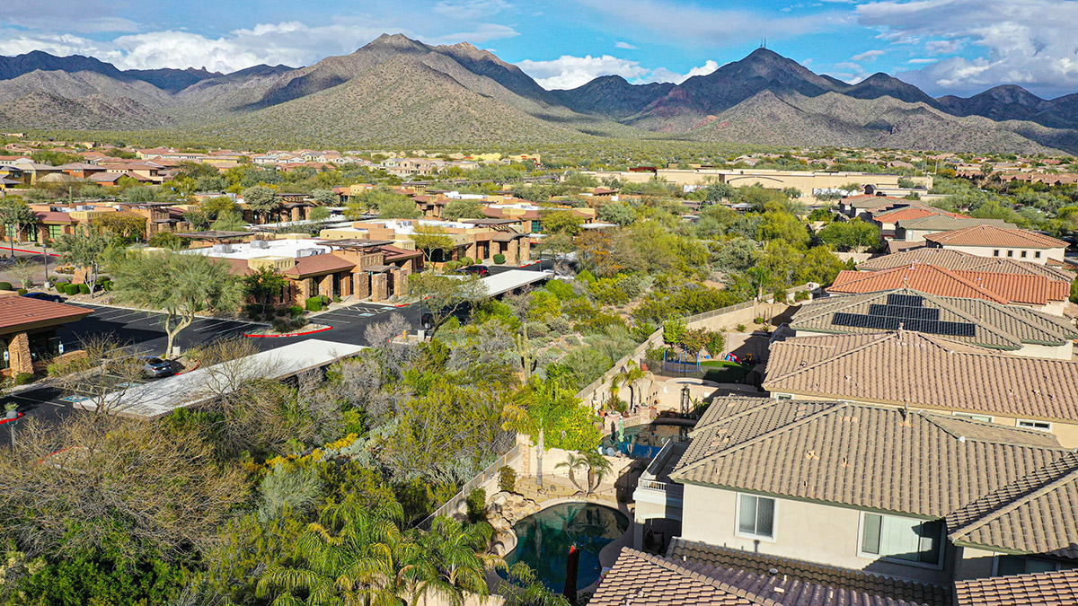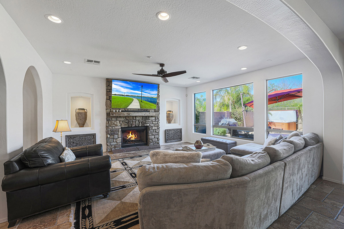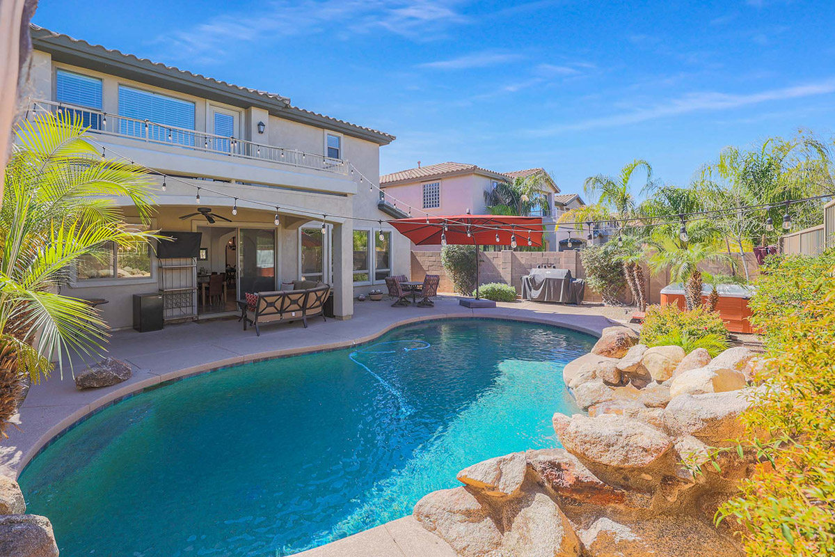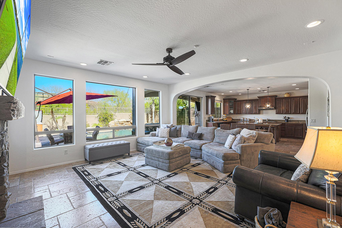 Wonderfully elegant home located in a prime Scottsdale neighborhood of gated Trails North at Horseman’s Park. Enjoy McDowell Mountain views from the resort style backyard featuring a sparkling pool with rock waterfall, hot tub, mature landscaping including palm trees, covered patio for dining and deck area for lounging all backing to a desert wash for a private feel.