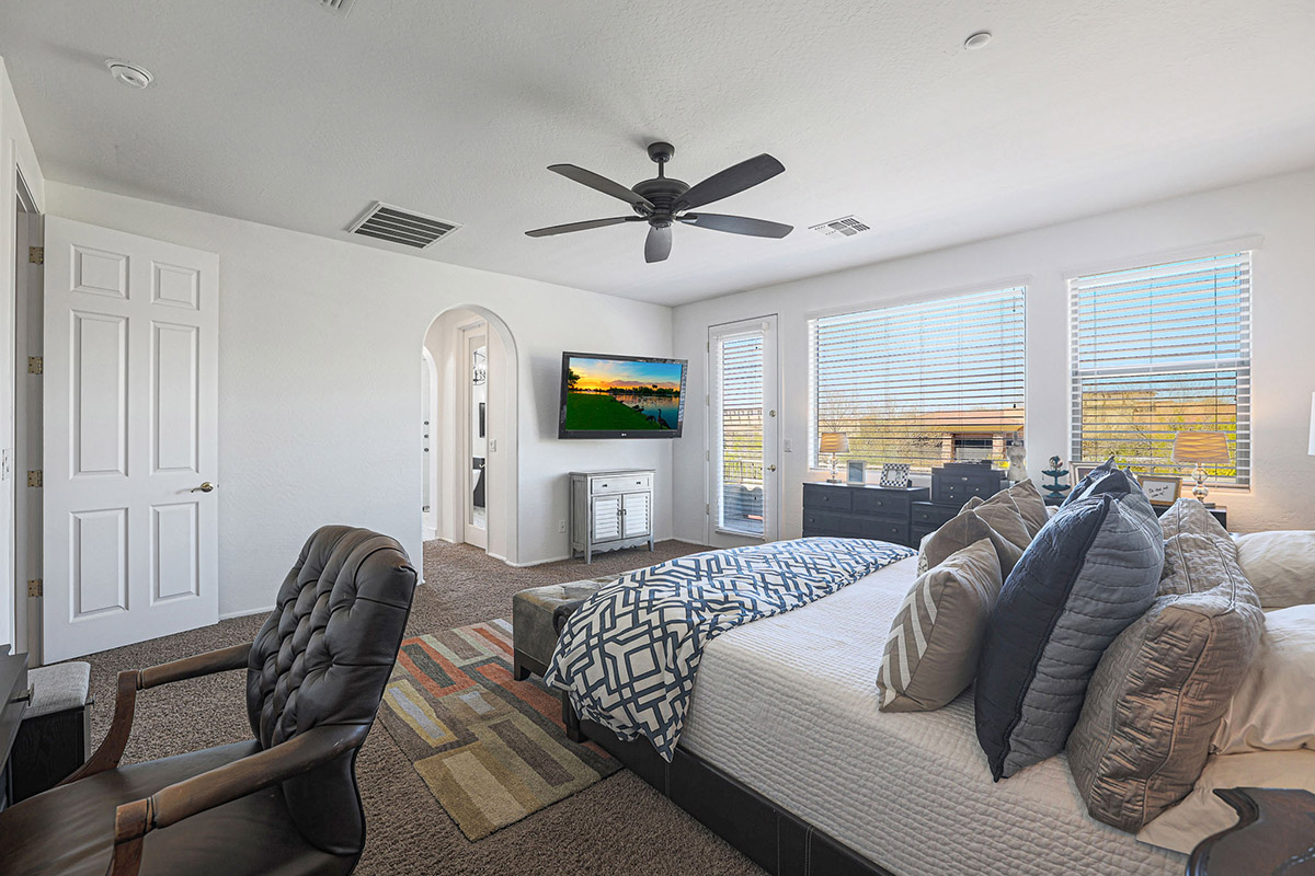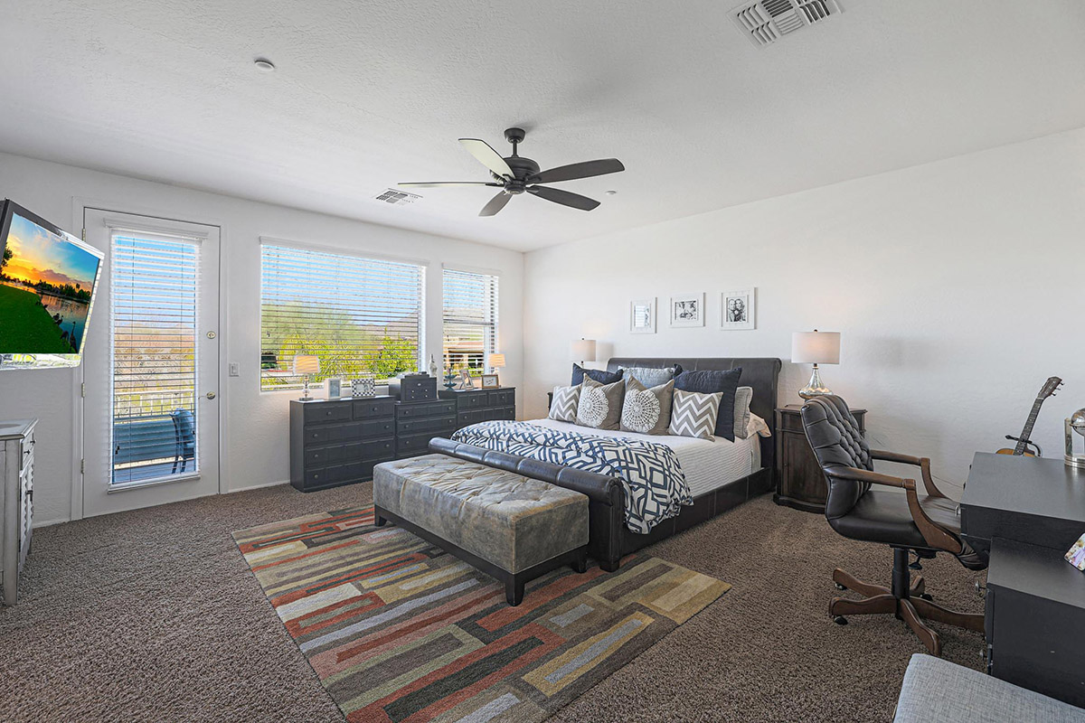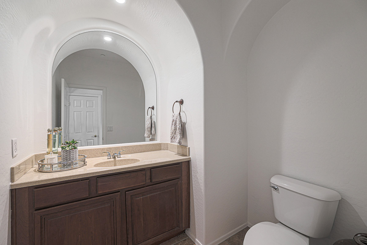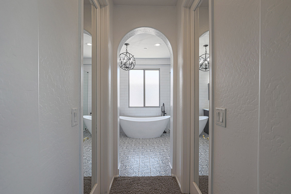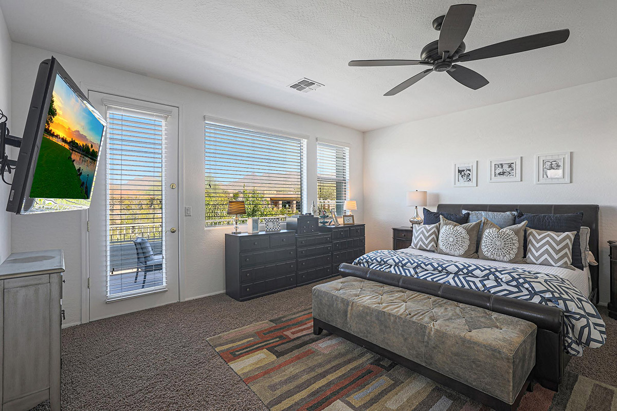 Upon entry you are greeted by the grand staircase which leads to the upstairs, overlooking the living room below from the loft and the built-in library shelves. Continuing upstairs, the master suite has views of McDowell Mountains from the picture windows as well as the private balcony. The master bath was recently remodeled with a spa-like feel featuring a large centerpiece freestanding tub, accent floor tile, double vanities, built-in linen cabinet, walk-in shower with frameless glass surround, private water closet and a walk-in closet. The other end of the upstairs features three additional bedrooms, a large laundry with cabinets and a remodeled hall bath with on trend finishes.