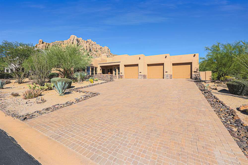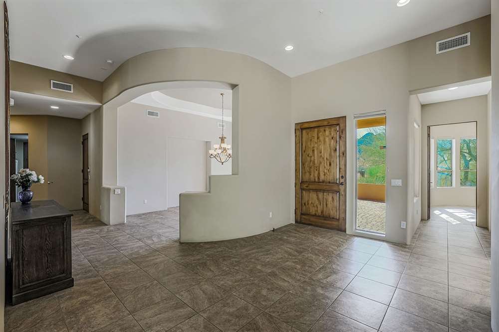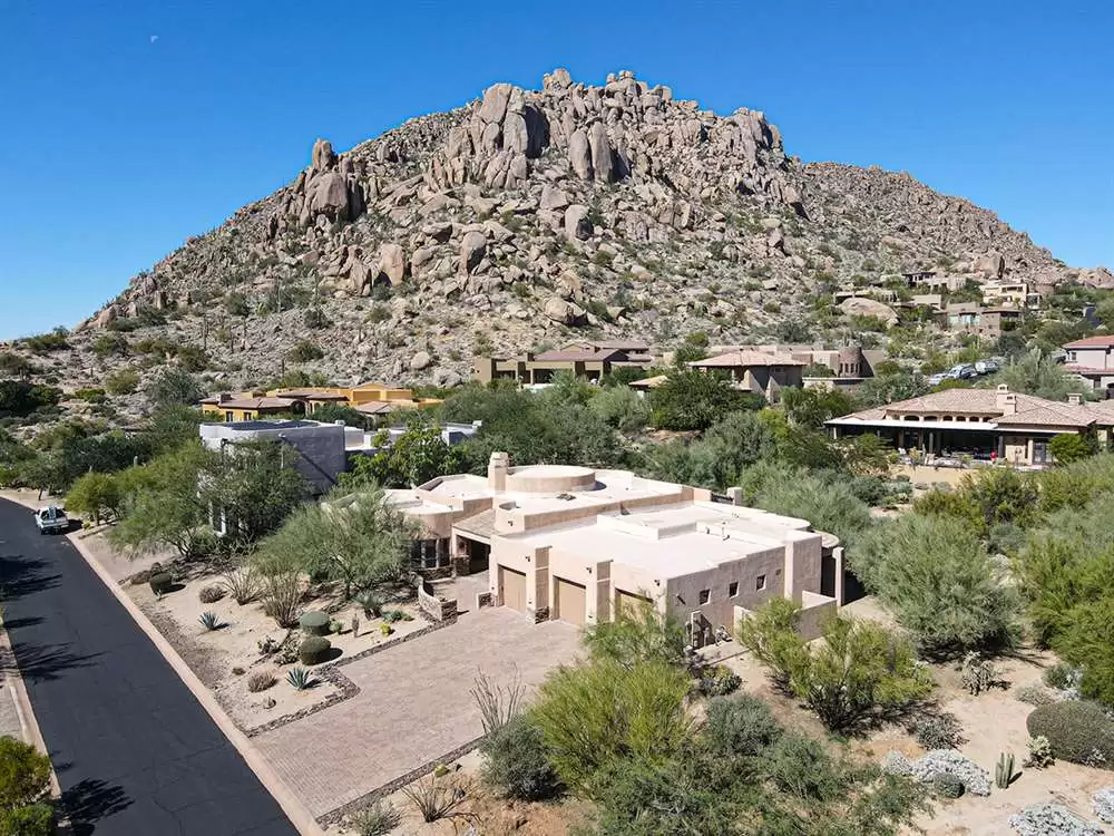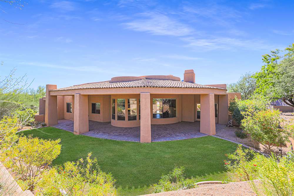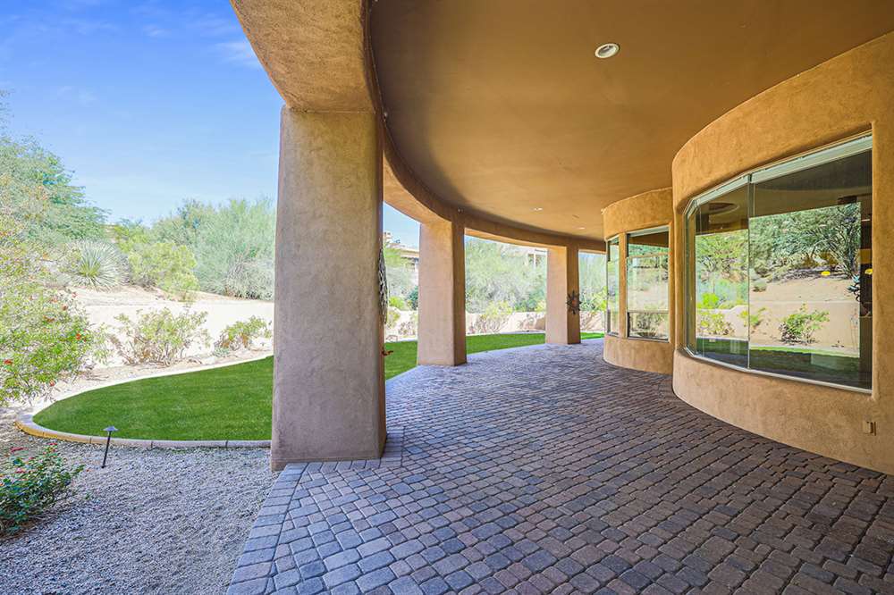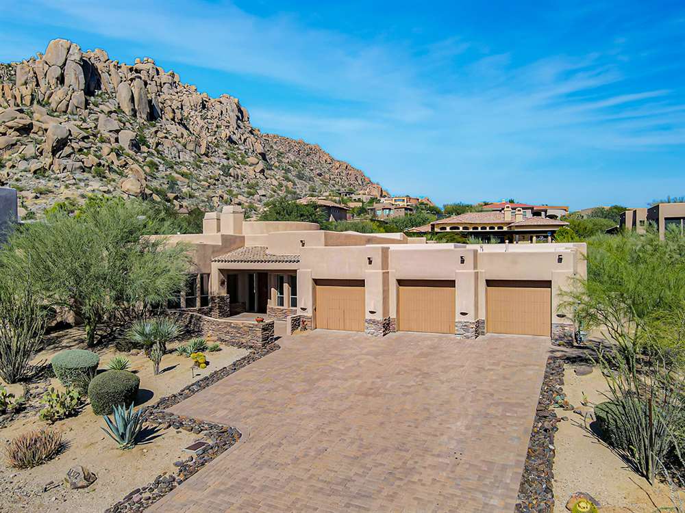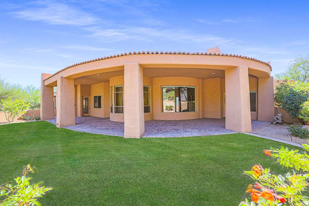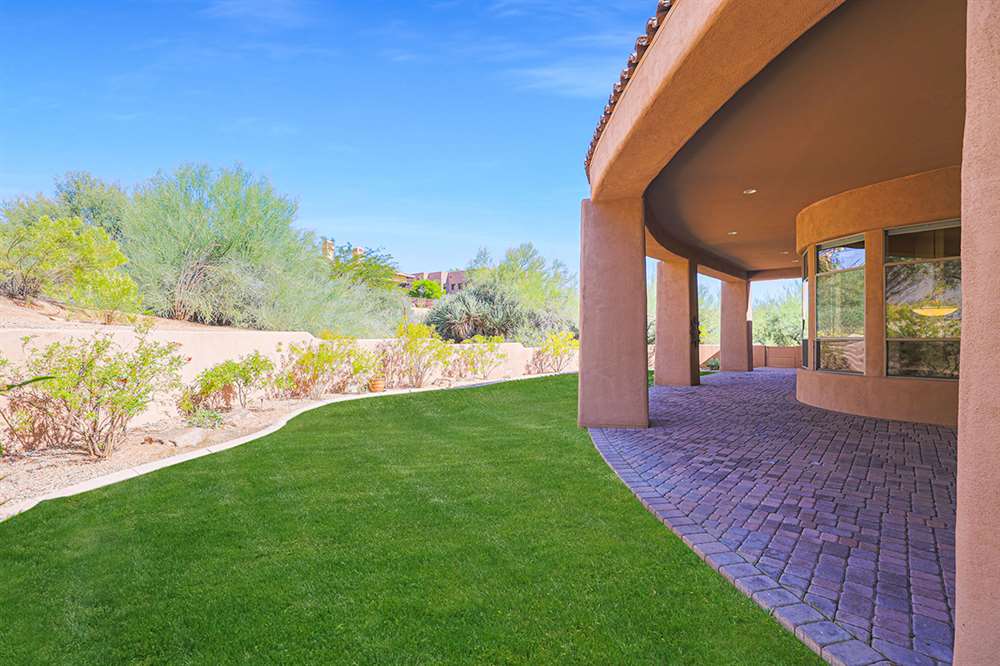 The backyard has a large grassy area combined with low-maintenance desert landscaping, a large half-circle covered patio and direct views of Troon Mountain. A three-bay garage with paver drive and easy access to renovated Troon Country Club and numerous golf courses, dining, hiking and shopping amenities round out this ideal home!