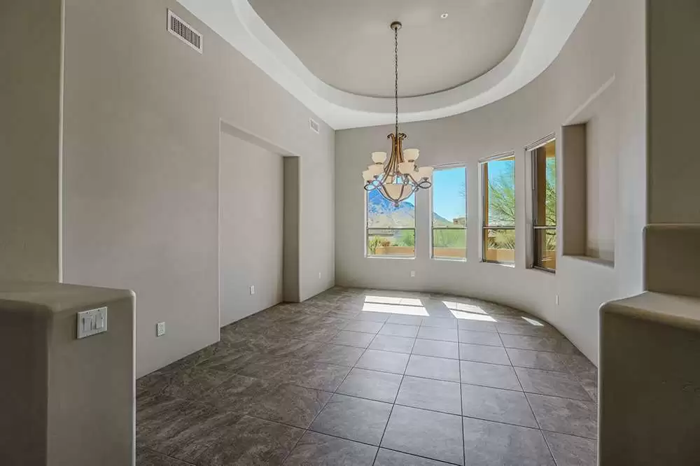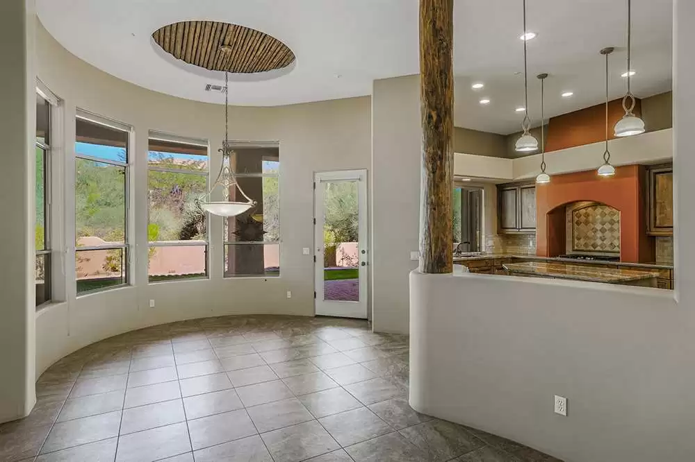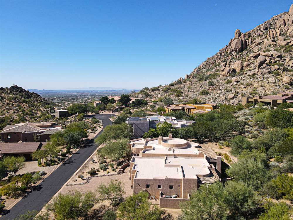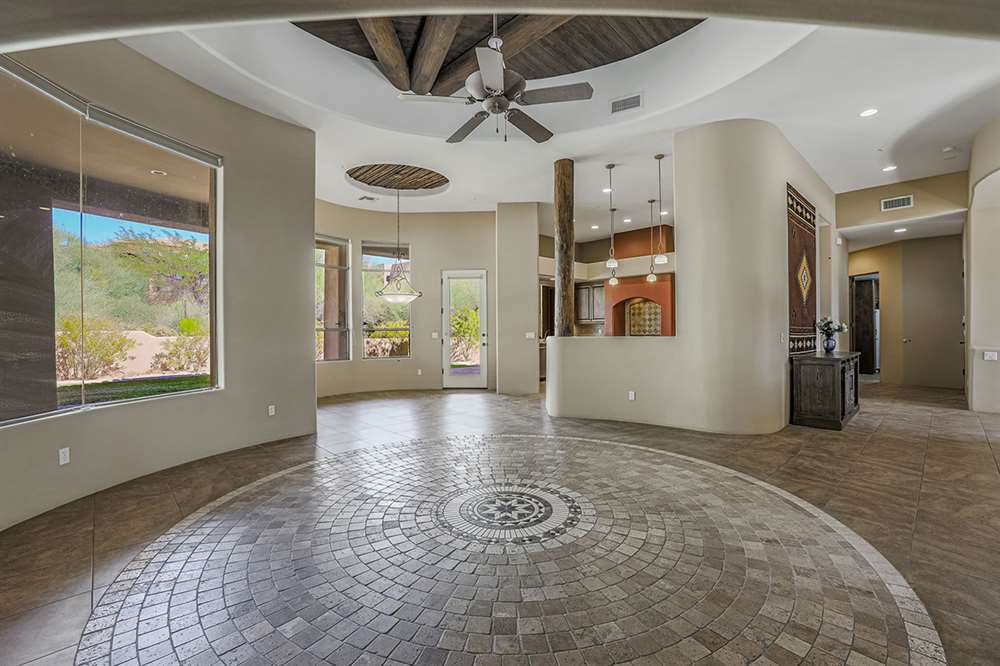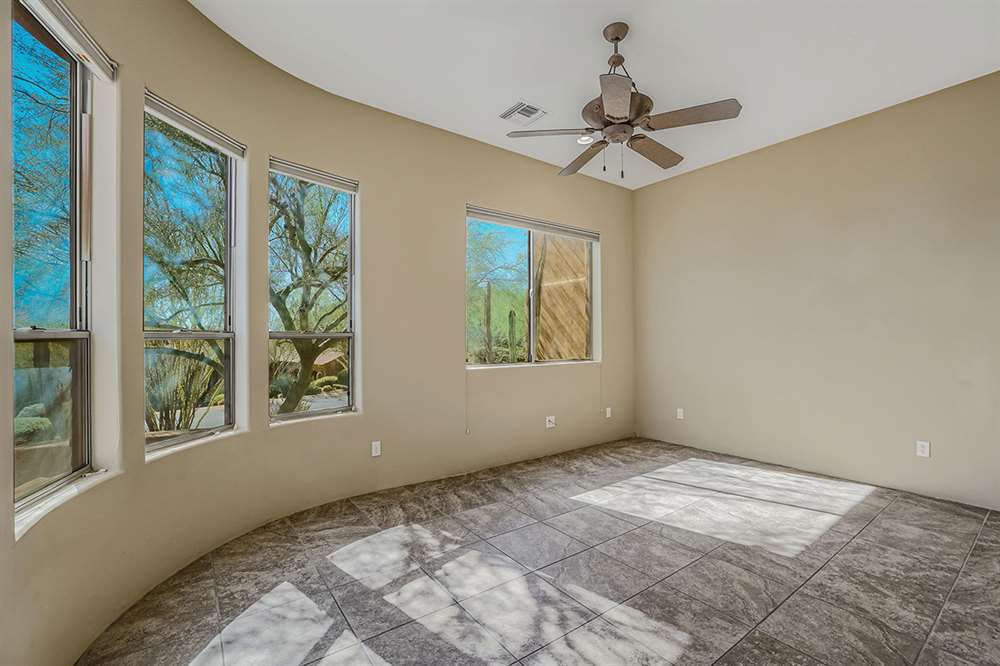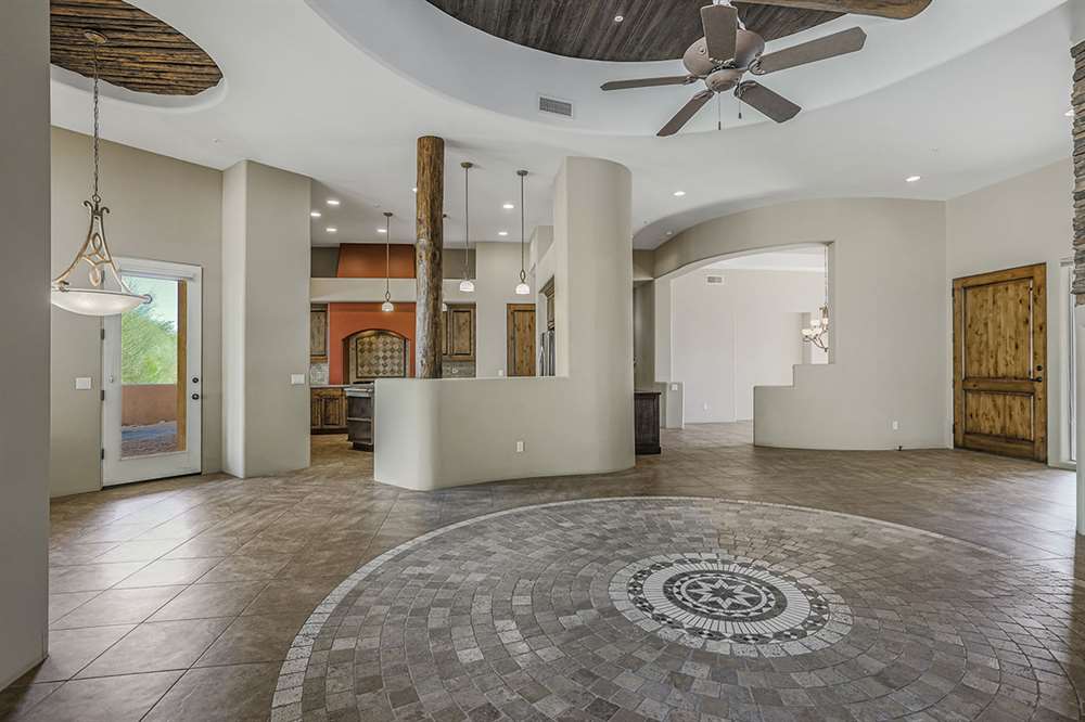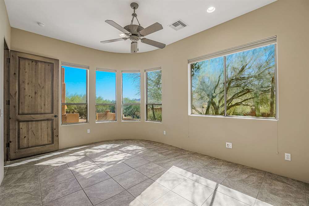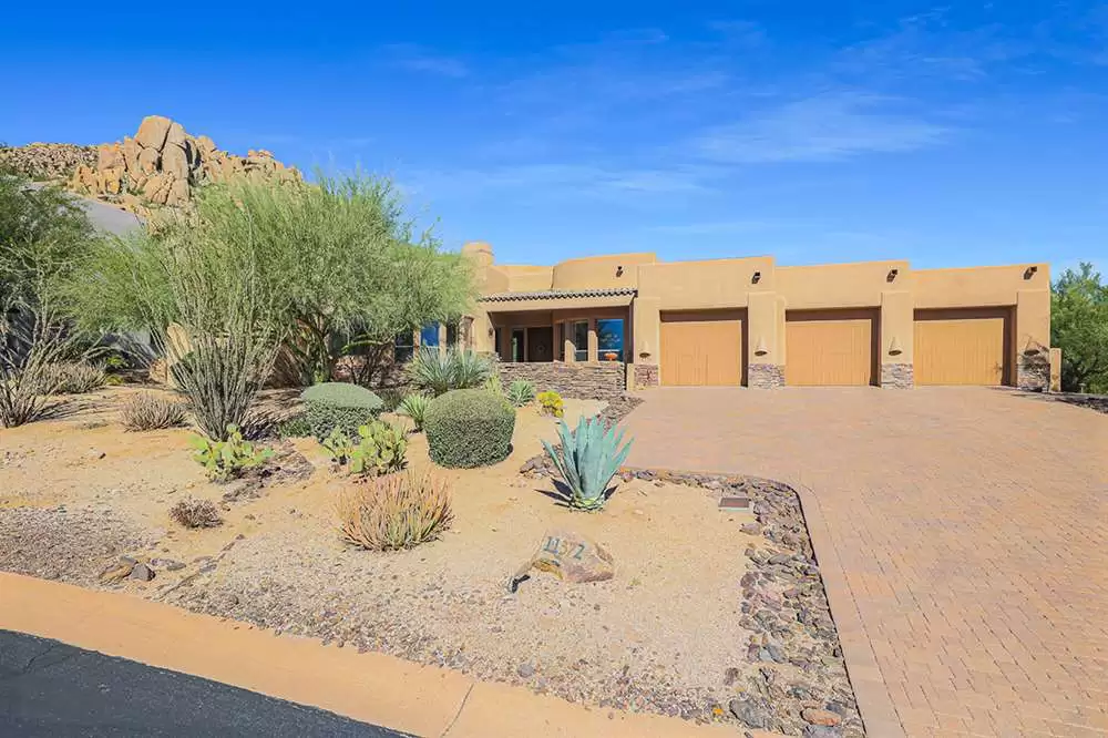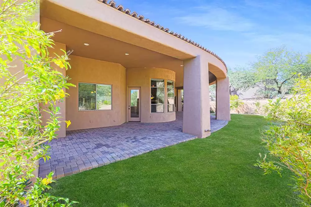 The backyard has a large grassy area combined with low-maintenance desert landscaping, a large half-circle covered patio and direct views of Troon Mountain. A three-bay garage with paver drive and easy access to renovated Troon Country Club and numerous golf courses, dining, hiking and shopping amenities round out this ideal home!